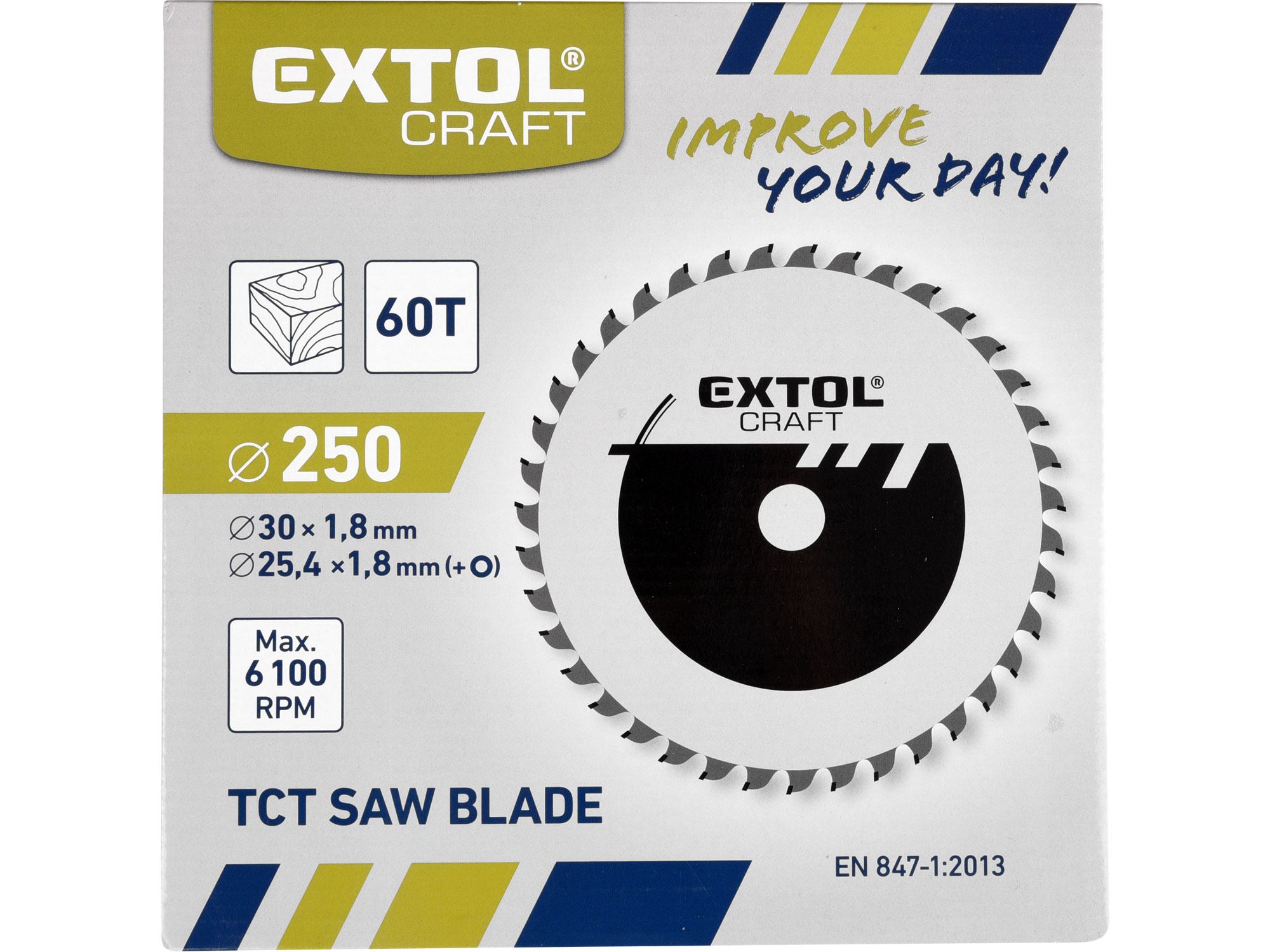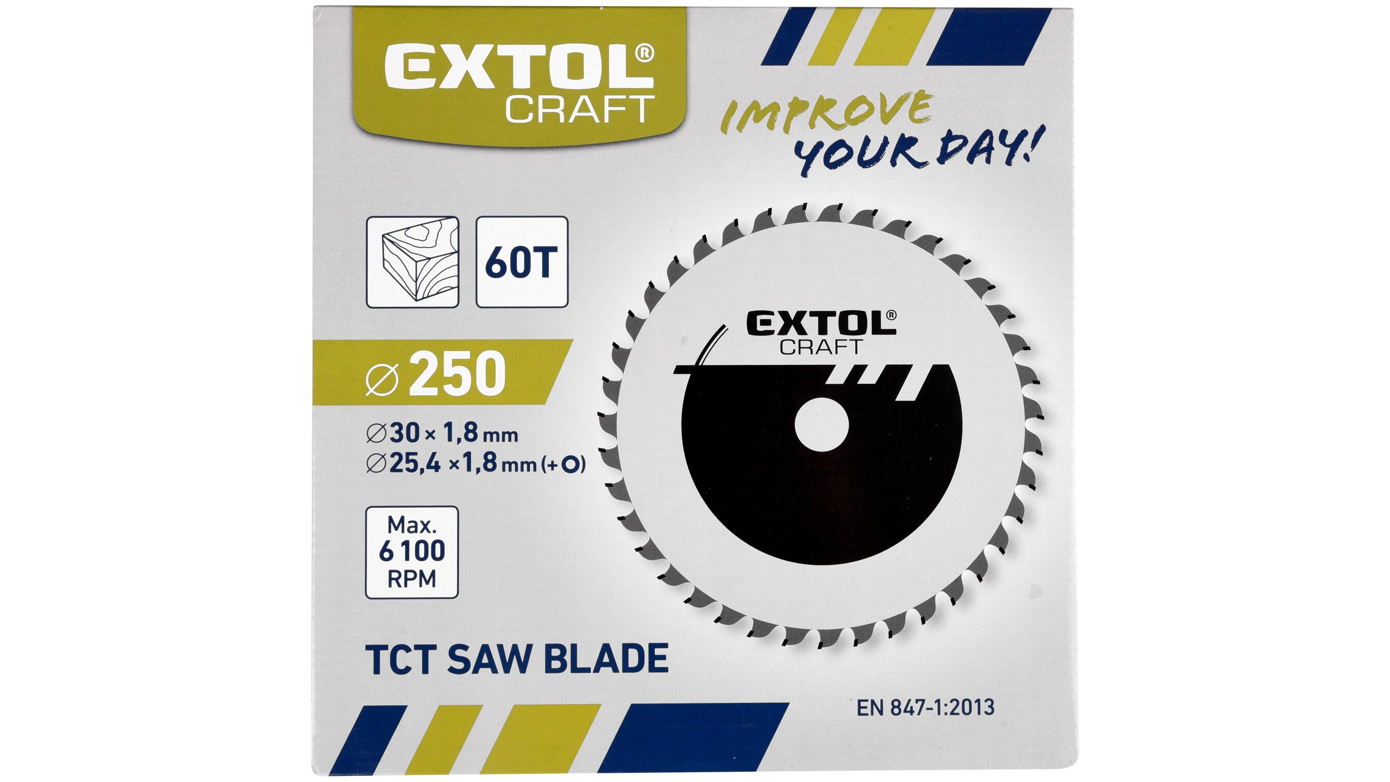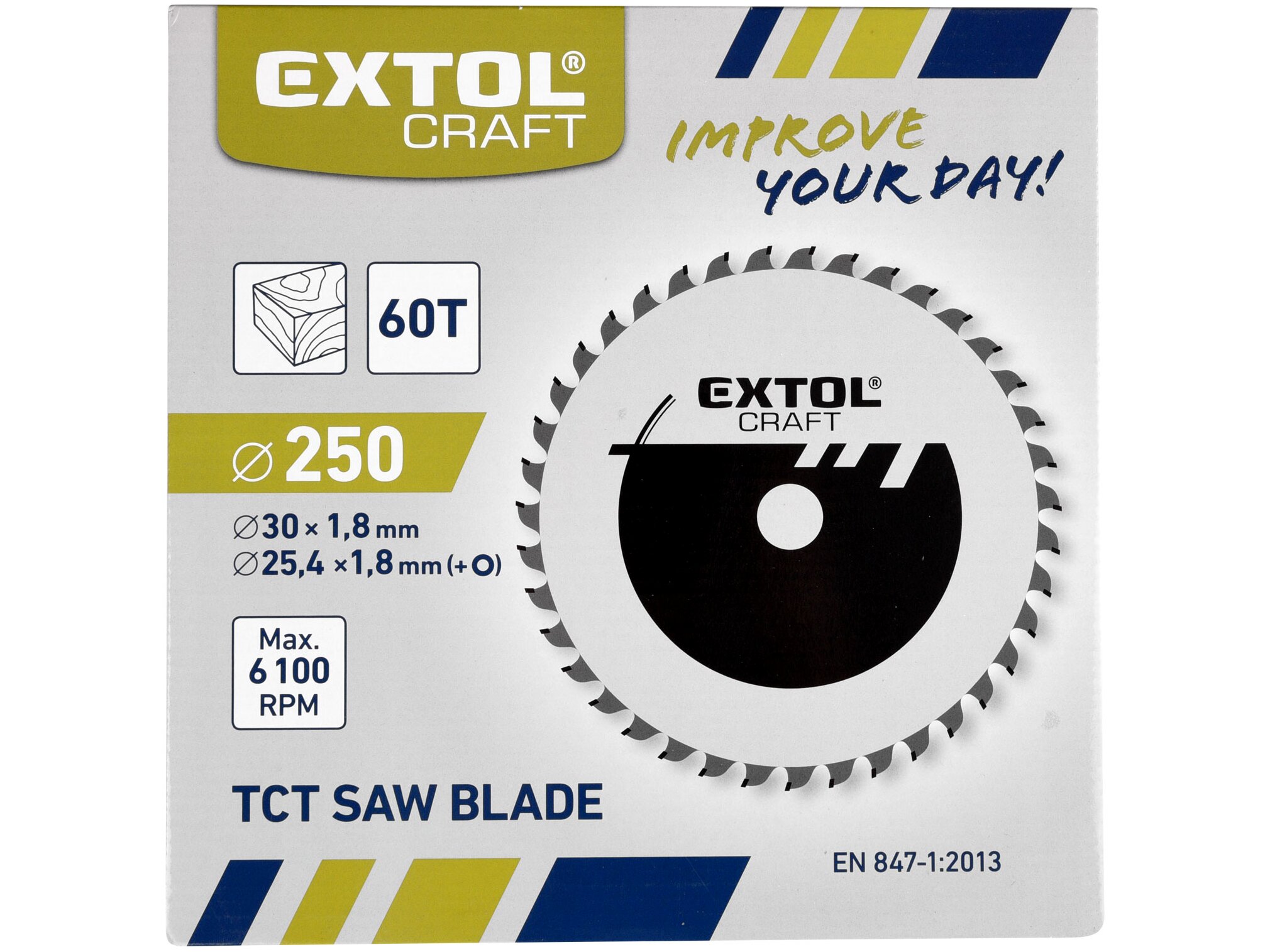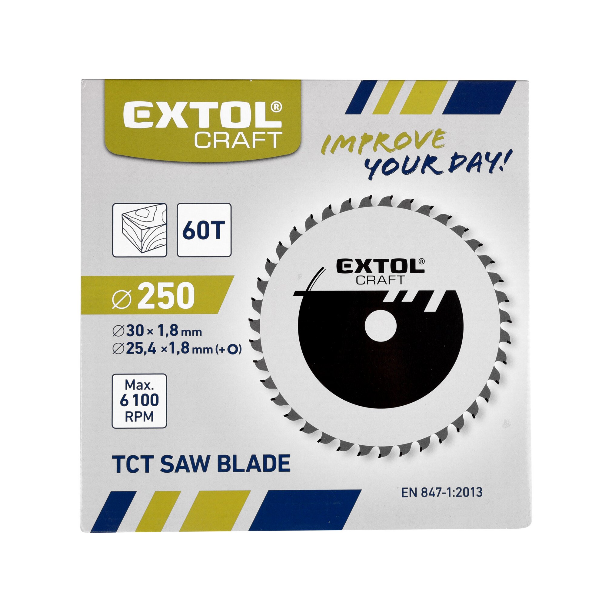 Extol körfűrészlap, keményfémlapkás, 250×30mm(lyuk átm), T60; 3,1mm lapkaszélesség, max. 6.100 ford/perc