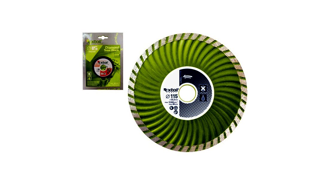 A gyémántvágó korongok nagy teljesítményű szerszámok melyek alkalmazásuk során nagy igénybevételnek vannak kitéve. Az Extol Craft gyémántvágó korongok megbízható, általános felhasználású vágószerszámok, melyek megfelelő biztonságot garantálnak Önnek a munkavégzés során A gyémántvágó korongot beton, vasbeton, tégla, kő, csempe, tetőcserép, gránit, homokkő, kvarc, márvány, pala vizes és száraz vágására lehet használni. A megfelelő használatát a termék melletti tájékoztatóban olvashatja.