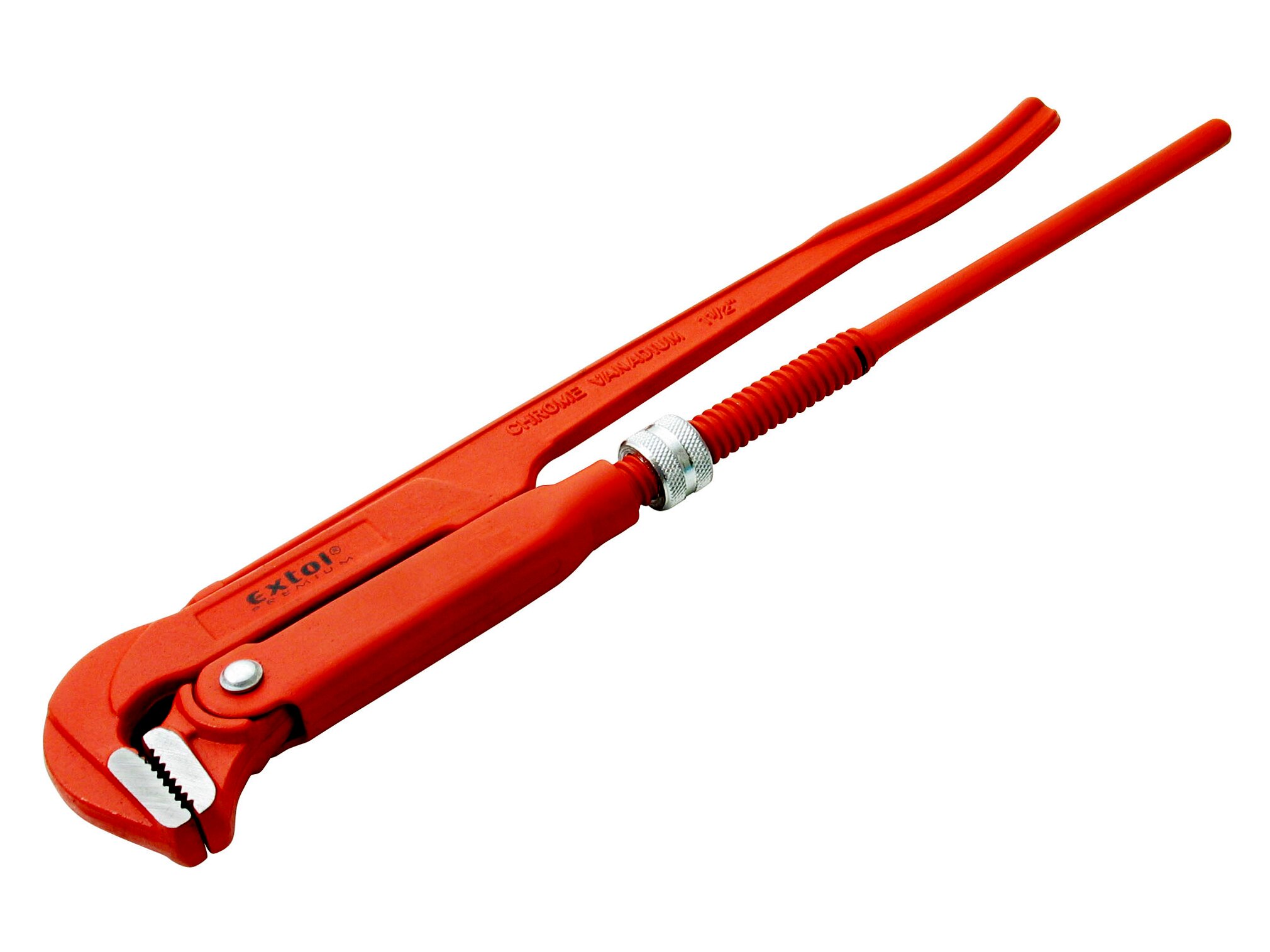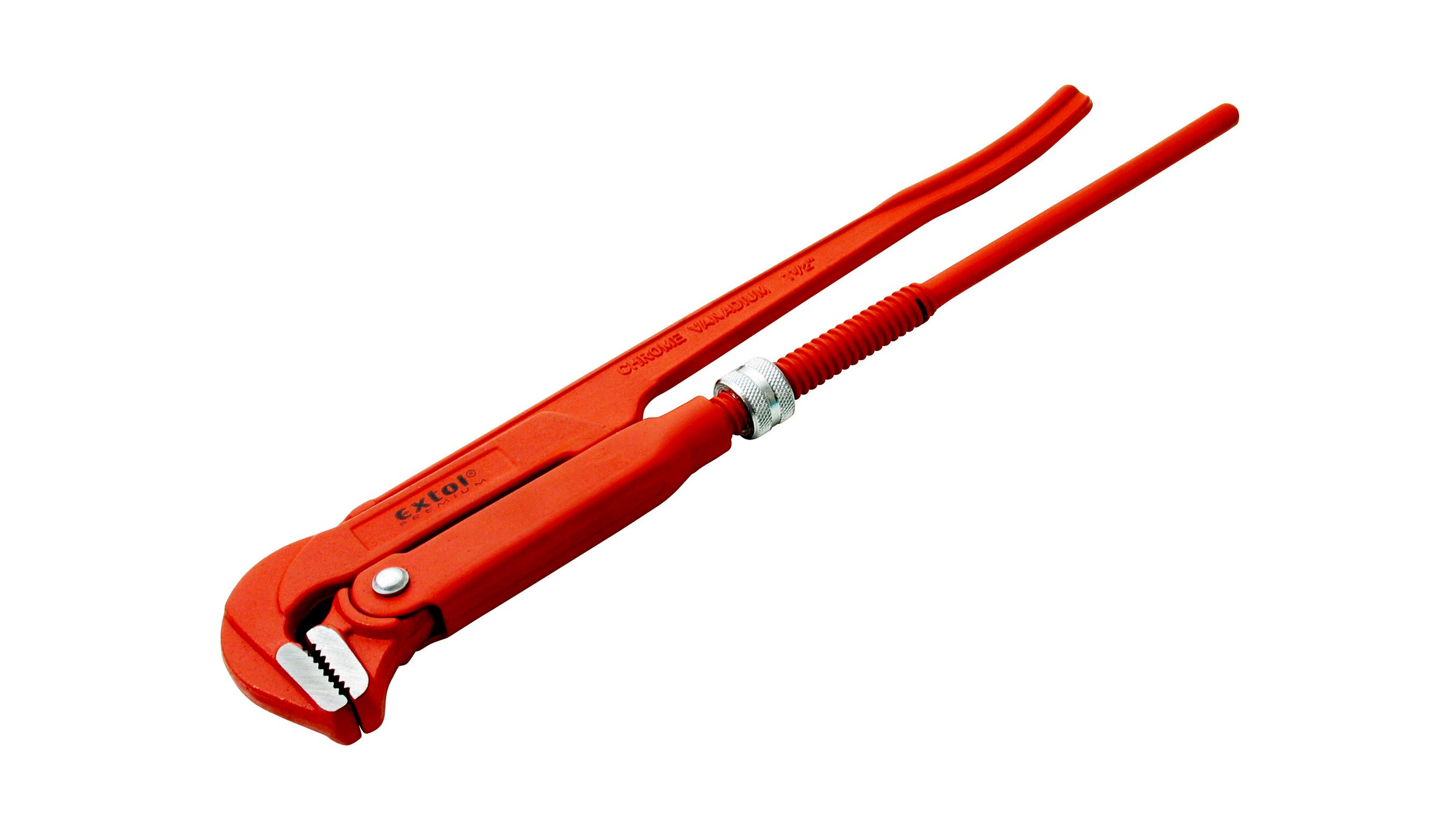 90 fokban kihajlított pofák, a sarkokban történő könnyebb munkavégzés érdekében. Megcsúszás elleni fogazat, a forgásiránnyal ellentétes irányba néző fogakkal. A csőfogó keskeny pofája lehetővé teszi a munkavégzést a nehezen hozzáférhető helyeken. A kitűnő minőségű CrV acélból kovácsolással készült, indukciósan edzett pofákkal rendelkező csőfogó teljesíti a DIN 5234 számú szabvány előírásait.