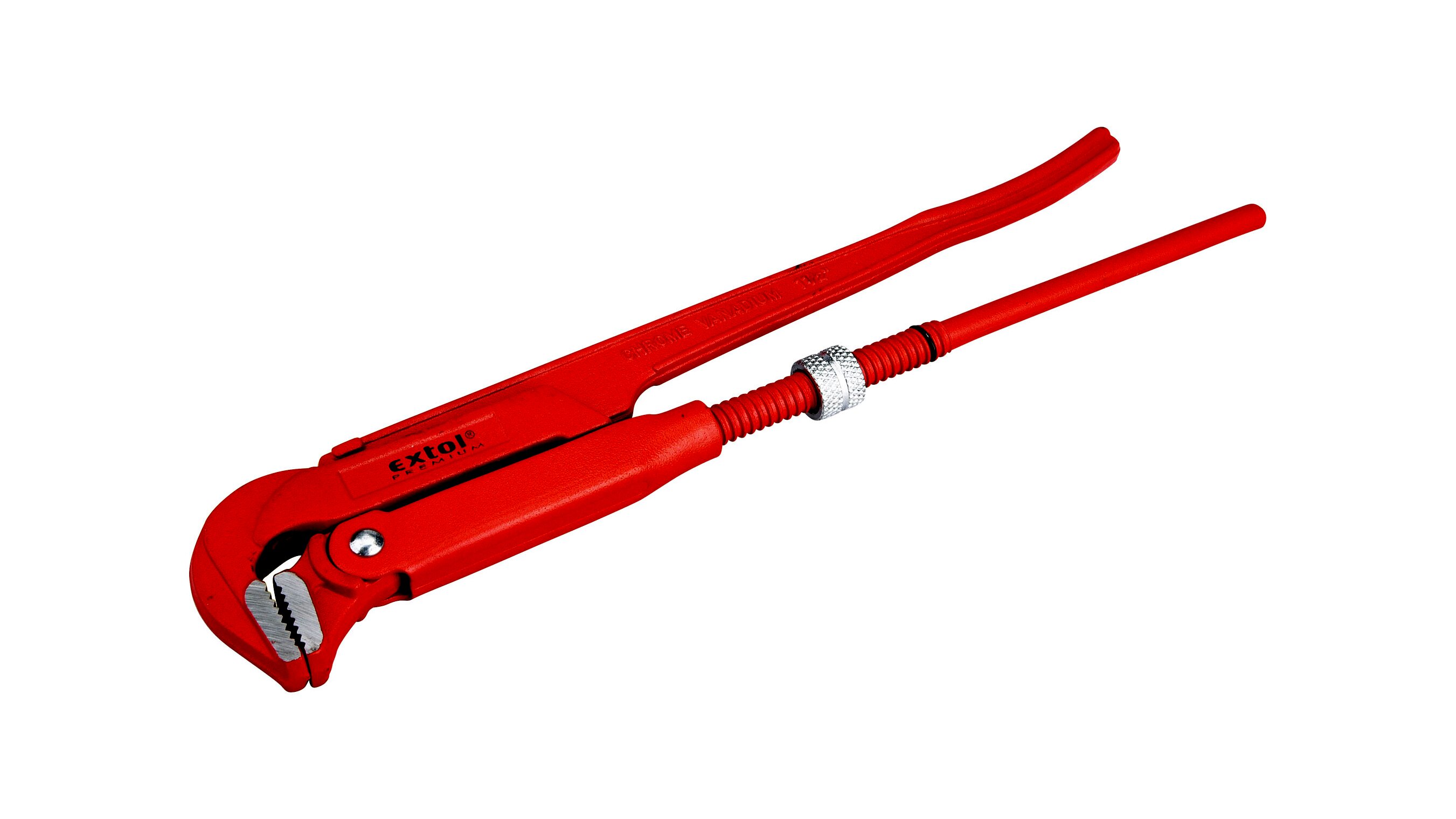 90 fokban kihajlított pofák, a sarkokban történő könnyebb munkavégzés érdekében. Megcsúszás elleni fogazat, a forgásiránnyal ellentétes irányba néző fogakkal. A csőfogó keskeny pofája lehetővé teszi a munkavégzést a nehezen hozzáférhető helyeken. A kitűnő minőségű CrV acélból kovácsolással készült, indukciósan edzett pofákkal rendelkező csőfogó teljesíti a DIN 5234 számú szabvány előírásait.