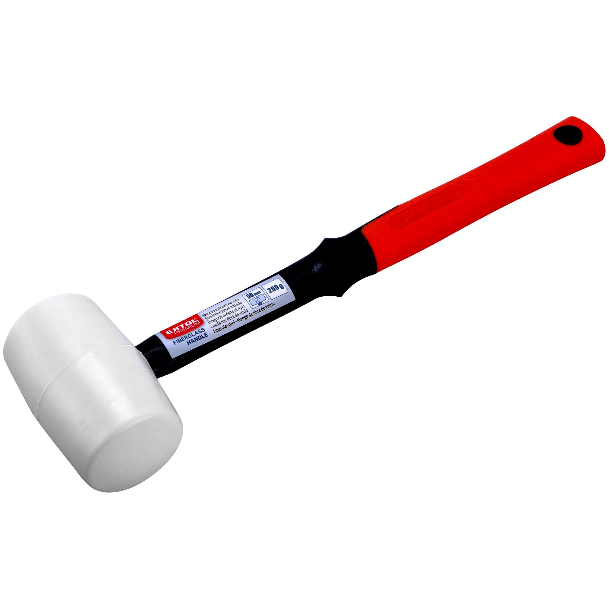 Extol Premium gumikalapács üvegszálas nyéllel, fehér, 280g