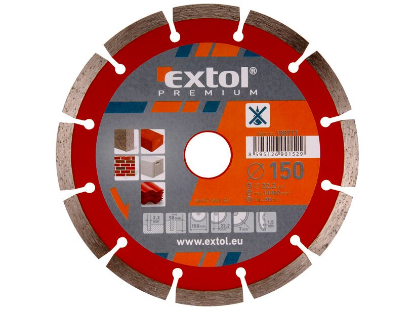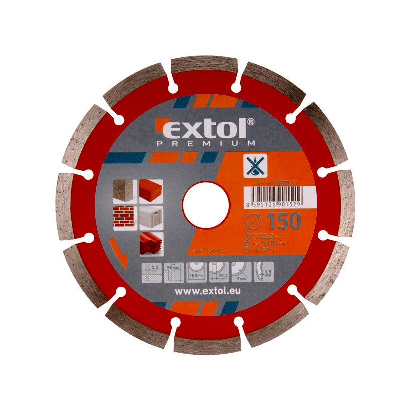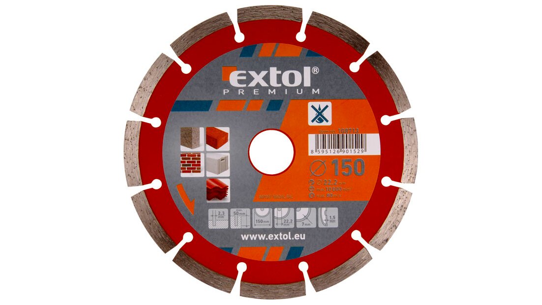 A gyémántvágó korongok nagy teljesítményű szerszámok melyek alkalmazásuk során nagy igénybevételnek vannak kitéve. Az Extol Prémium gyémántvágó korongok megbízható, általános felhasználású vágószerszámok, melyek megfelelő biztonságot garantálnak Önnek a munkavégzés során A gyémántvágó korongot beton, tégla, cserép, téglafal, kő, gránit vágásra lehet használni. A megfelelő használatát a termék melletti tájékoztatóban olvashatja.