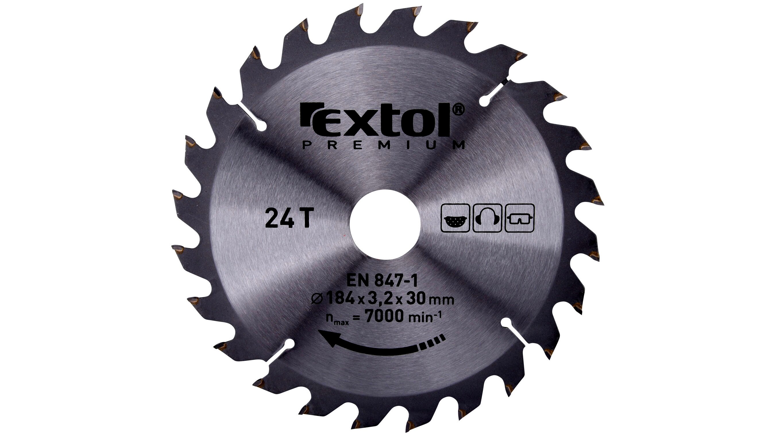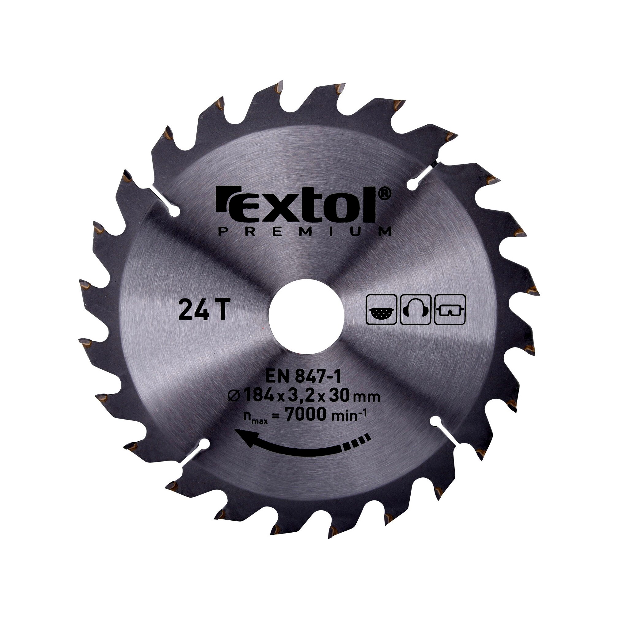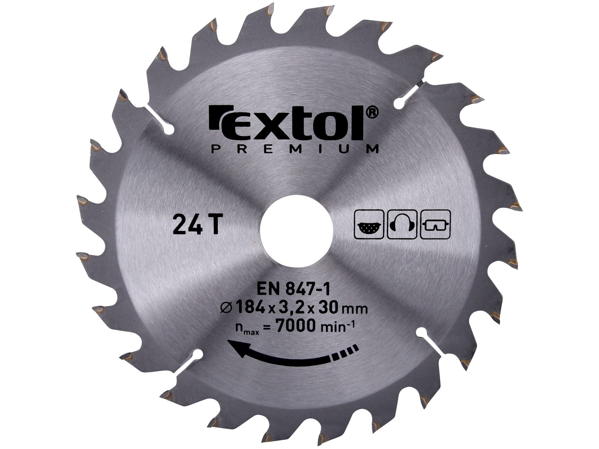 Extol körfűrészlap, keményfémlapkás, 184×30mm(lyuk átm), T24; 3,2mm lapkaszélesség, max. 7000 ford/perc