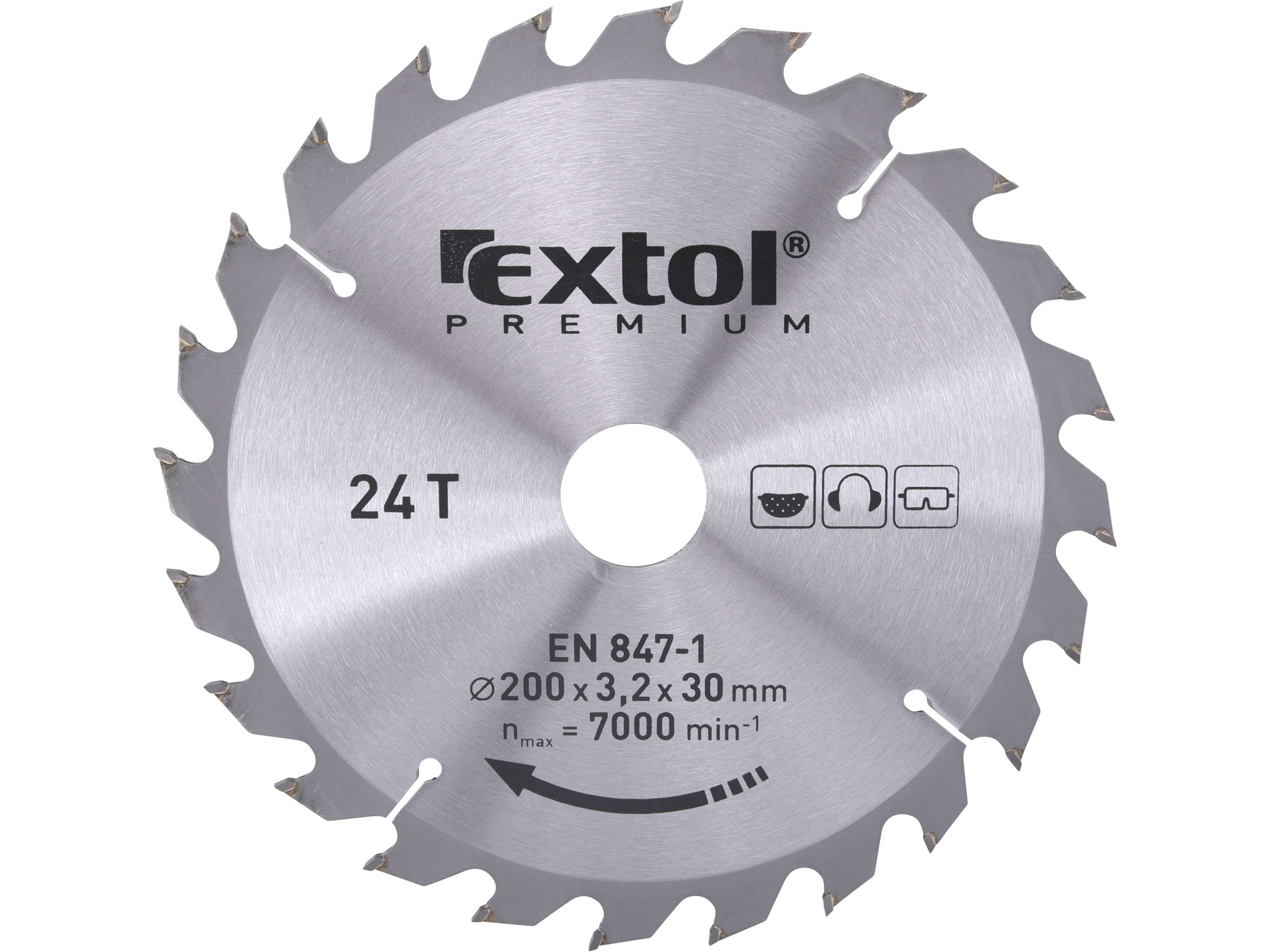 Extol körfűrészlap, keményfémlapkás, 200×30mm(lyuk átm), T24; 3,2mm lapkaszélesség, max. 7000 ford/perc