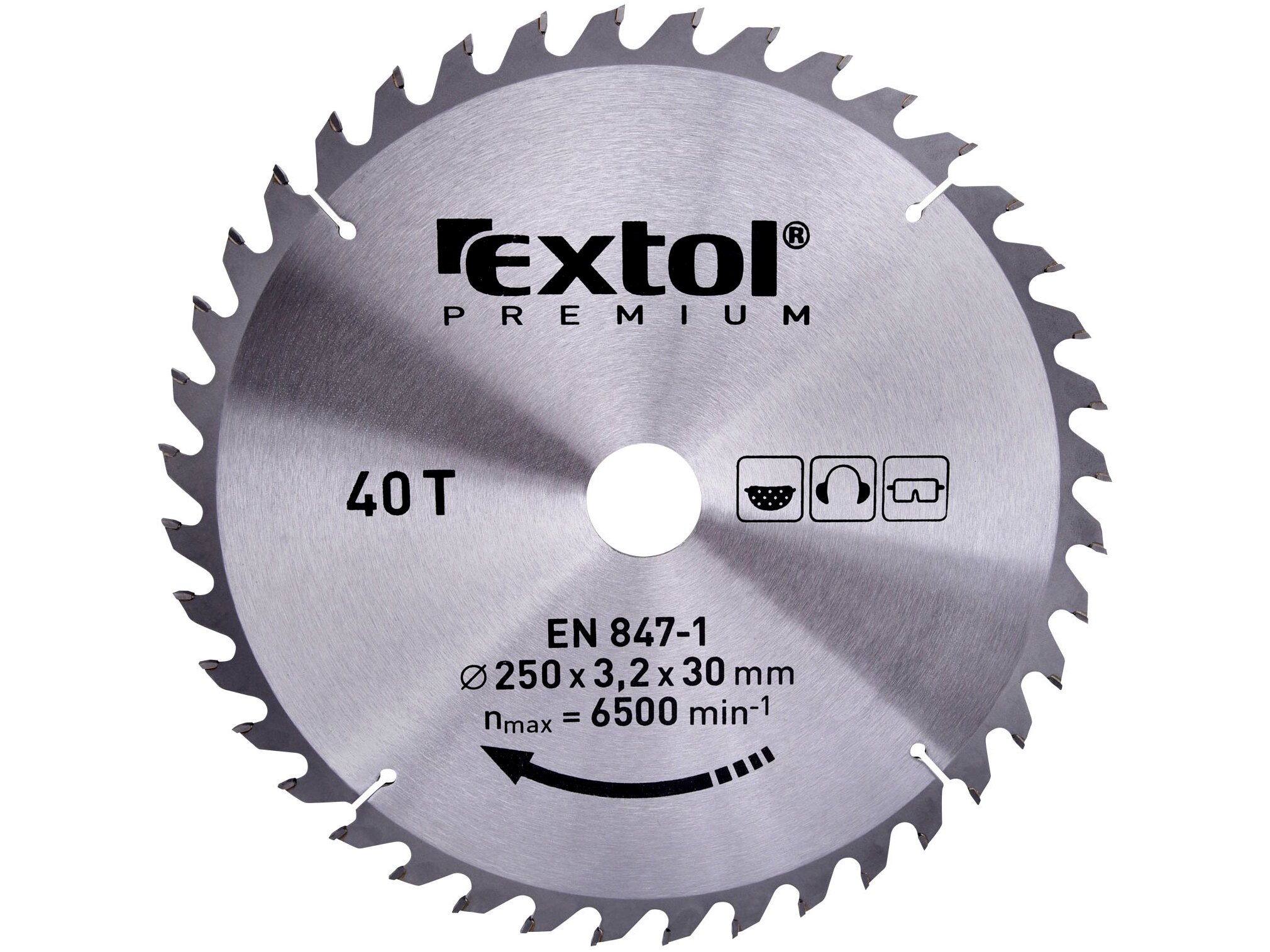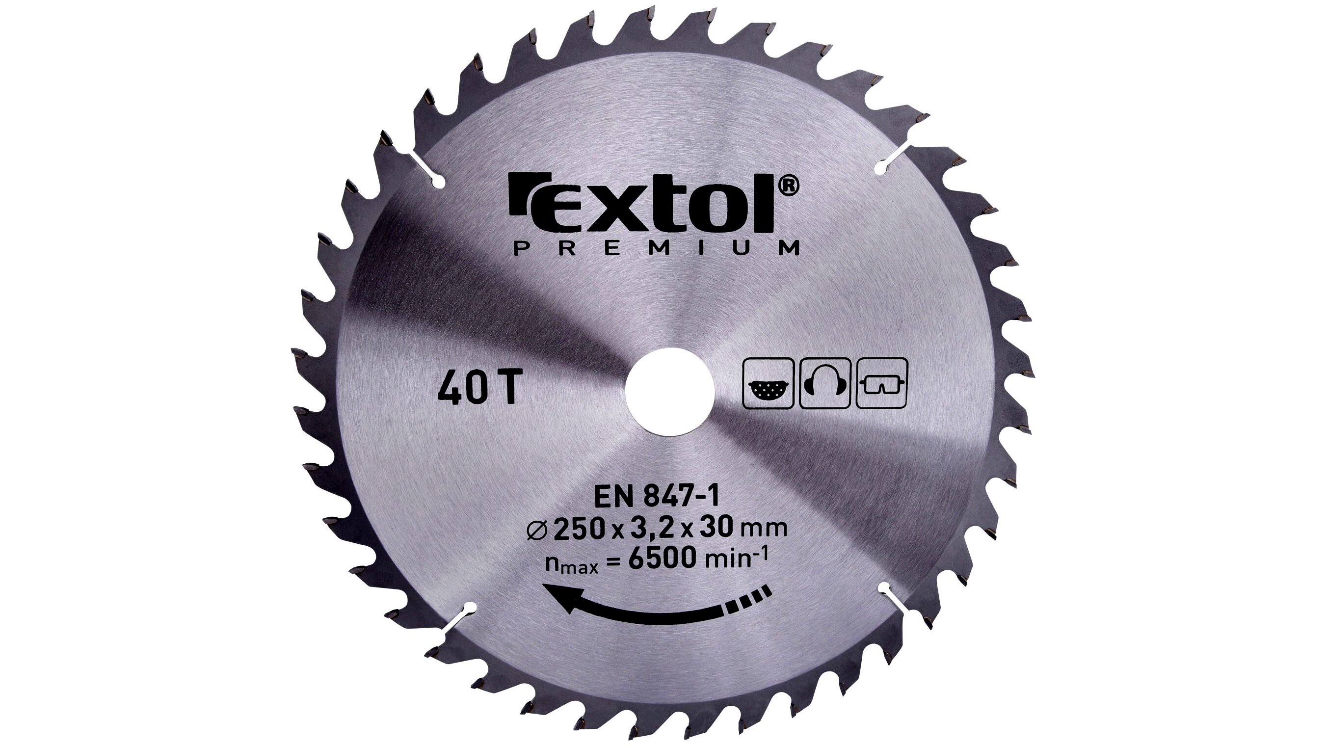 Extol körfűrészlap, keményfémlapkás, 250×30mm(lyuk átm), T40; 3,2mm lapkaszélesség, max. 6500 ford/perc