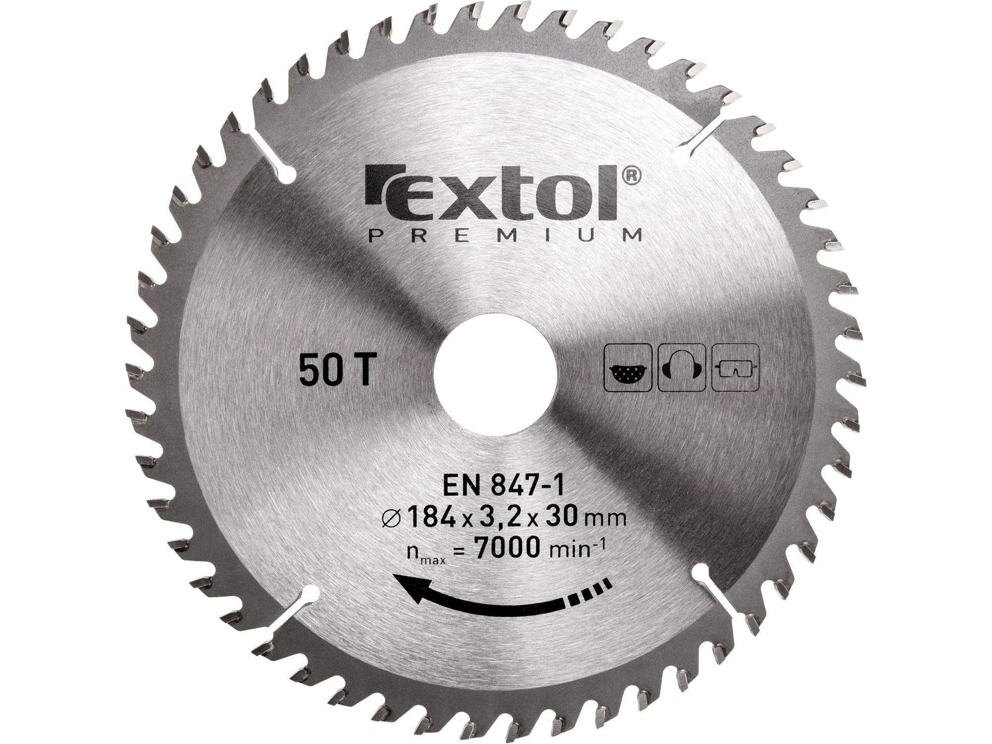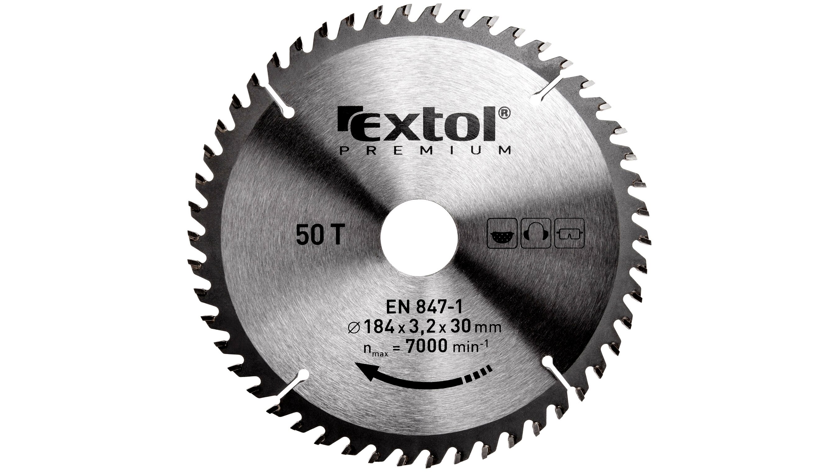 Extol körfűrészlap, keményfémlapkás, 184×30mm(lyuk átm), T50; 3,2mm lapkaszélesség, max. 7000 ford/perc
