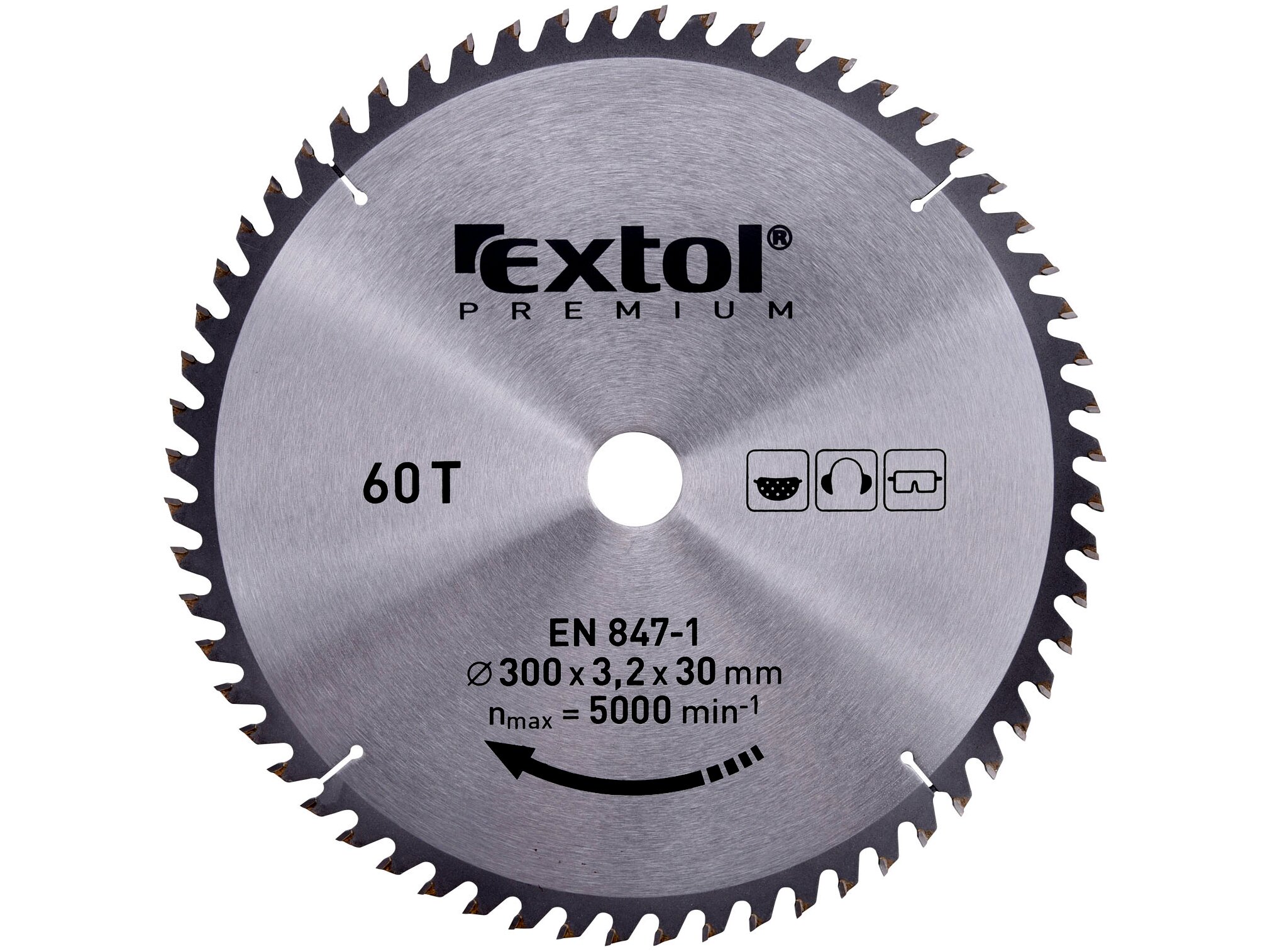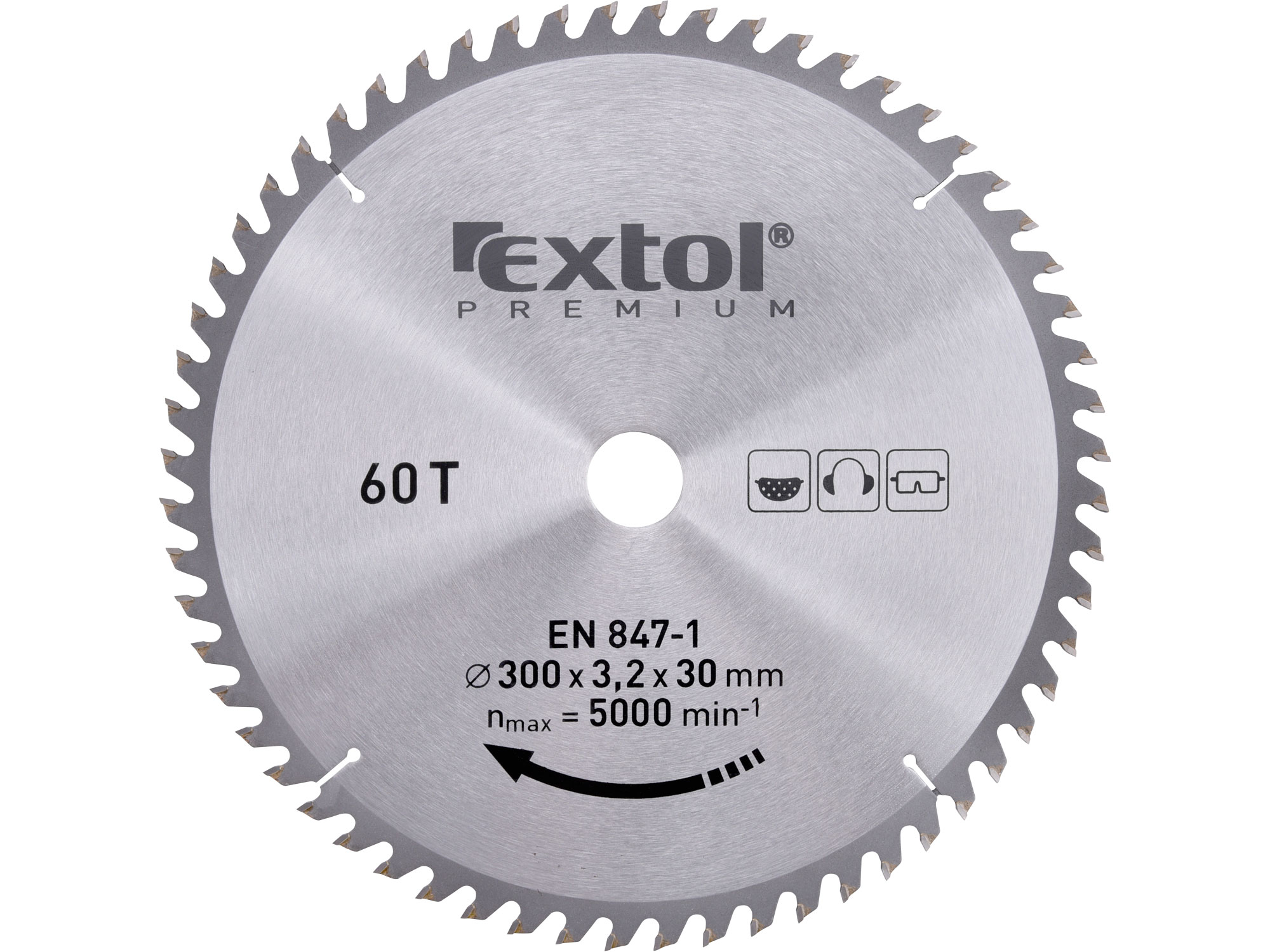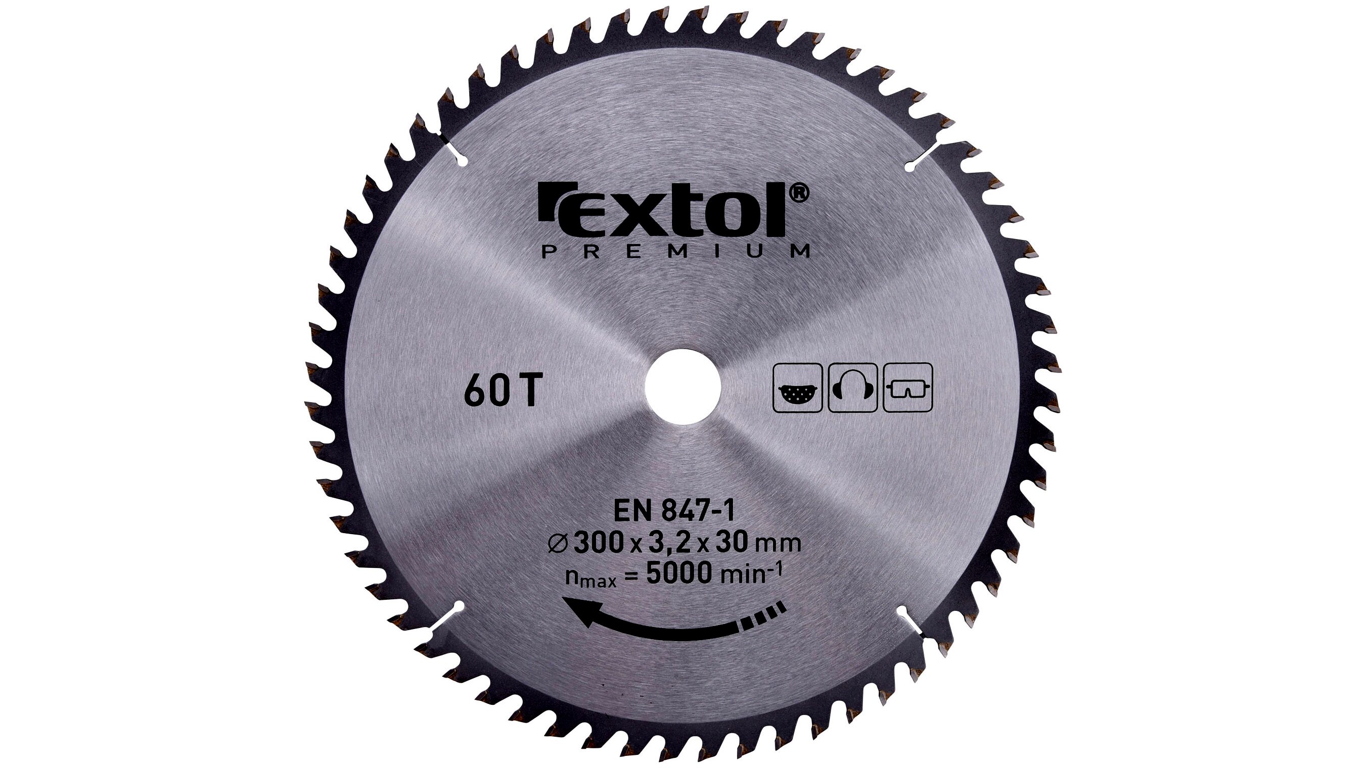 Extol körfűrészlap, keményfémlapkás, 300×30mm(lyuk átm), T60; 3,2mm lapkaszélesség, max. 5000 ford/perc