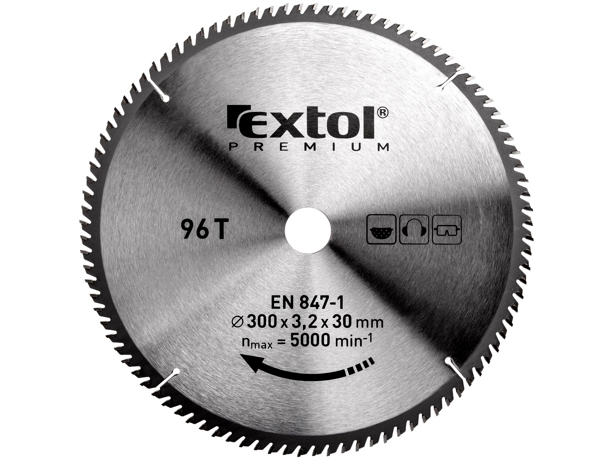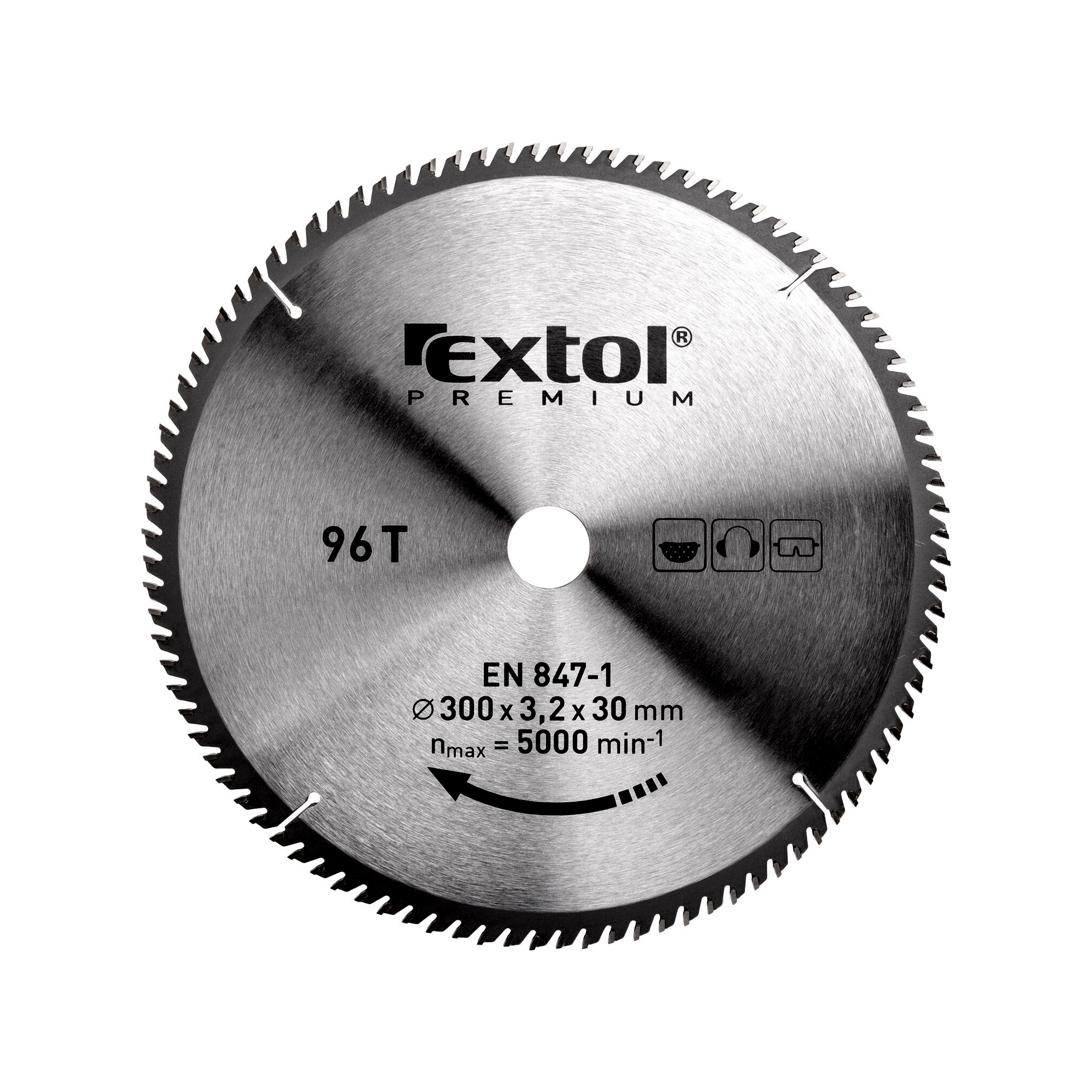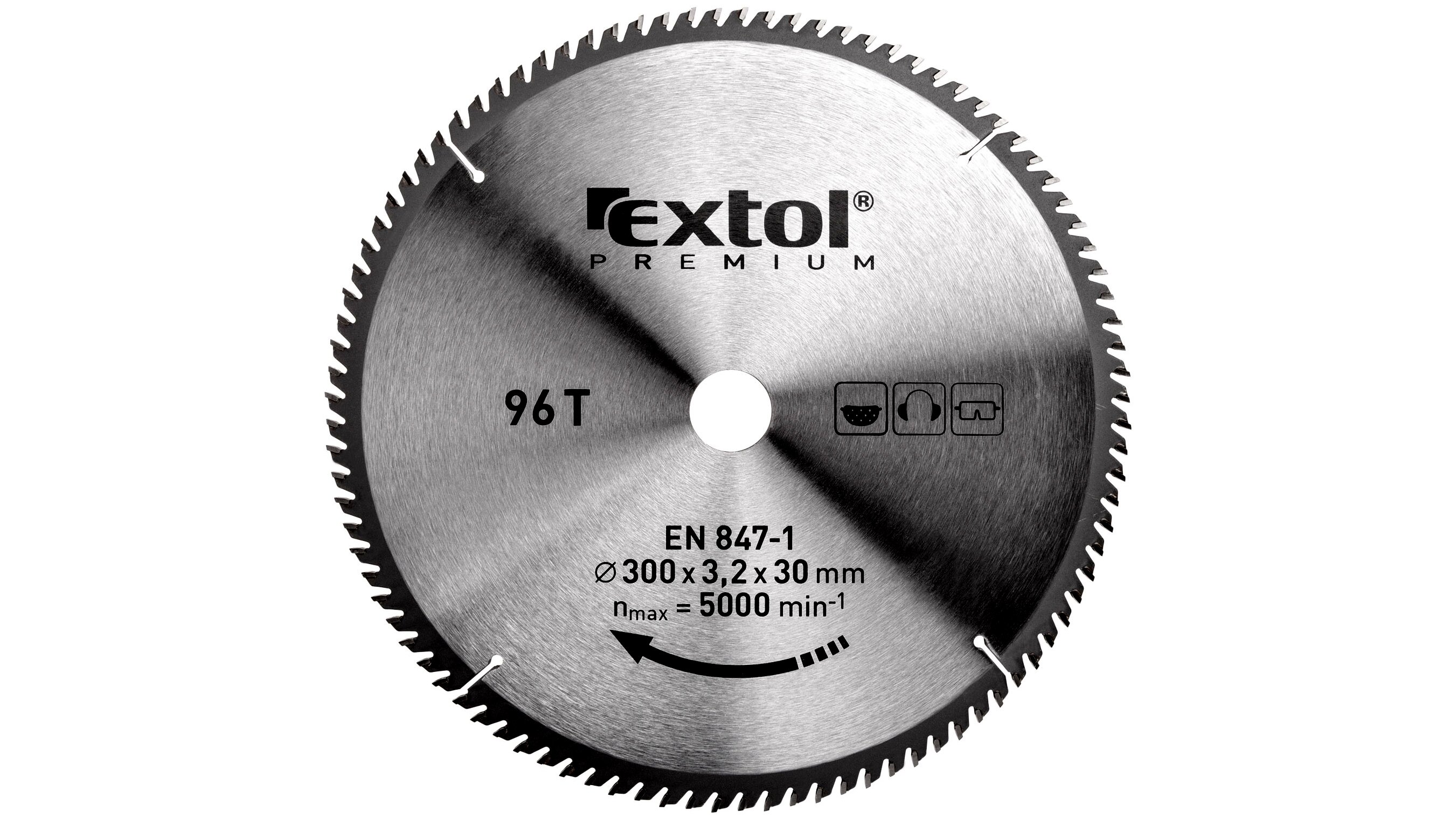 Extol körfűrészlap, keményfémlapkás, 300×30mm(lyuk átm), T96; 3,2mm lapkaszélesség, max. 5000 ford/perc
