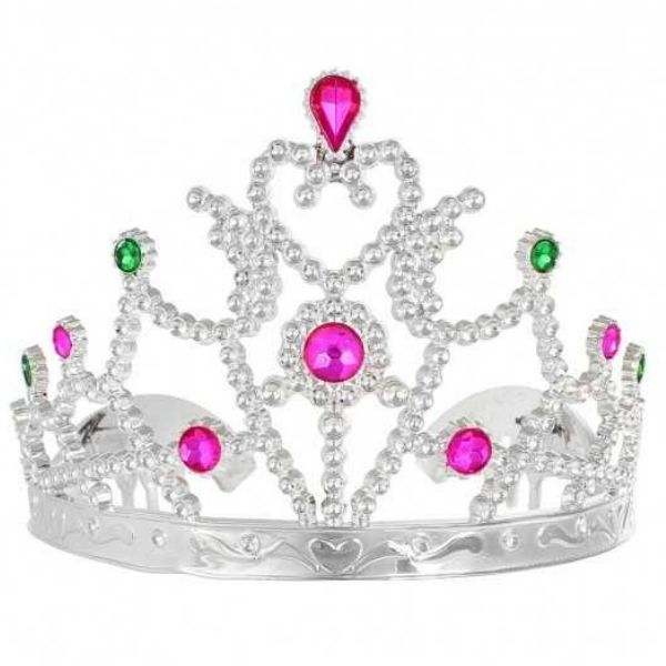 Ezüst tiara csillogó kövekkel - született hercegnőknek. Tökéletes jelmez kiegészítő, a ragyogás garantált. Két oldalon fésűk találhatók, így nem csúszik ki a hajból. Kezdődhet a hercegi bál?