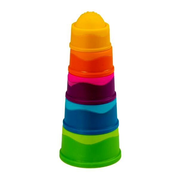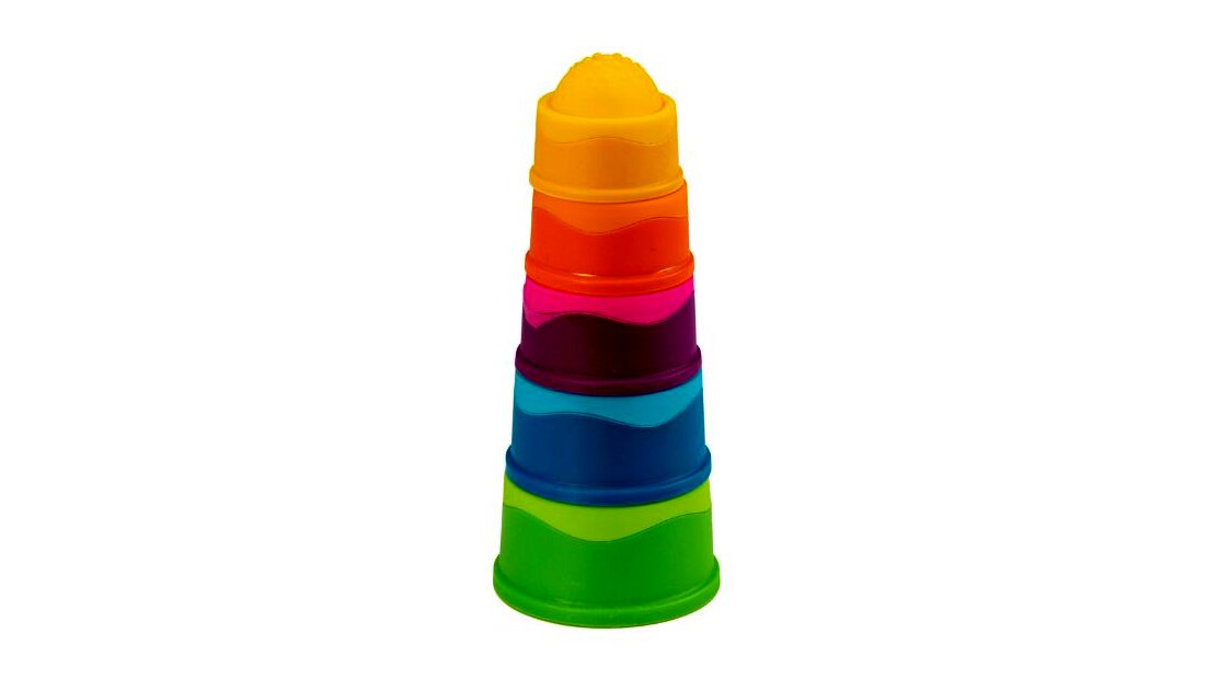 Innovatív bébijáték modern dizájnnal párosítva. A kicsik növekvő sorrendben egymásba építhetik a színes elemeket tornyot formálva, miközben észrevétlenül fejlődik a finommotorikájuk, egyensúlyuk, vizuális érzékelésük és térlátásuk. Minden elem egyedi mintákkal, textúrával és színes külsővel rendelkezik, benyomhatóak, kifordíthatóak.