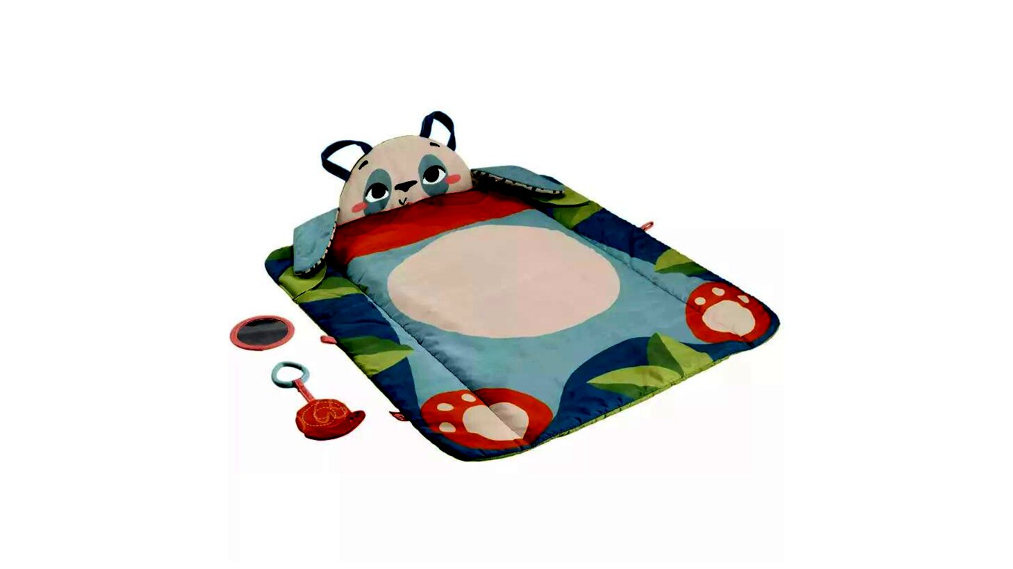 Ez az imádnivaló, panda mintával díszített játszószőnyeg közel 90 cm hosszú, így a legkisebbeknek rengeteg helyük lesz a világ - és persze a szőnyeg - felfedezésére.A 3 az 1-ben játszószőnyeg mind hanyatt, mind hason fekvő játékokhoz ideális, emellett az utazások során is szórakoztathatja a kicsiket. Ha a babák hason fekve játszanak, felfedezhetik a mancsokkal rögzíthető pandafejet, utazás során pedig a szőnyeg praktikusan feltekerhető, így kis helyen is elfér. A mellékelt tükör és rágóka játékra hívja a piciket, valamint különböző készségterületeken fejleszti őket.