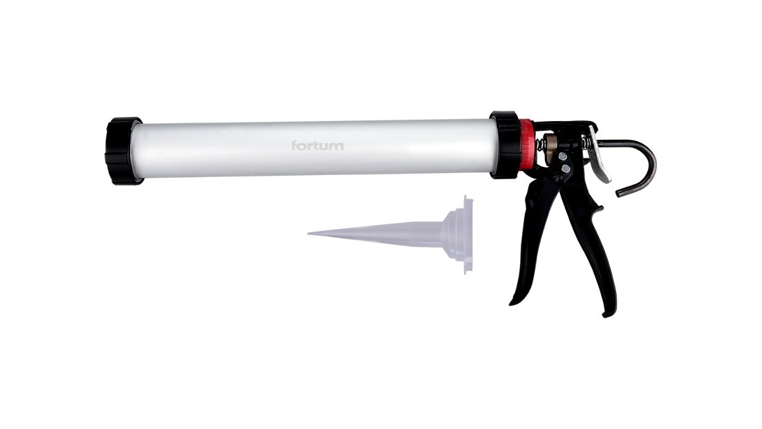 Fortum 4770827 kinyomópisztoly, fém; 380mm, 360°-ban körbeforgatható ALU tubustartóval