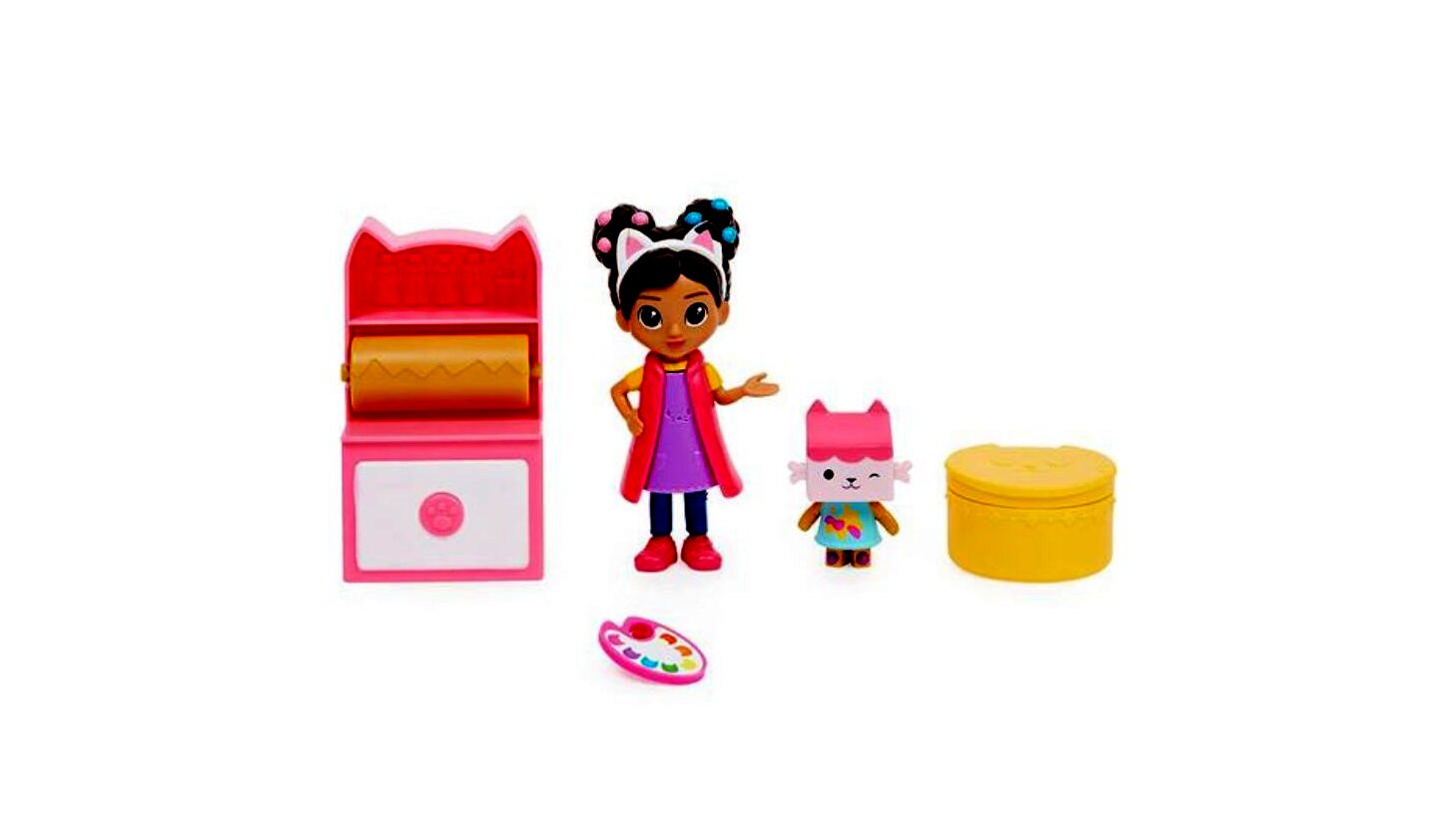 Akárcsak Gabi a sorozatban, a lányok is kibonthatják különleges csomagjukat, és felfedezhetik a titokzatos kiegészítőt. A felfedezés után csak a fantázia szabhat határt a játéknak. Gabi macskafülét megnyomva festékfoltossá válik a köpenye, újra megnyomva pedig tisztává válik. A szekrényből valóban kihúzható a papír, így új és új alkotások készülhetnek el.