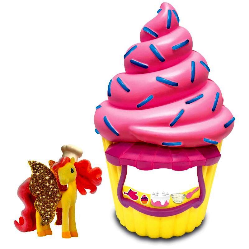 Tartalom: 1 db különleges Galupy unikornis, 1 db cupcake formájú sütiző, 1 db dioráma, matricák cukrászkiegészítők.