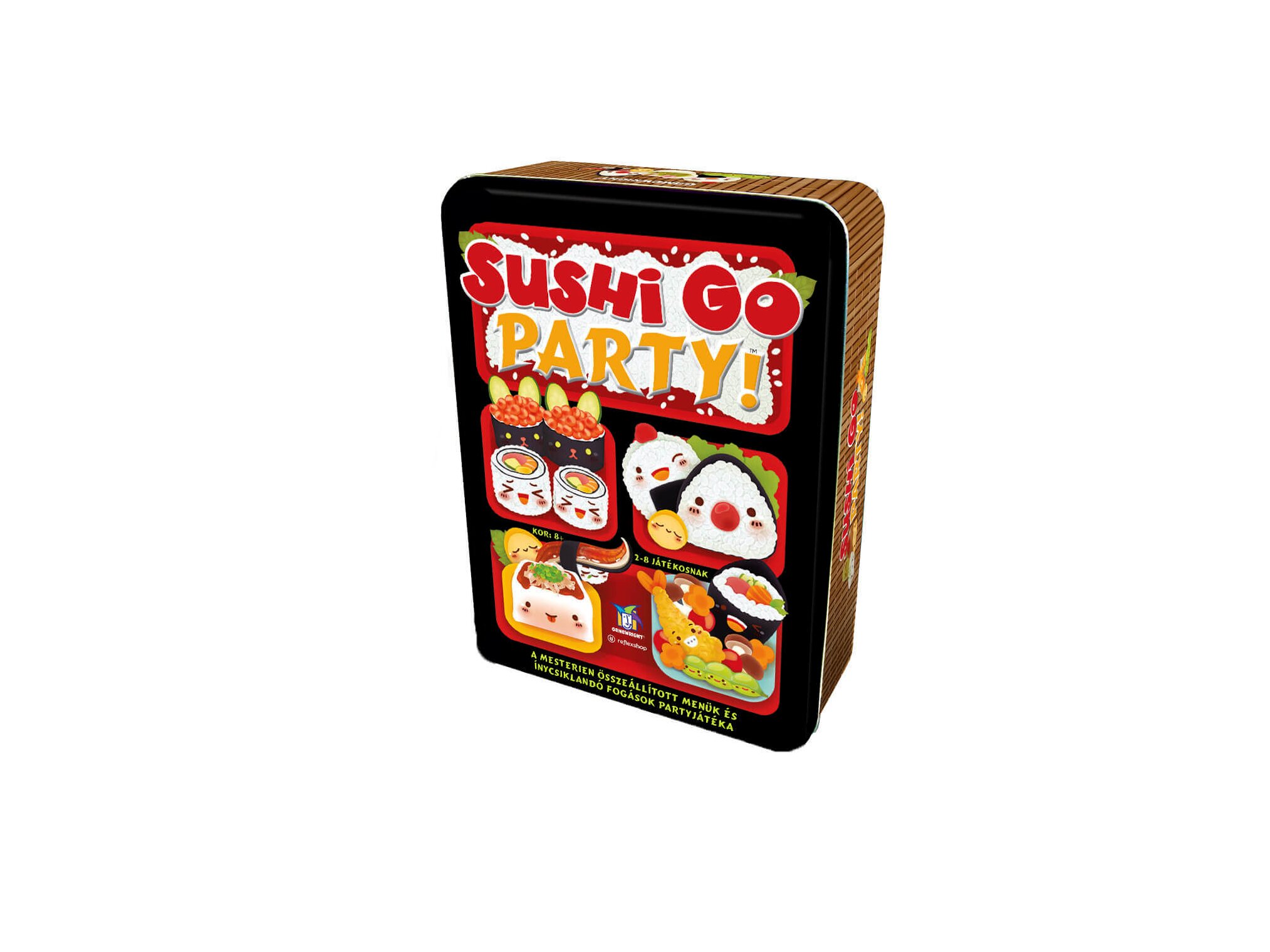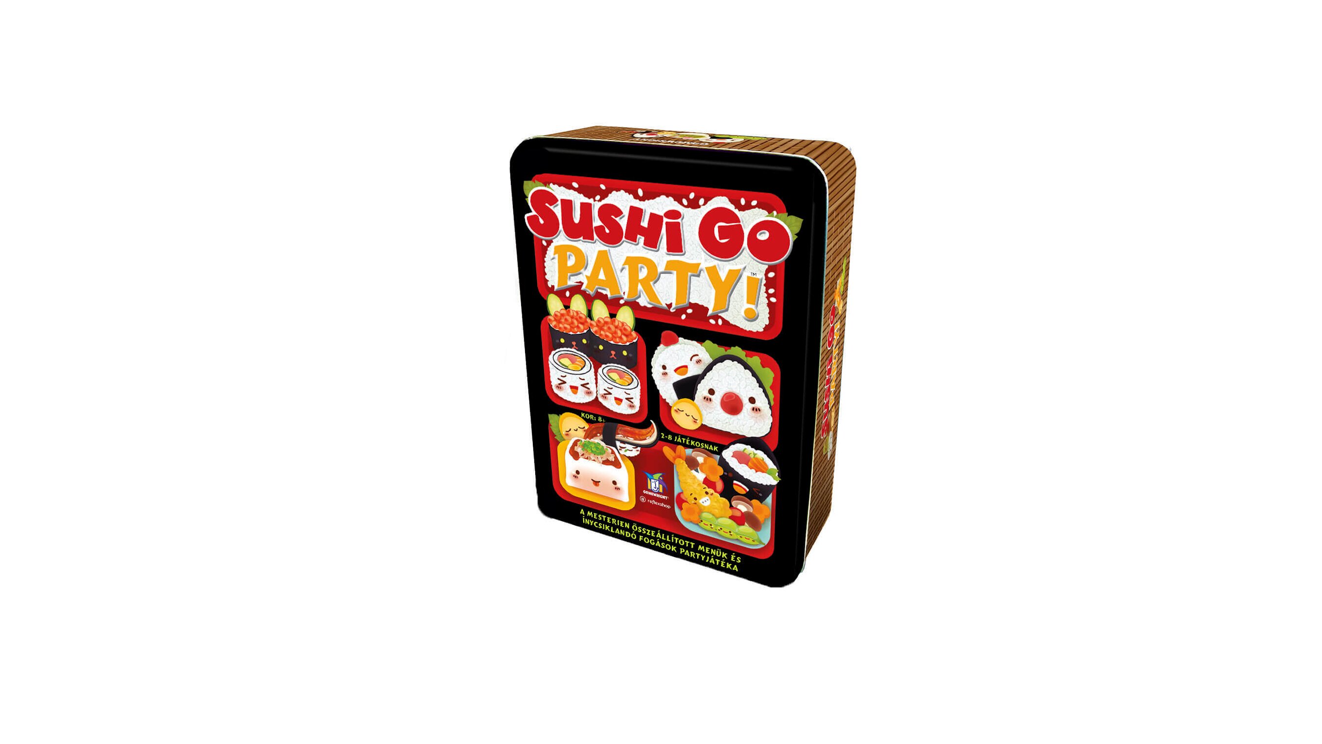 A Sushi Go Partyban csak a játékosokon múlik, milyen ételek kerülnek terítékre! A játék elején összeállított menühöz tartozó kártyákból a játékosszámnak megfelelőt kell kiosztani. Minden kártya másképpen ér pontot, de a kapott lapok közül mindig csak egy választható - a többit tovább kell adni a szomszédnak.