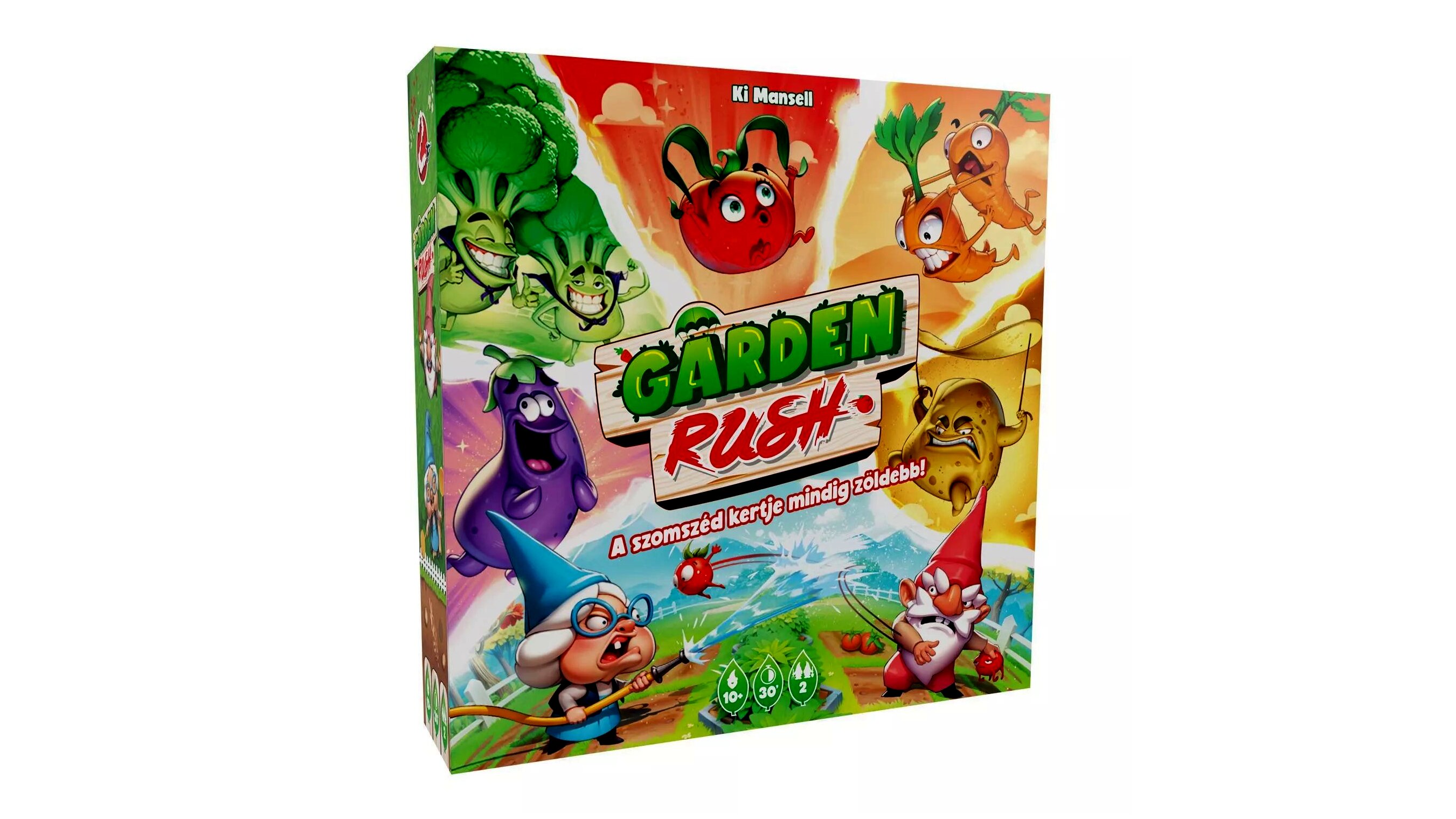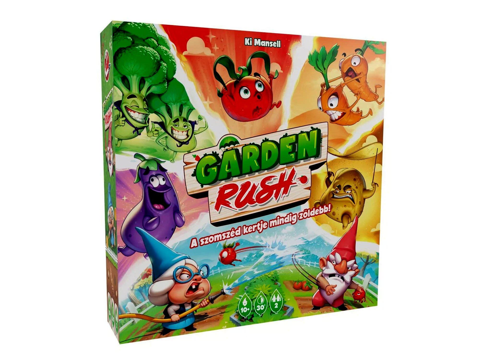 A sövényen várakoznak a zöldségek, várják a sorukat, mikor kerülnek ágyásba – vagy, ami még fontosabb, melyik ágyásba kerülnek? Mert minden zöldség szeret a saját fajtája mellett lenni, csakhogy más formációban! Így nehezebb a kertet új palántákkal megtölteni, de ha okosan tervez a kertész, többet is be tud takarítani egy fajtából, és több pontot léphet le a törpéjével. Ha jól számolt, a lépéssel pont egy kincsesládára lép, így egy bónusz akció segít neki abban, hogy lefőzze a vetélytársát.A Garden Rush könnyed kétfős játék, amelyben a játékosok a közös sövényről vehetik el azokat a zöldséglapkákat, amelyeket a saját kertjükbe ültetnek, azaz egymás orra elől happolhatják el a zöldségeket, amelyekkel igyekeznek minél nagyobb formációt alkotni. A jókor jó helyre ültetett növények bónuszakciót adnak – ugyanezeket az akciókat lehet aktiválni, ha a pontozósávon a megfelelő mennyiségűt lép a kertitörpéjük.