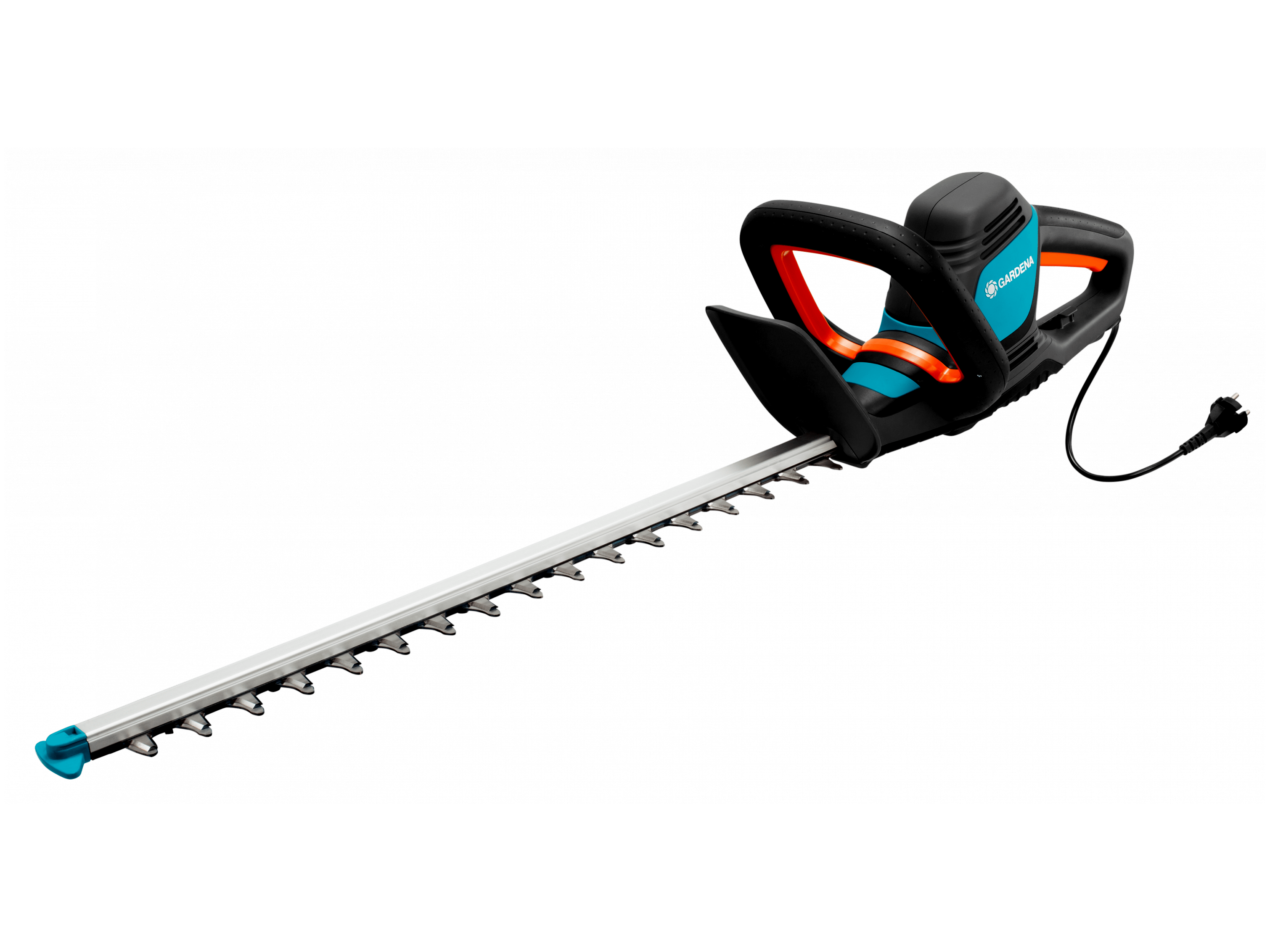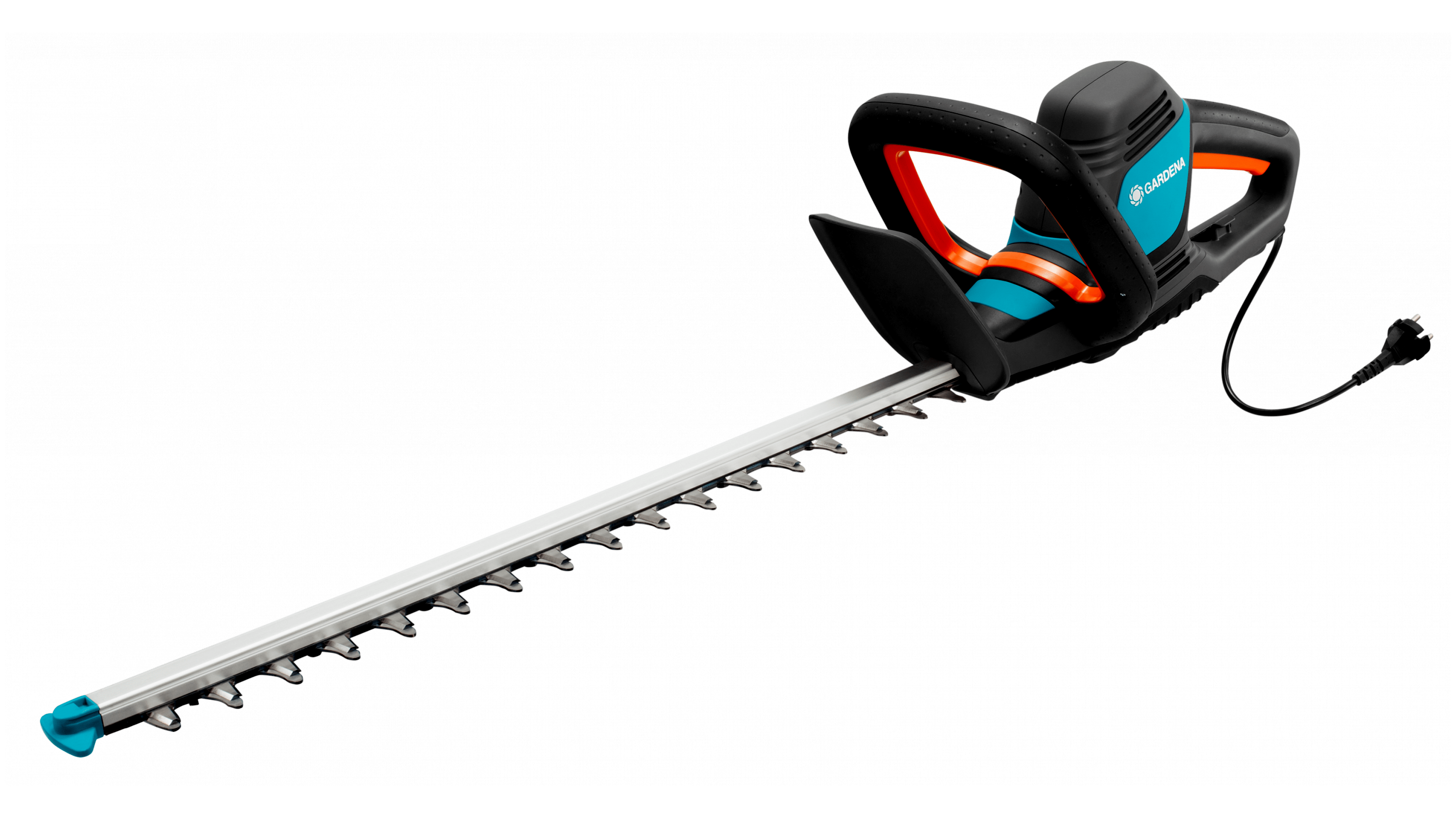 A kések végén lévő ütközésvédő védi a kést a talajhoz közel, a ház vagy falak mentén végzett sövénynyírás során. A kábelrögzítő megakadályozza a hosszabbító vezeték véletlenszerű kihúzását nyírás közben.