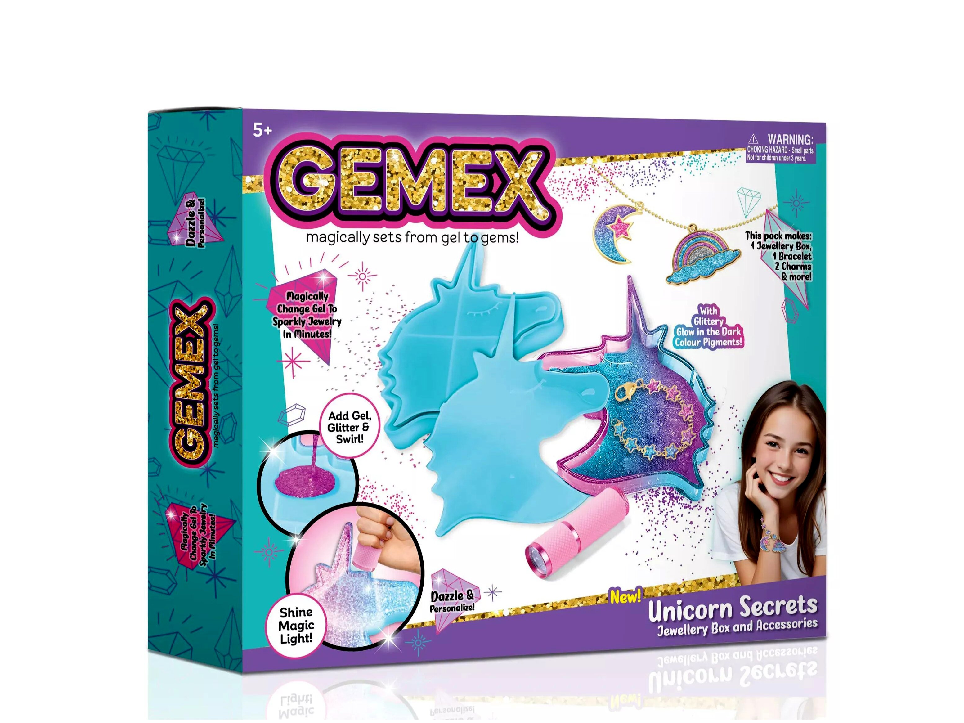 A Gemex szettekkel a gyerekek egy egészen új szintre emelhetik az ékszerkészítést - gélből alkothatnak valódi ékszereket! A varázslat a gyerekek szeme előtt zajlik le, és garantált, hogy minden ékszer egyedi és különleges lesz, nincs két egyforma. A szett lehetőséget ad arra, hogy a gyerekek akár 50 különleges ékszert készítsenek. A folyamat egyszerű: a gél a formába kerül, különböző dekorációk hozzáadásával, majd a varázslatos lámpával való megvilágítás után az anyag megszilárdul, és csodás ékszerekké alakul.