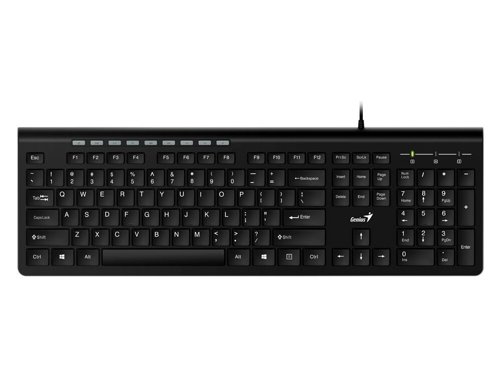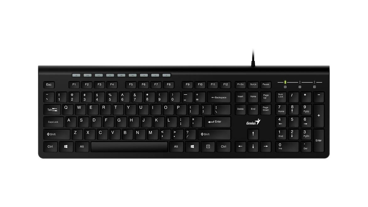 A Genius SlimStar 230 II egy teljes méretű, vezetékes USB billentyűzet magyar kiosztással, amelyet kényelmes, csendes gépelésre és gyors multimédiás vezérlésre terveztek otthoni és irodai használatra.