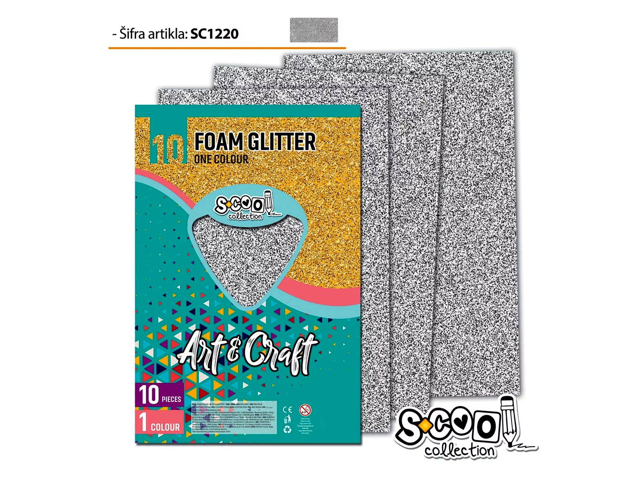 Glitteres dekorgumi, A4-es, 10 db-os, ezüst