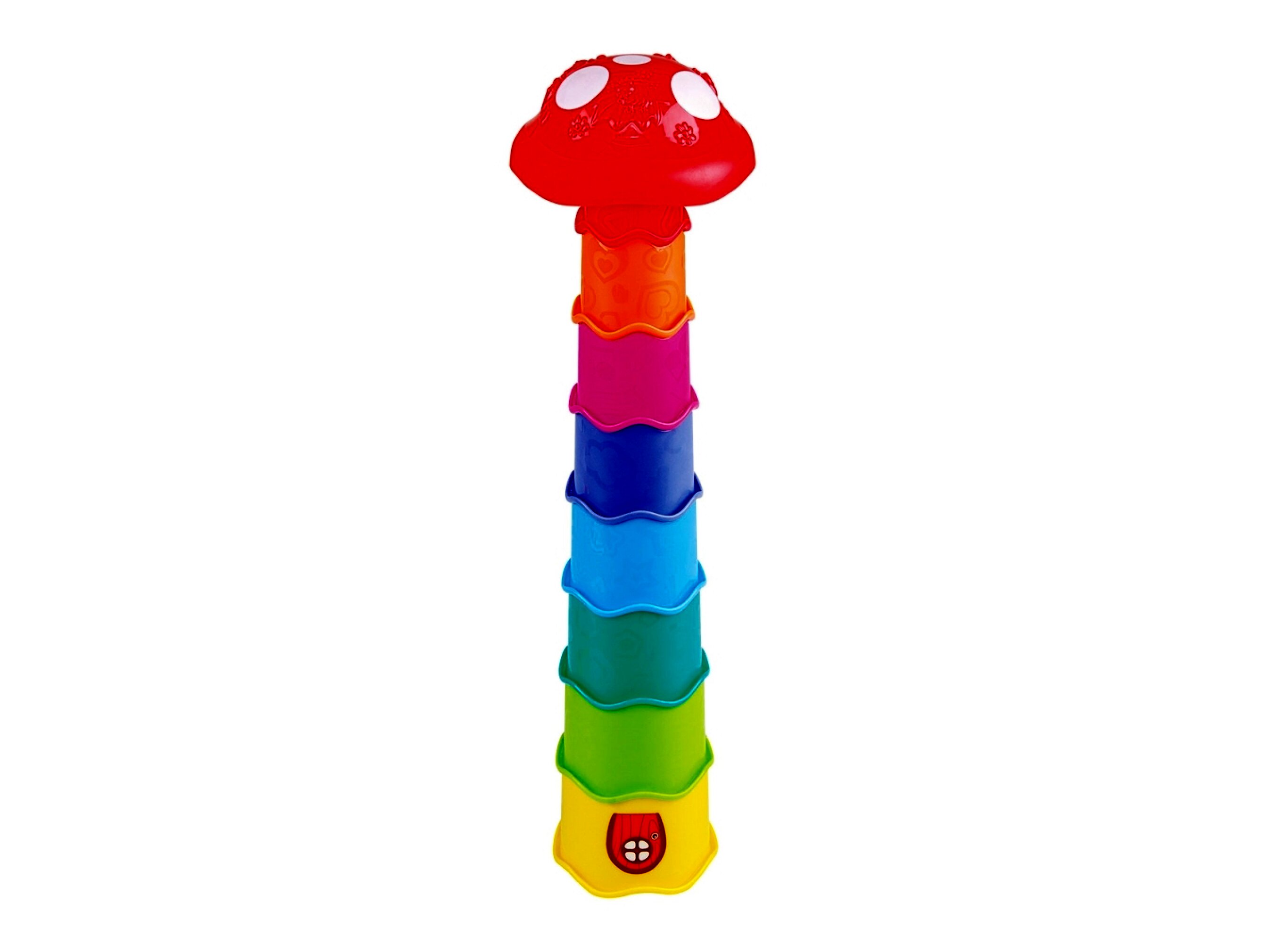 Építs tornyot a gombás játék elemeiből! A feladatod csak annyi, hogy a nagyobb elemekre ráhelyezed a kisebbeket, ez lesz a gomba szára. A torony legtetejére a gomba feje kerül. Ha jól dolgoztál, egyik elem sem csúszik a másikba.