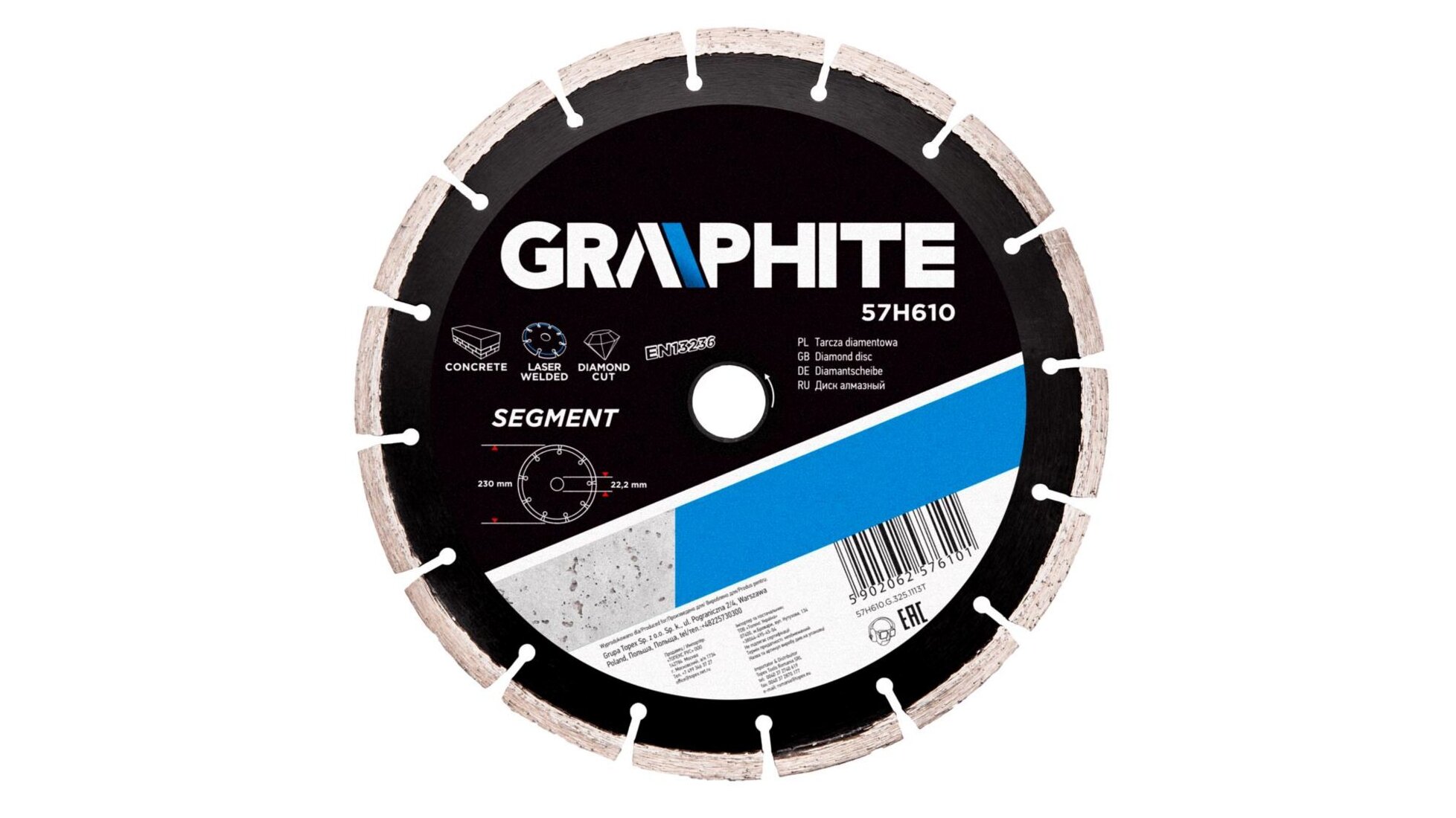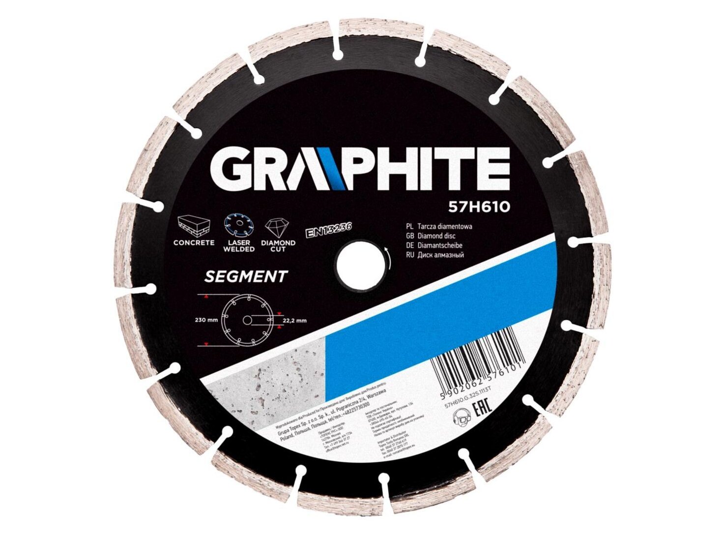 A GRAPHITE szegmentált gyémánttárcsa lézerhegesztett szegmenseinek köszönhetően ideális nehéz építőipari munkákhoz. Az igen erős gyémánt szegmensek lehetővé teszik a betonból, vasbetonból, gránitból, márványból, kőből, téglából készült elemek effektív vágását.