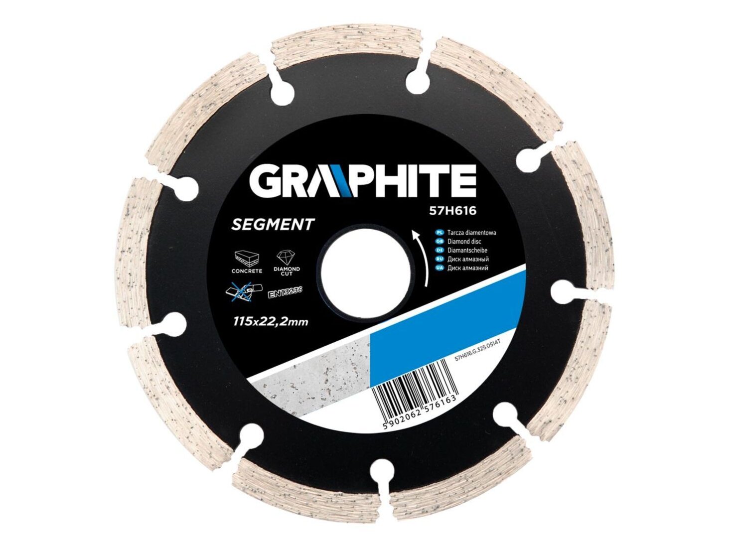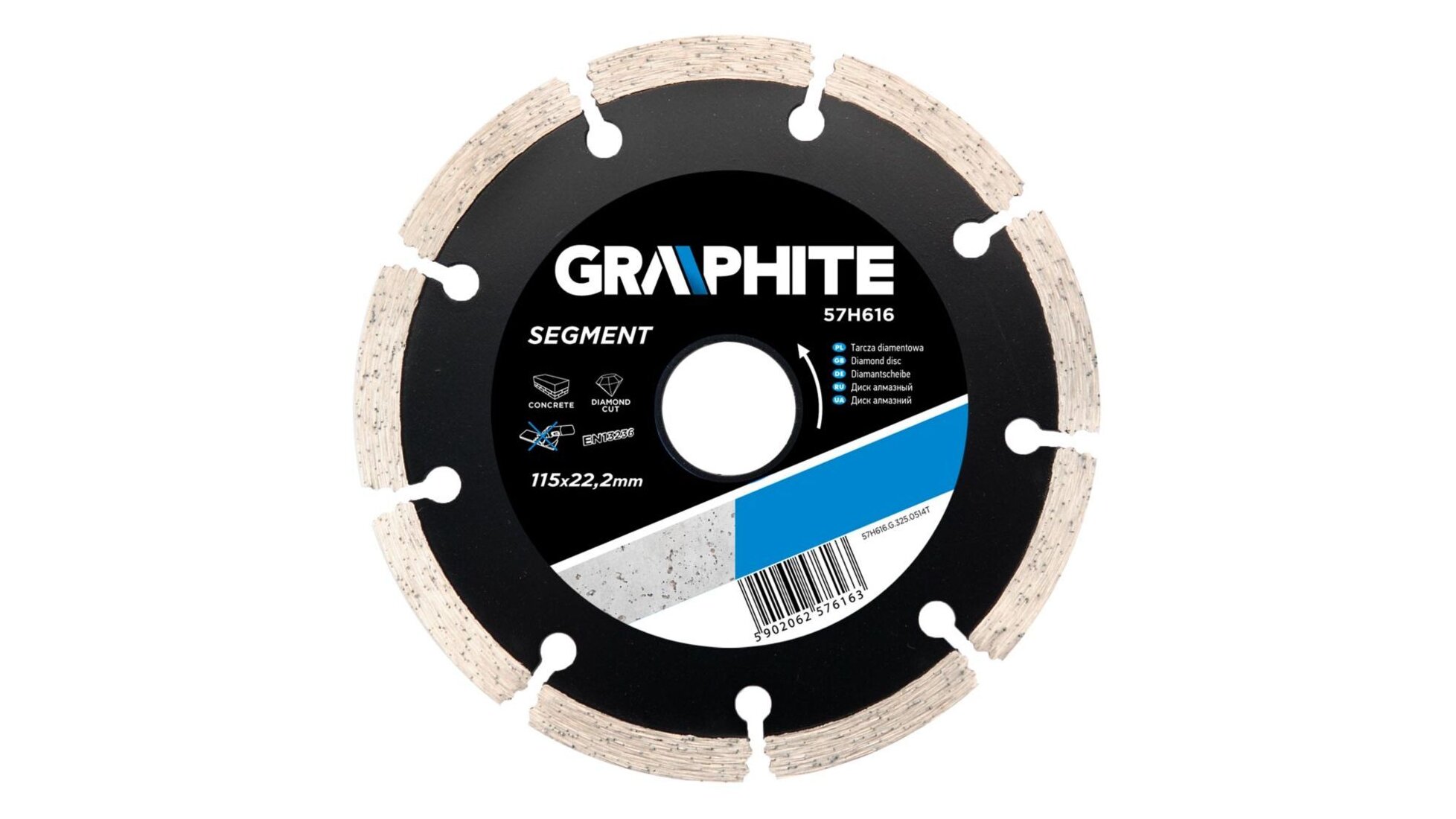 A GRAPHITE szegmentált gyémánttárcsa melegen préselt szegmenseinek köszönhetően ideális nehéz építőipari munkákhoz. Az igen erős gyémánt szegmensek lehetővé teszik a betonból, vasbetonból, gránitból, márványból, kőből, téglából készült elemek effektív vágását.