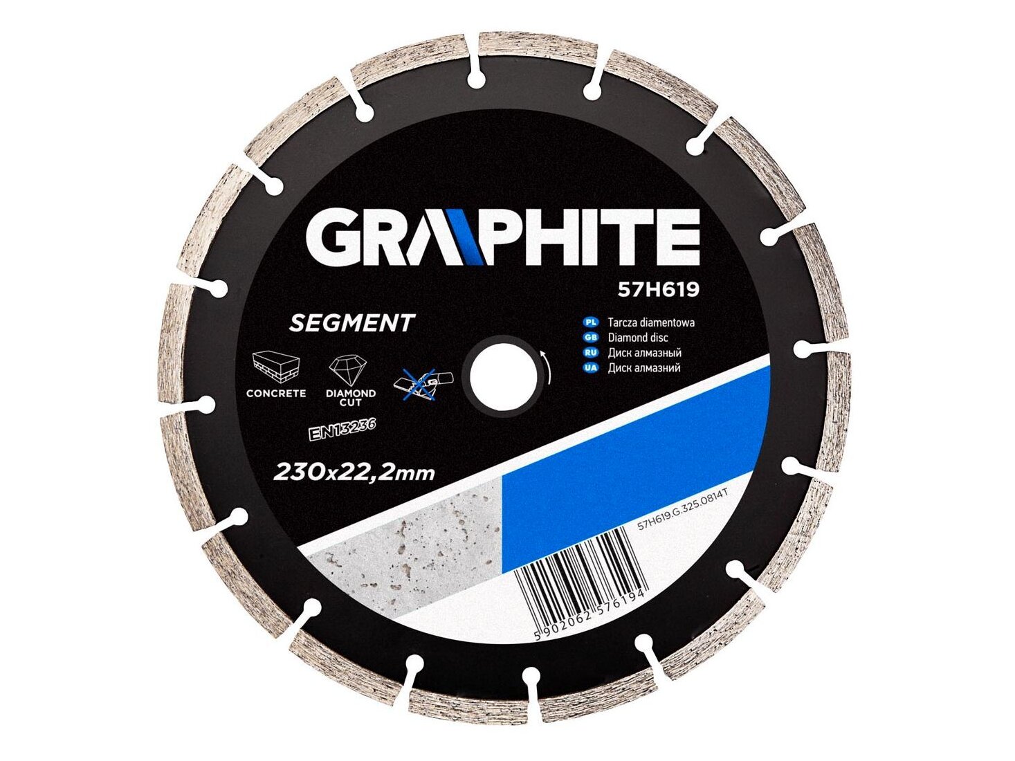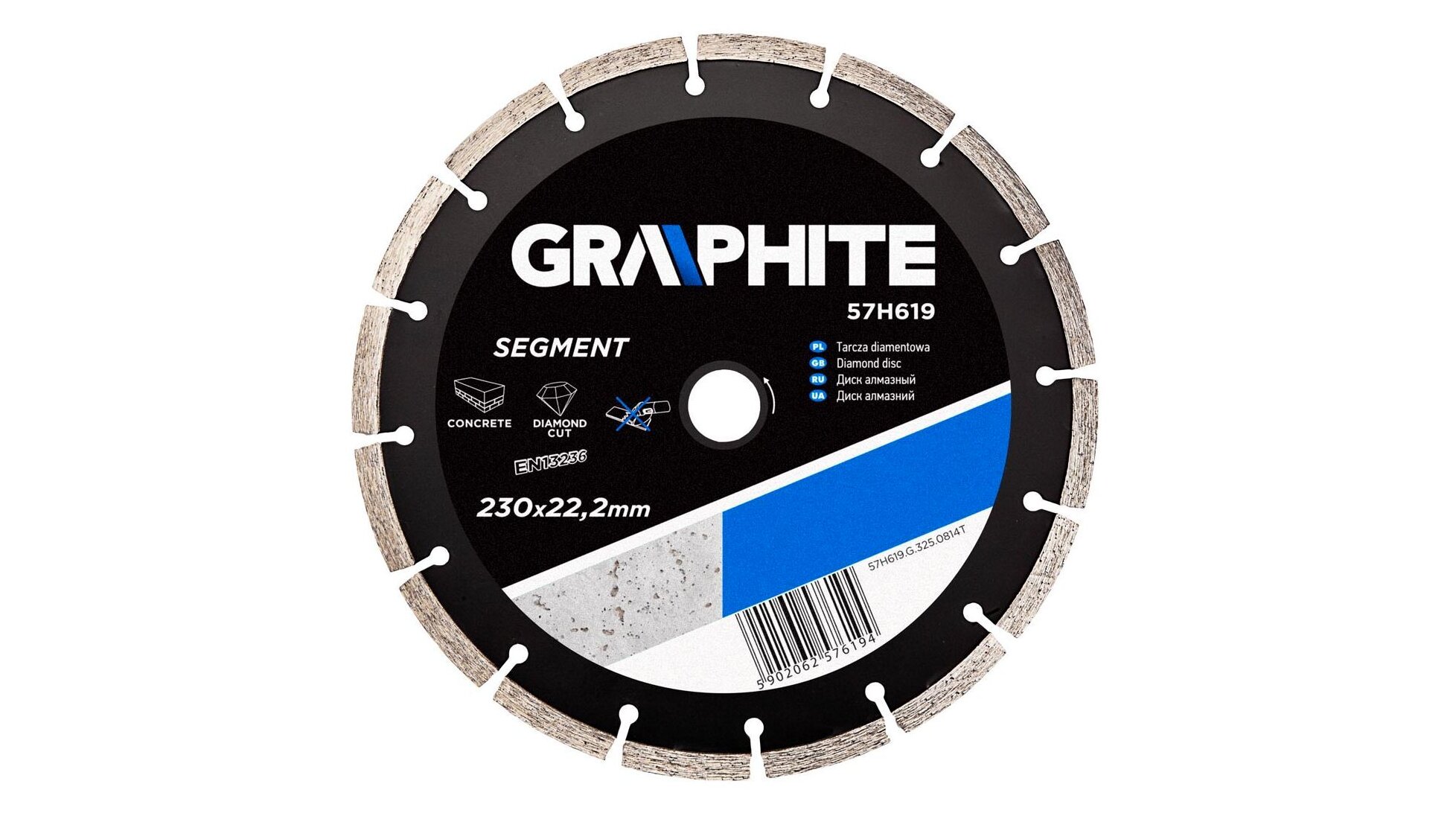 A GRAPHITE szegmentált gyémánttárcsa melegen préselt szegmenseinek köszönhetően ideális nehéz építőipari munkákhoz. Az igen erős gyémánt szegmensek lehetővé teszik a betonból, vasbetonból, gránitból, márványból, kőből, téglából készült elemek effektív vágását.