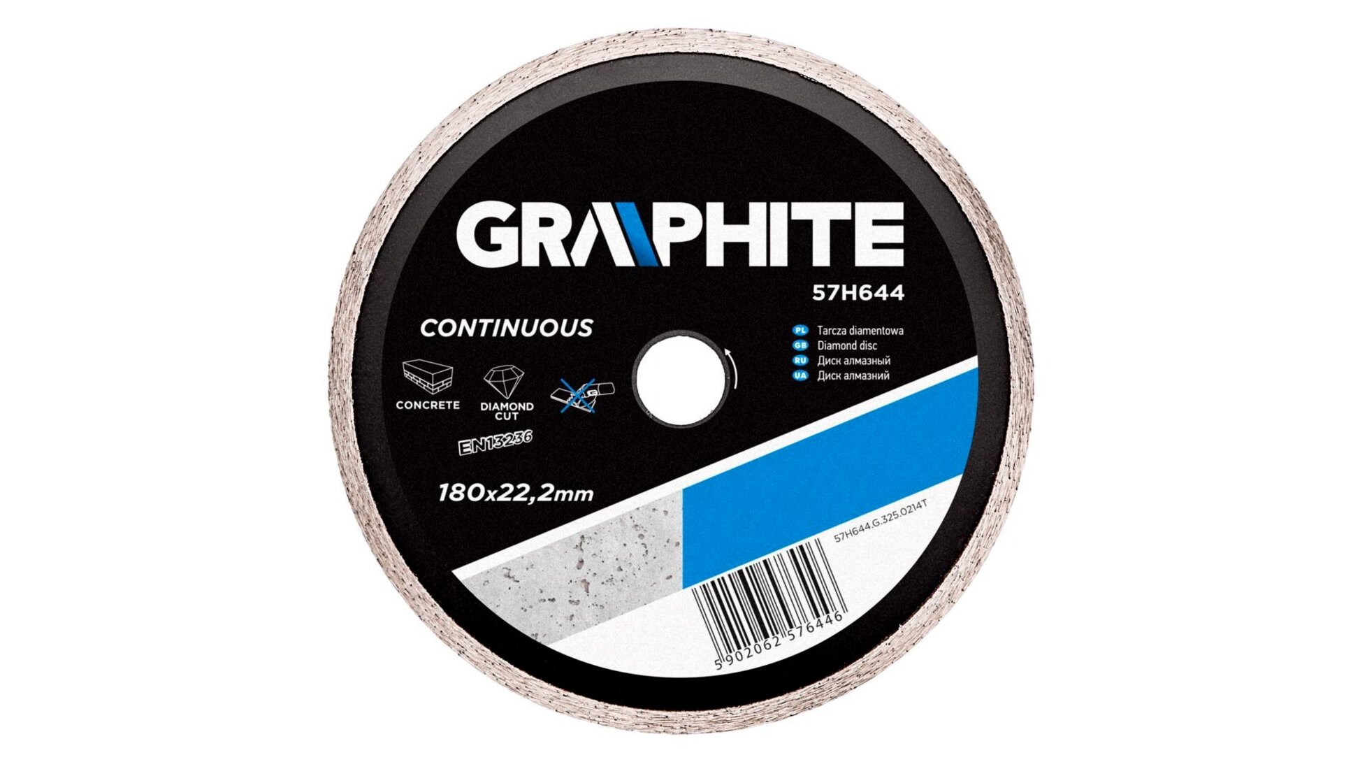 A GRAPHITE folyamatos élű gyémánttárcsa melegen préselt körszegmensének köszönhetően ideális nehéz építőipari munkákhoz. Az igen strapabíró gyémánt szegmens lehetővé teszi kerámia elemek, pl. terrakotta, gres, gránit, márvány hatékony vágását.
