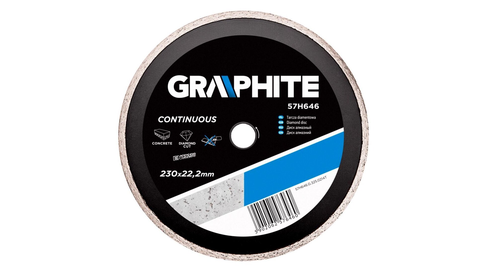 A GRAPHITE folyamatos élű gyémánttárcsa melegen préselt körszegmensének köszönhetően ideális nehéz építőipari munkákhoz. Az igen strapabíró gyémánt szegmens lehetővé teszi kerámia elemek, pl. terrakotta, gres, gránit, márvány hatékony vágását.