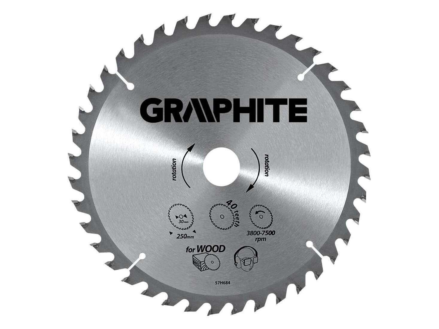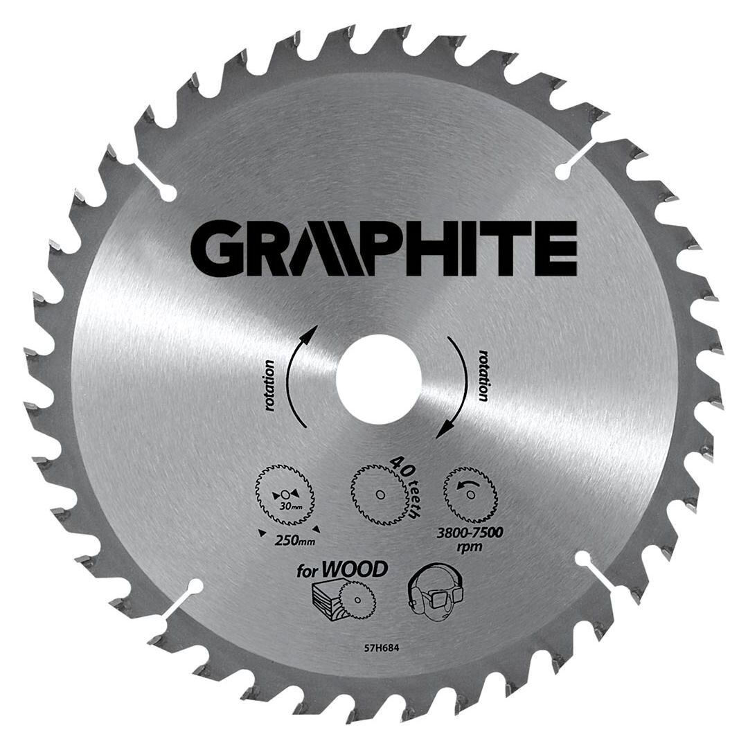 A GRAPHITE vídiabetétes fűrésztárcsa a hőmérsékletnek és a deformálódásnak igen ellenálló MN65-ös mangán acélötvözetből készül. Az YG6A vídiabetétes fogazás lehetővé teszi a fa és faalapú anyagok, mint pl. a rétegelt lemez, a forgácslap vagy az MDF lapok nagyoló vágását. A csomagolásban megtalálható szűkítő gyűrűk lehetővé teszik a fűrésztárcsák alkalmazását a fűrészgép típusok többségéhez.