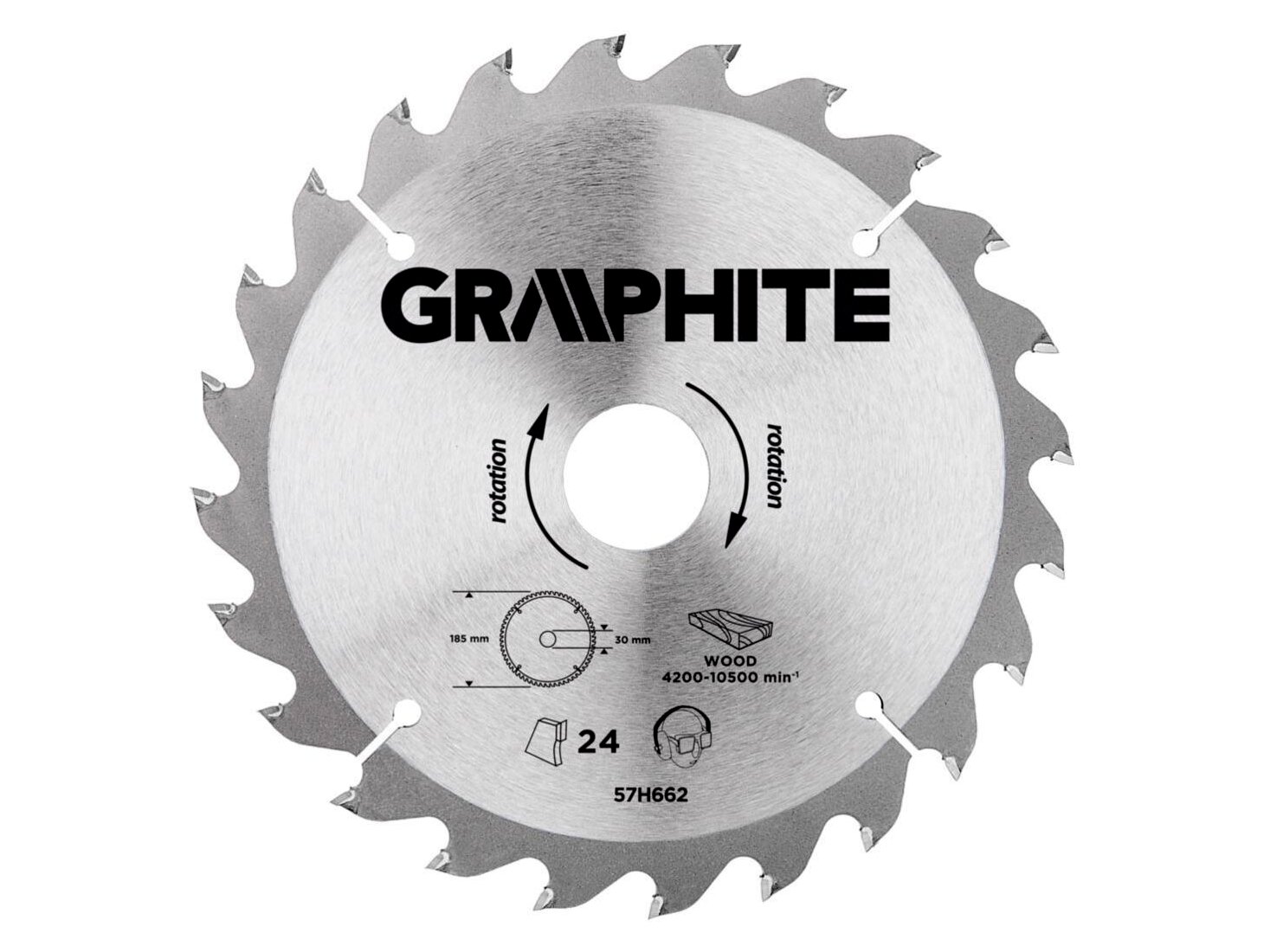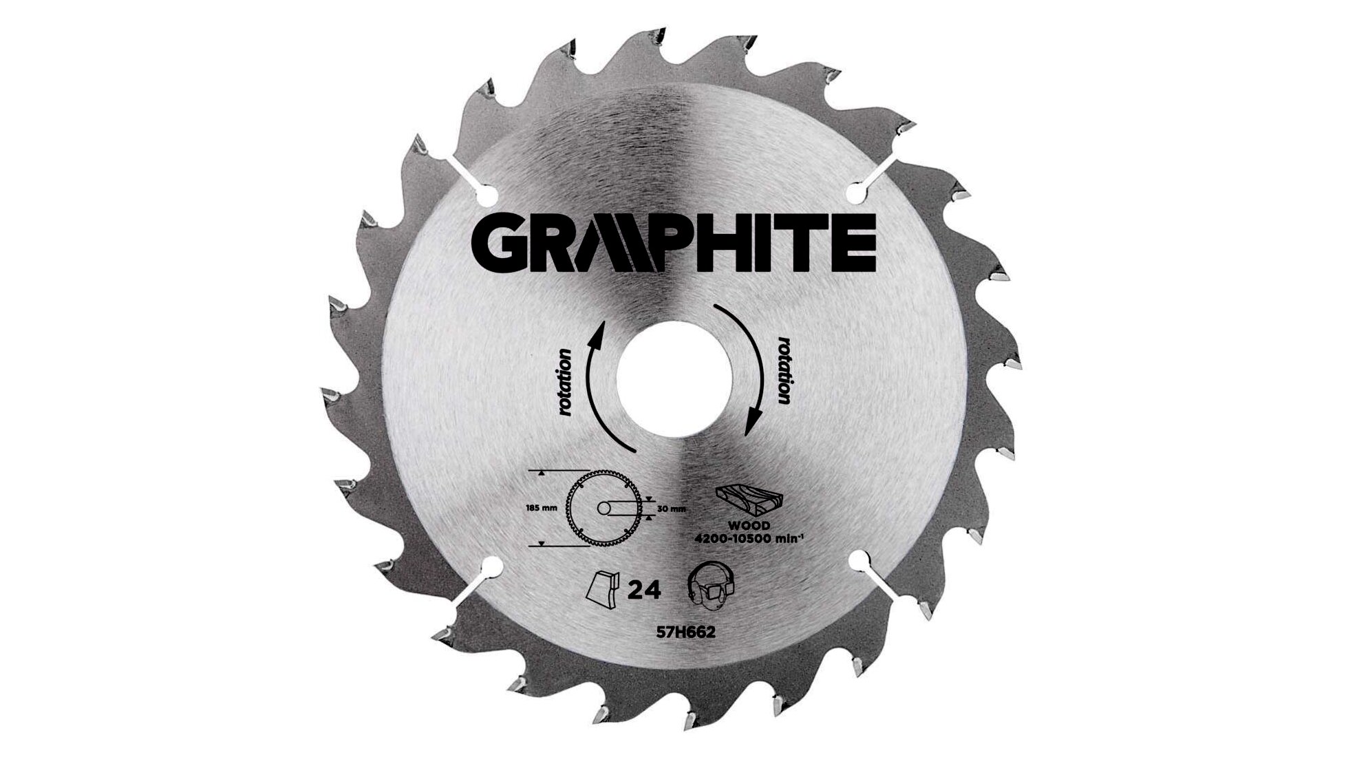 A GRAPHITE vídiabetétes fűrésztárcsa a hőmérsékletnek és a deformálódásnak igen ellenálló MN65-ös mangán acélötvözetből készül. Az YG6A vídiabetétes fogazás lehetővé teszi a fa és faalapú anyagok, mint pl. a rétegelt lemez, a forgácslap vagy az MDF lapok nagyoló vágását. A csomagolásban megtalálható szűkítő gyűrűk lehetővé teszik a fűrésztárcsák alkalmazását a fűrészgép típusok többségéhez.