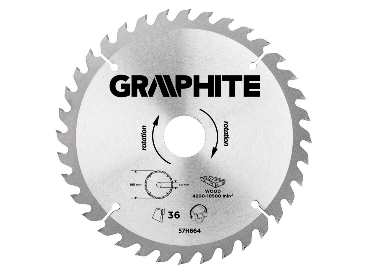 A GRAPHITE vídiabetétes fűrésztárcsa a hőmérsékletnek és a deformálódásnak igen ellenálló MN65-ös mangán acélötvözetből készül. Az YG6A vídiabetétes fogazás lehetővé teszi a fa és faalapú anyagok, mint pl. a rétegelt lemez, a forgácslap vagy az MDF lapok nagyoló vágását. A csomagolásban megtalálható szűkítő gyűrűk lehetővé teszik a fűrésztárcsák alkalmazását a fűrészgép típusok többségéhez.