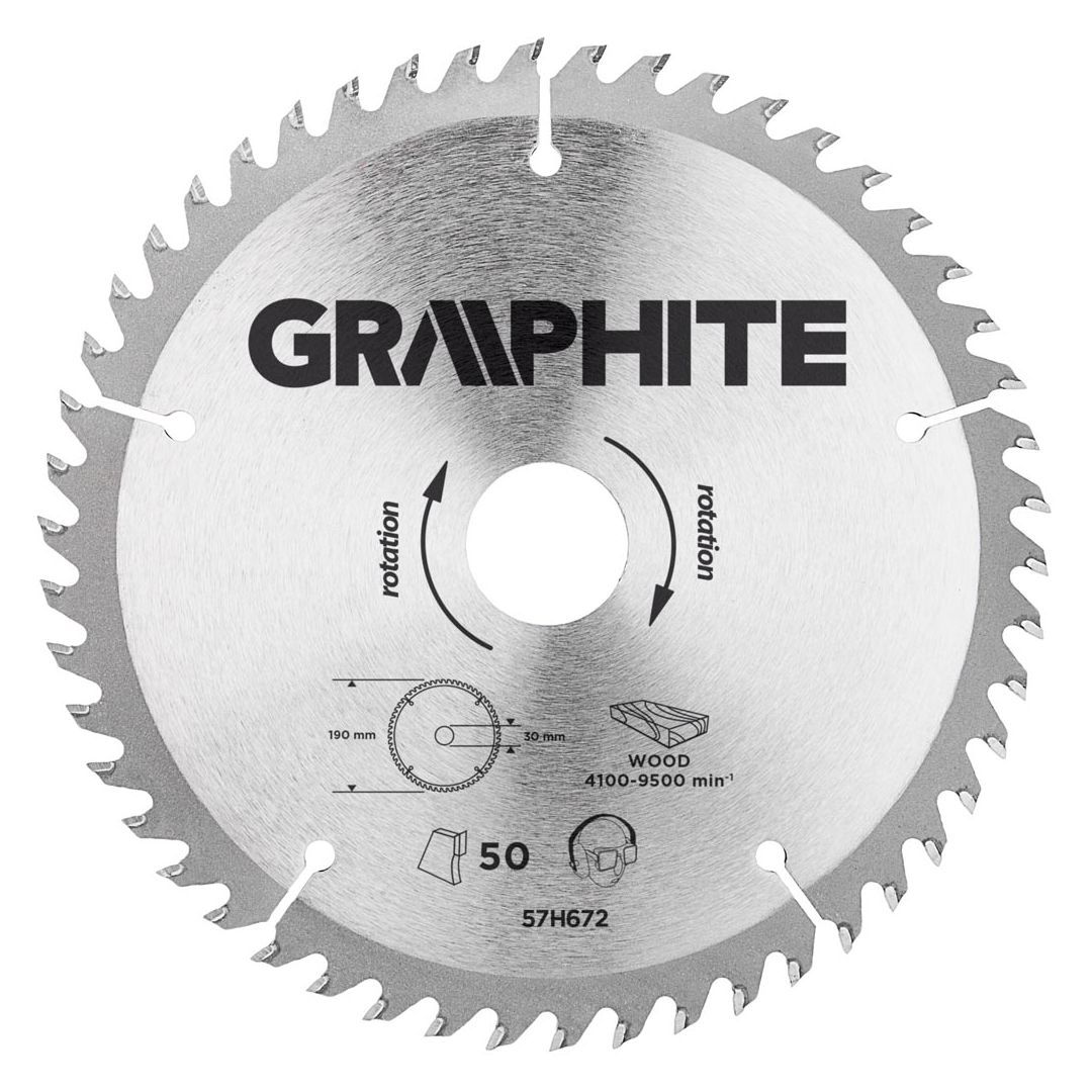 A GRAPHITE vídiabetétes fűrésztárcsa a hőmérsékletnek és a deformálódásnak igen ellenálló MN65-ös mangán acélötvözetből készül. Az YG6A vídiabetétes fogazás lehetővé teszi a fa és faalapú anyagok, mint pl. a rétegelt lemez, a forgácslap vagy az MDF lapok nagyoló vágását. A csomagolásban megtalálható szűkítő gyűrűk lehetővé teszik a fűrésztárcsák alkalmazását a fűrészgép típusok többségéhez.