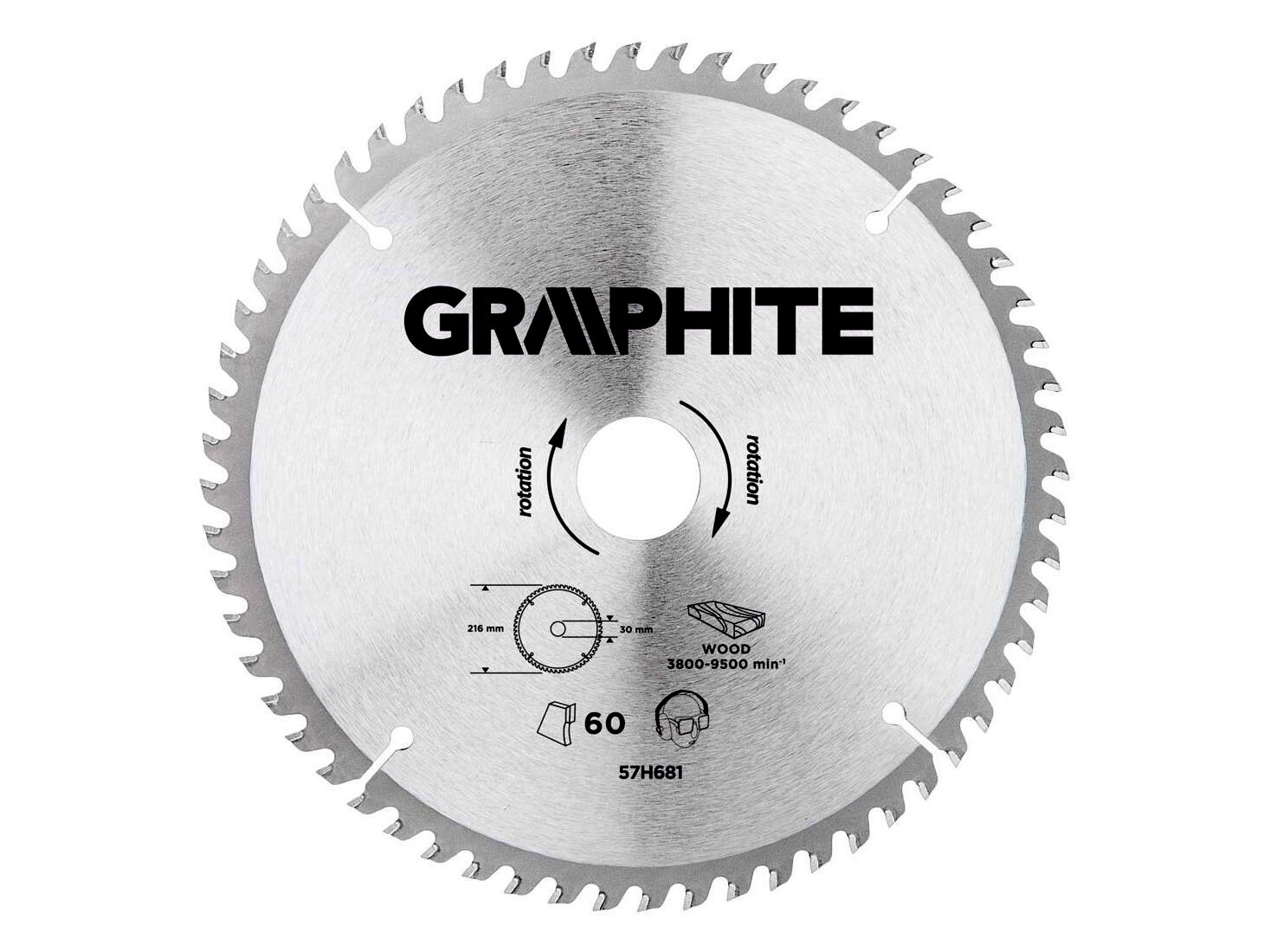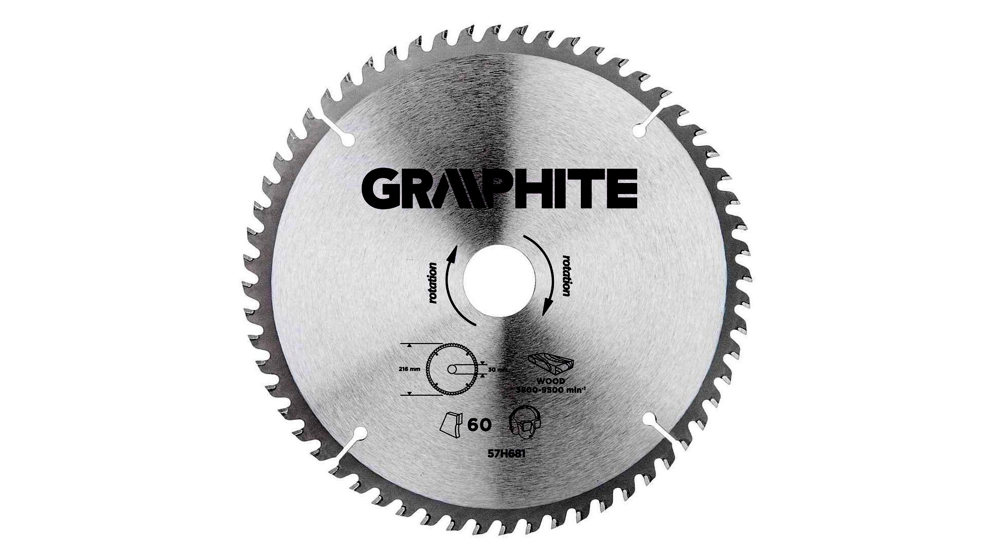 A GRAPHITE vídiabetétes fűrésztárcsa a hőmérsékletnek és a deformálódásnak igen ellenálló MN65-ös mangán acélötvözetből készül. Az YG6A vídiabetétes fogazás lehetővé teszi a fa és faalapú anyagok, mint pl. a rétegelt lemez, a forgácslap vagy az MDF lapok nagyoló vágását. A csomagolásban megtalálható szűkítő gyűrűk lehetővé teszik a fűrésztárcsák alkalmazását a fűrészgép típusok többségéhez.