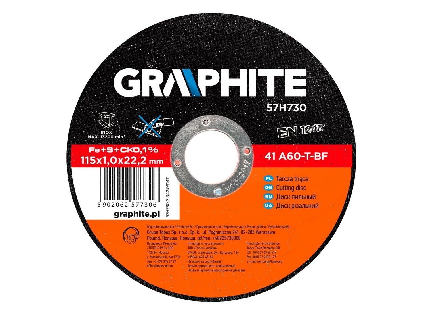 A GRAPHITE fémvágó tárcsa előremutató kialakítása és vastagság csökkentése révén lehetővé teszi a vágás sebességének kétszeresre növelését. A termék megfelelése az EN 12413 szabványnak biztosítja a munkavégzés magas fokú biztonságát.
