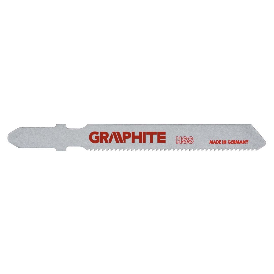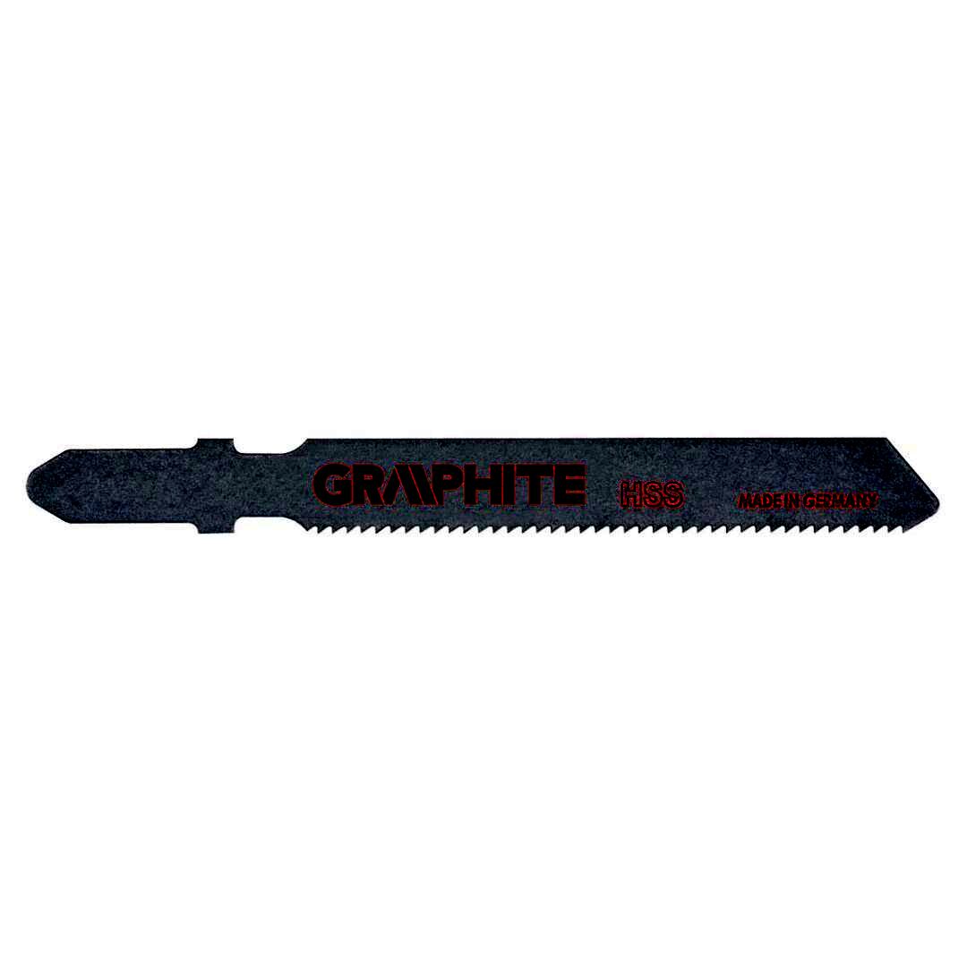 GRAPHITE szúrófűrész pengék fa és műanyag közepesen pontos vágásához. A T befogás alkalmazhatóvá teszi a pengét az összes Bosch típusú vagy univerzális befogással szerelt szúrófűrészben. A CrV (króm-vanádium) acél a pengéknek nagy rugalmasságot és hőmérséklet-állóságot kölcsönöz. A penge csiszolt oldalfelületei csökkentik a súrlódást és a penge felmelegedését fűrészelés közben.