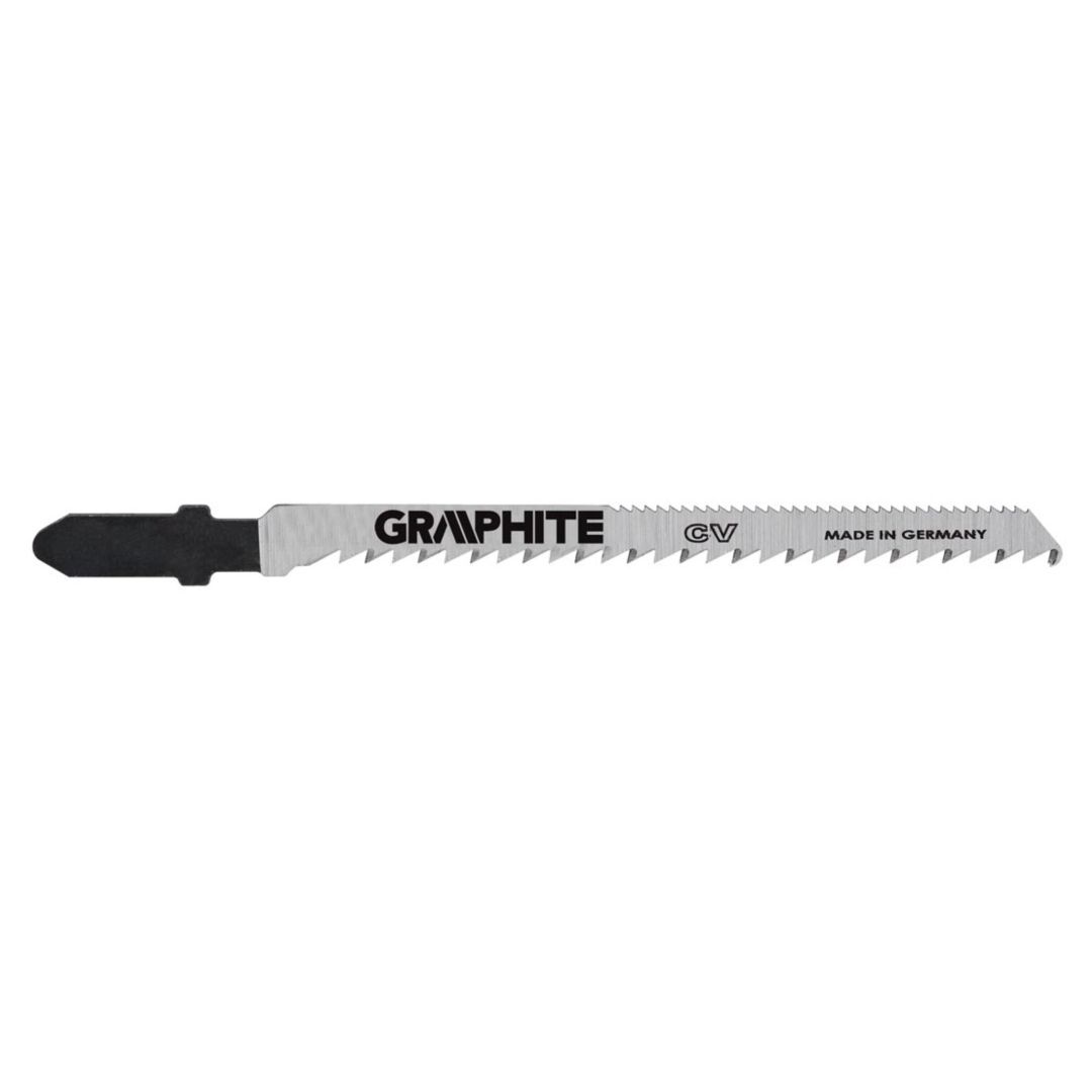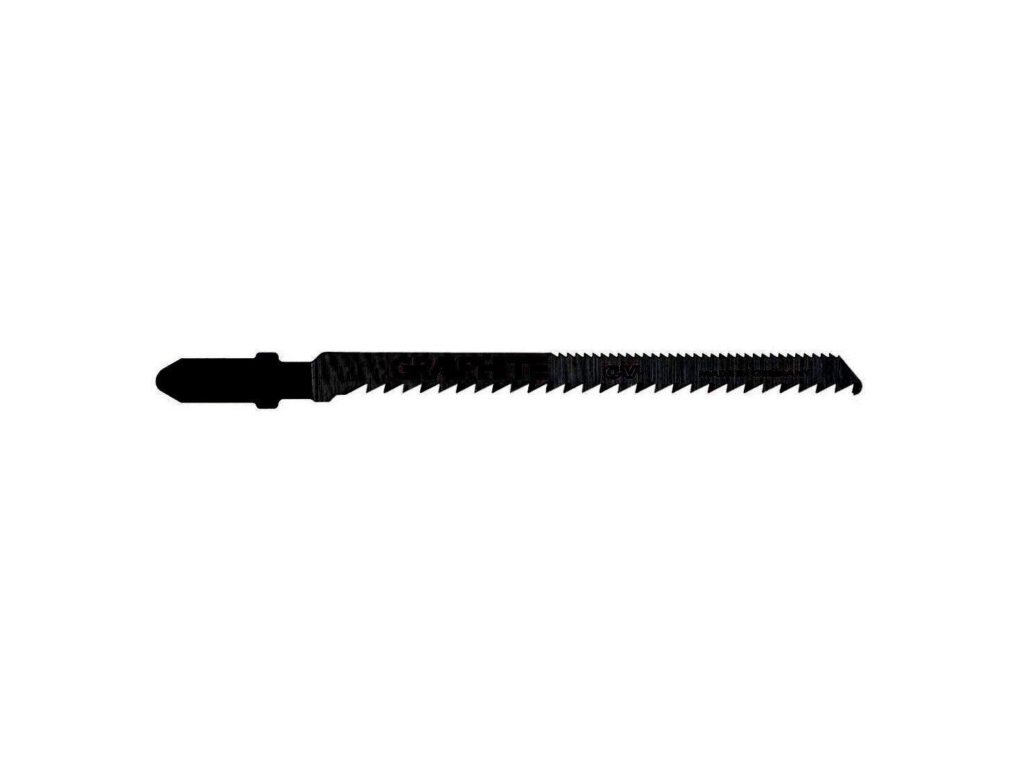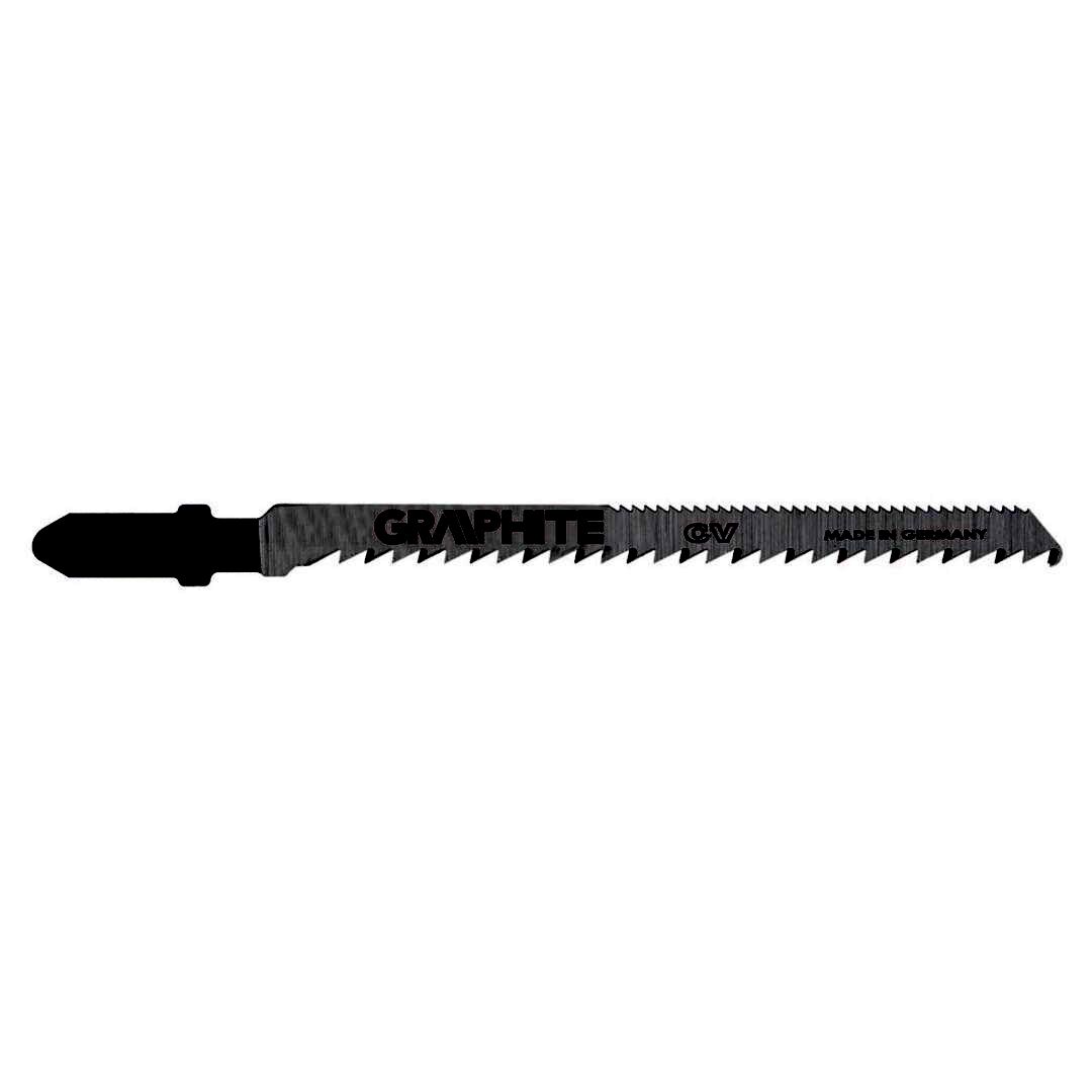 GRAPHITE szúrófűrész pengék fa és műanyag közepesen pontos vágásához. A T befogás alkalmazhatóvá teszi a pengét az összes Bosch típusú vagy univerzális befogással szerelt szúrófűrészben. A CrV (króm-vanádium) acél a pengéknek nagy rugalmasságot és hőmérséklet-állóságot kölcsönöz. A penge csiszolt oldalfelületei csökkentik a súrlódást és a penge felmelegedését fűrészelés közben.