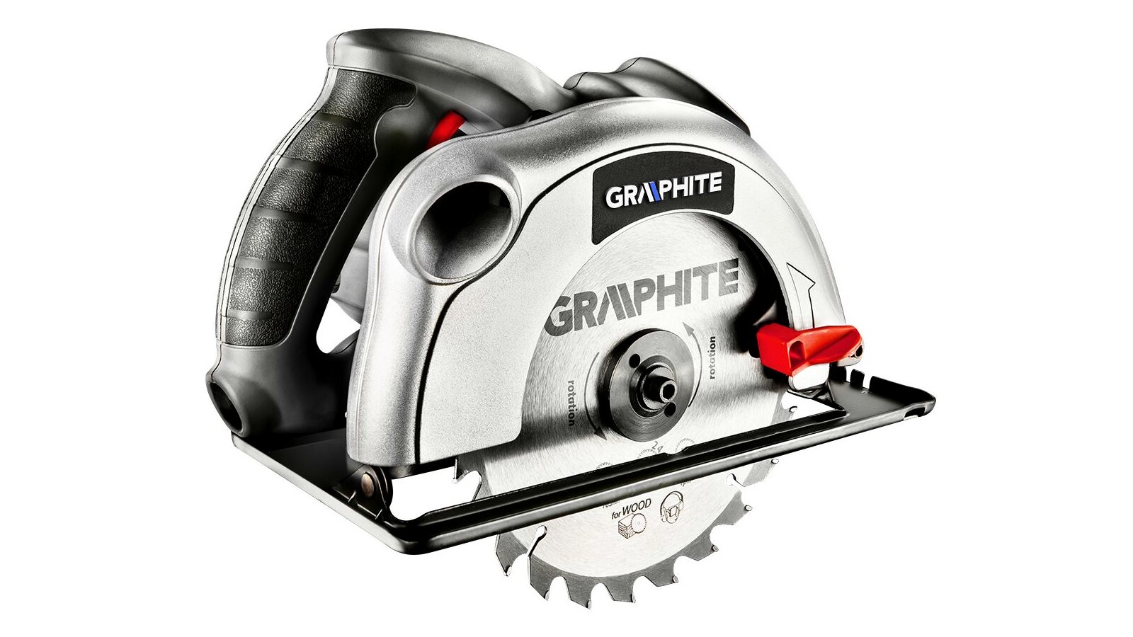 GRAPHITE professzionális körfűrész (kat. sz. 58G486) 1 200 W-os motor , 5 000 perc⁻¹ fordulatszám . A fűrészgép alkalmas 0°-45° tartományban ferdevágásra is. A vágandó anyag maximális vastagsága egyenes vágásnál 65 mm, ferdevágásnál 43 mm. A vágási szög és a vágási mélység szerszám használata nélkül beállítható - a vágási paraméterek beállítását külön skálák könnyítik meg. A körfűrész markolata véletlen bekapcsolás elleni reteszeléssel van ellátva, és csúszásgátló műanyaggal van bevonva a munka kényelmének növelése céljából. A fűrészgépben 185 mm külső átmérőjű, 20 mm átmérőjű rögzítőfurattal ellátott fűrésztárcsa használható. A fűrésztárcsa gyors cseréjét szolgálja az orsózár acél nyomógombja. A fűrésztárcsa alsó és felső védőborítása is alumínium ötvözetből készült. Szükség esetén az elhasználódott szénkefék saját kezűleg is kicserélhetők. A szettben helyet kapott egy párhuzamvezető és egy szerelőkulcs. A CE tanúsítvány bizonyítja az európai szabványoknak való megfelelést.