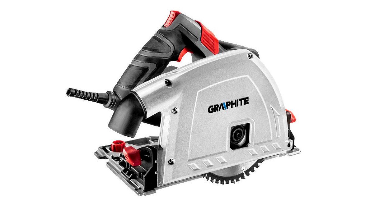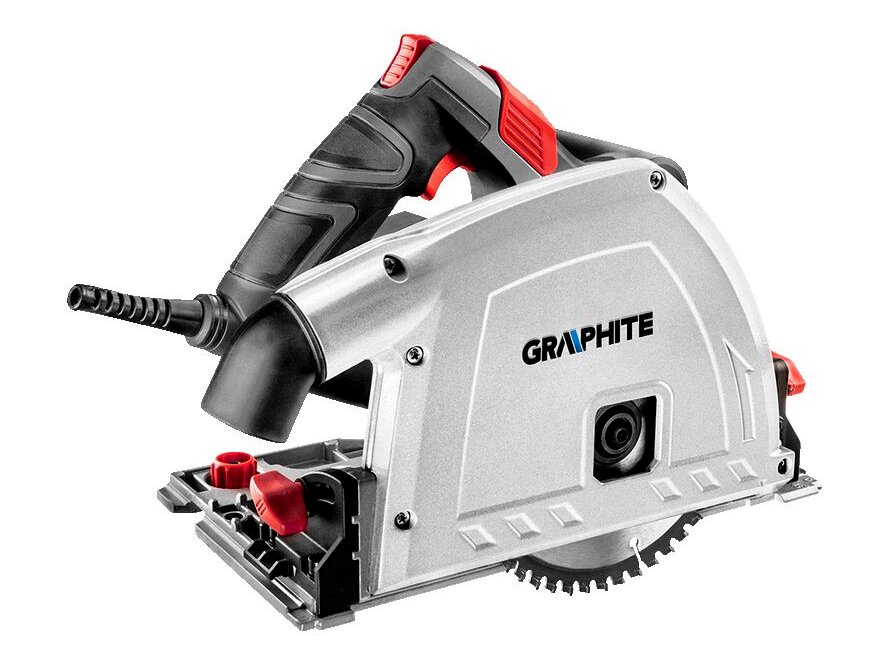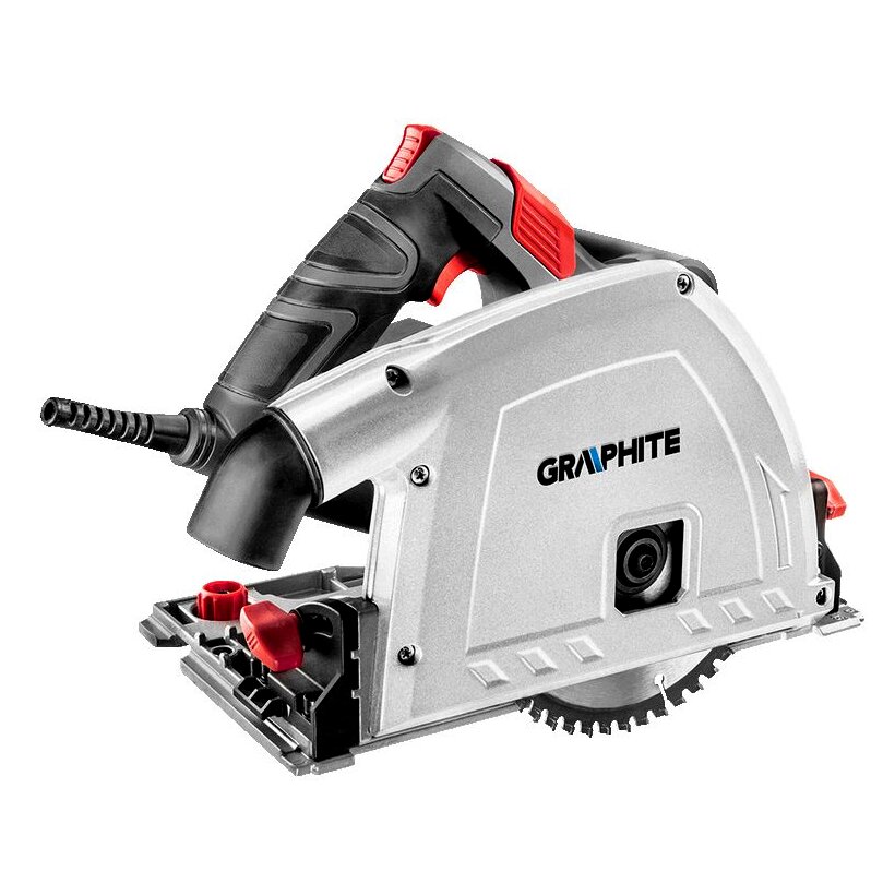 Az 1200 W teljesítményű GRAPHITE merülő körfűrész precíz berendezés fa, laminált anyagok, vagy alumínium vágásához. A merülő körfűrész felépítése lehetővé teszi mély vágások készítését az anyag tetszőleges helyén - nincs szükség a vágást a szélén kezdeni, ahogy a hagyományos körfűrészek esetében. A berendezés 165 mm átmérőjű tárcsákkal működik és sebessége 2200-5200 ford/perc tartományban szabályozható. A nagyobb precizitás érdekében, vagy a hosszabb formattáló vágásokhoz ajánlott vezetősínt alkalmazni, mely a GRAPHITE márka ajánlatában szintén megtalálható. A maximális vágási mélység a vezetősín nélkül 57 mm, míg a vezetősínnel 52 mm. A berendezés mélységhatárolóval, precíz skálával és mutatóval került felszerelésre, lehetővé téve a mélység egyszerű beállítását vezetősín használatával, vagy anélkül. A merülő körfűrész a vezetősín hézag szabályozó rendszerrel rendelkezik és lehetővé teszi a vágási szög 0-47° tartományban történő állítását. A fűrésztárcsa védőlemeze alumínium, a berendezés oldala úgy került kialalkításra, hogy minimalizálja a tárcsa és a berendezés oldala közötti távolságot. Ezt azt jelenti, hogy a vágás akadálytól, pl. faltól való minimális távolsága mindössze 11,5 mm. A berendezés porszívóhoz csatlakoztatható forgó forgácskidobóval került felszerelésre.