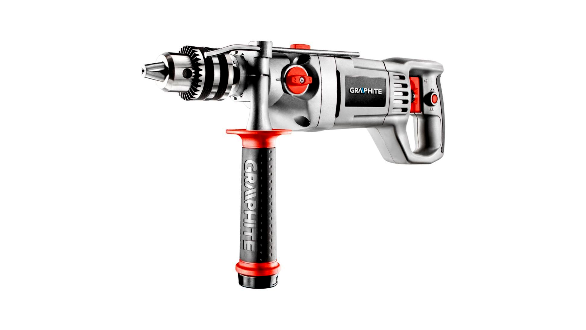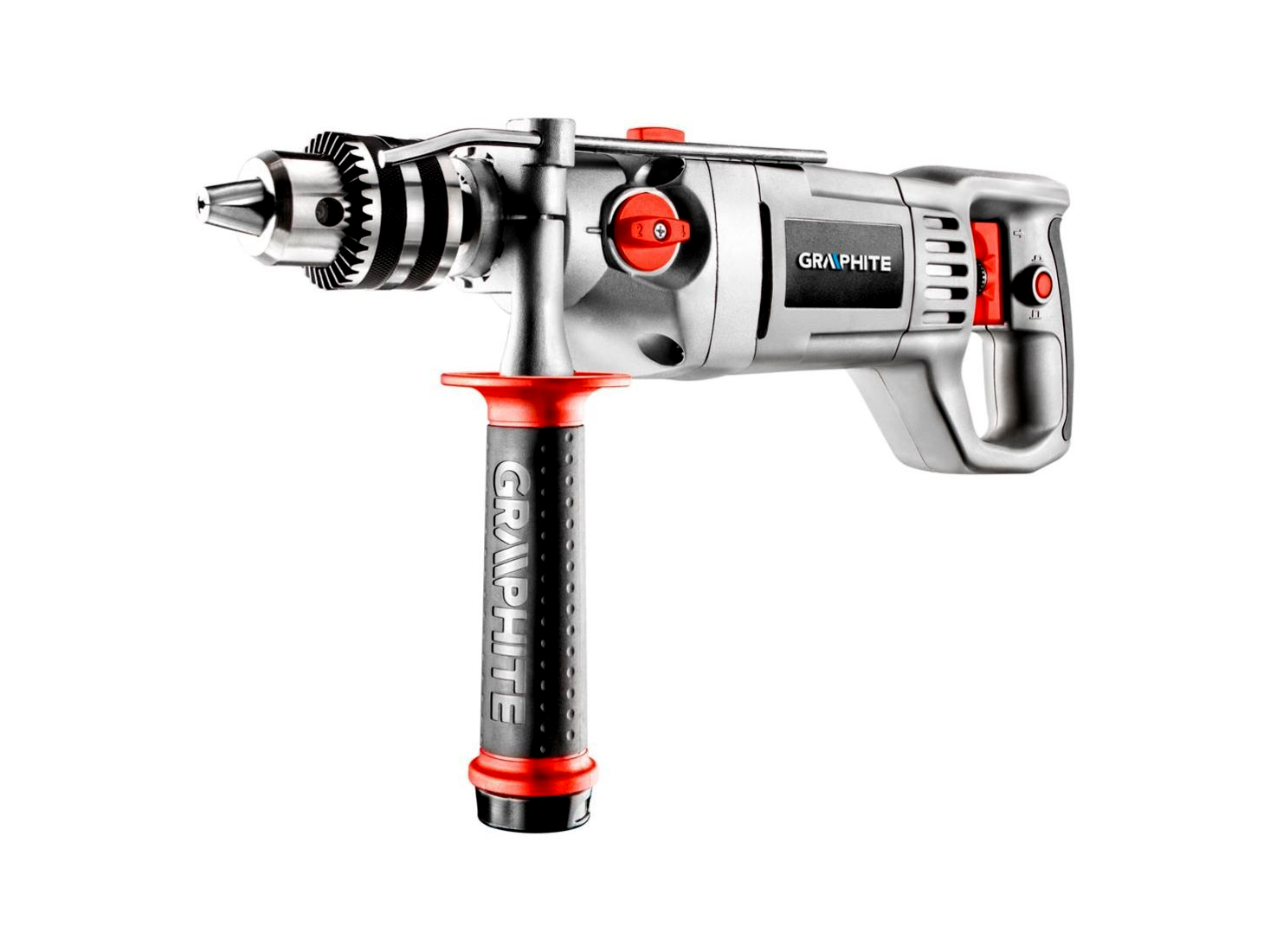 Nagyteljesítményű GRAPHITE kétsebességű kalapácsfúró (ref. 58G712), erőteljes 1050 W-os motorral, megbízhatóan lyukak fúrásához fa, fém, kerámia vagy műanyagok területén. Kalapács üzemmódra váltás után az anyagok, például beton vagy tégla fúrása is rendben lesz. A faanyagban lévő furat maximális átmérője 40 mm, betonban 20 mm és acélban 16 mm. A kulcstartó 3 és 16 mm közötti fúrófejeket támogat. A fúró képes megváltoztatni a fej forgásirányát. Attól függően, hogy melyik sebességfokozat működik, fúrás közben eléri a 900 vagy a 2500 fordulatszámot, a kalapácsmunkák során pedig percenként akár 14 000 vagy 40 000 fordulatot. A masszív ergonomikus kialakítás és a hosszú tápkábel megkönnyíti a munkát nehezen elérhető helyeken. A nehéz körülmények között végzett munkát a kapcsoló zár funkciója is megkönnyíti, amely lehetőséget nyújt a folyamatos, állandó fordulatszámon történő működésre és a kapcsolás nyomásának mértékével történő sebességszabályozás lehetőségére. A készüléket rugalmas és tartós, 4 méter hosszú, gumibevonattal ellátott tápkábellel látták el, amelyet professzionális és ipari alkalmazásoknak is szenteltek beltéren és kültéren egyaránt. Az európai szabványoknak való megfelelést a CE tanúsítvány biztosítja.