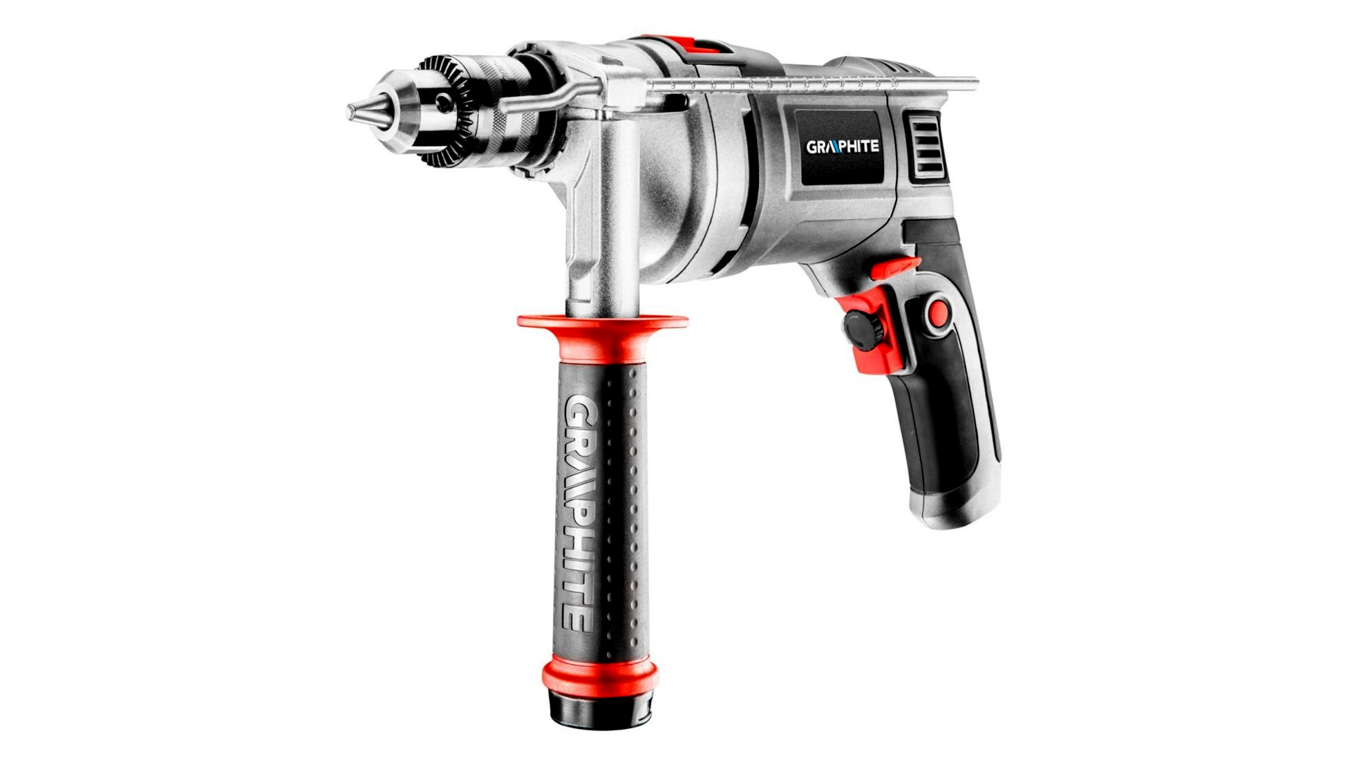 Az univerzális, 850 W teljesítményű GRAPHITE ütvefúróval könnyedén megmunkálhatók olyan anyagok, mint a fa, a műanyagok, a fémek, vagy a kerámiák. Az ütvefúrási üzemmódra kapcsolás után a fúrás olyan agyagokban is hasonlóan egyszerűvé válik, mint a tégla, vagy a beton. A fúrógép fordulatszáma fúrásnál eléri a 3 000 perc⁻¹ értéket, a bekapcsolt ütvefúrási üzemmódban az ütésszám egy perc alatt felmegy percenként 48 000-re. Az orsó forgásiránya kapcsolható jobbra és balra is. Az ergonómikus felépítés, a kis tömeg, valamint a hosszú hálózati csatlakozókábel határozottan megkönnyíti a munkavégzést a nehezen hozzáférhető helyeken is. A főmarkolat gumírozása növeli a munkavégzés kényelmét és biztonságát. Tárolását, szállítását könnyíti meg a pótmarkolatban kialakított fúrószár tartó és a praktikus hordtáska.