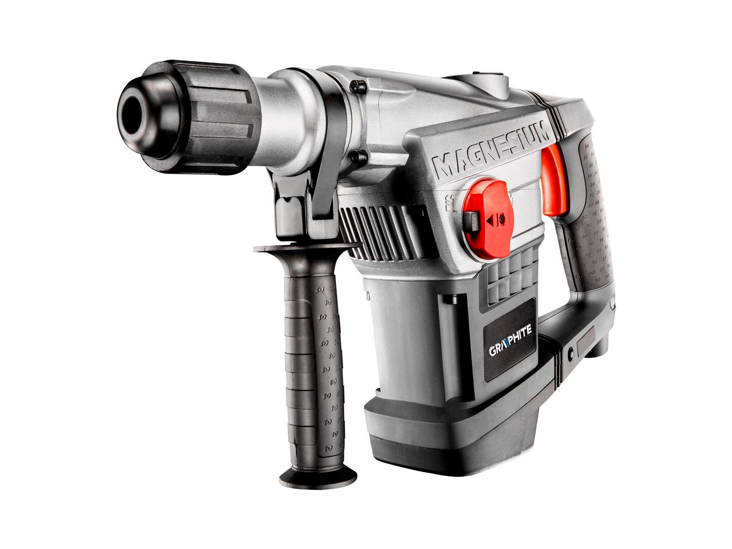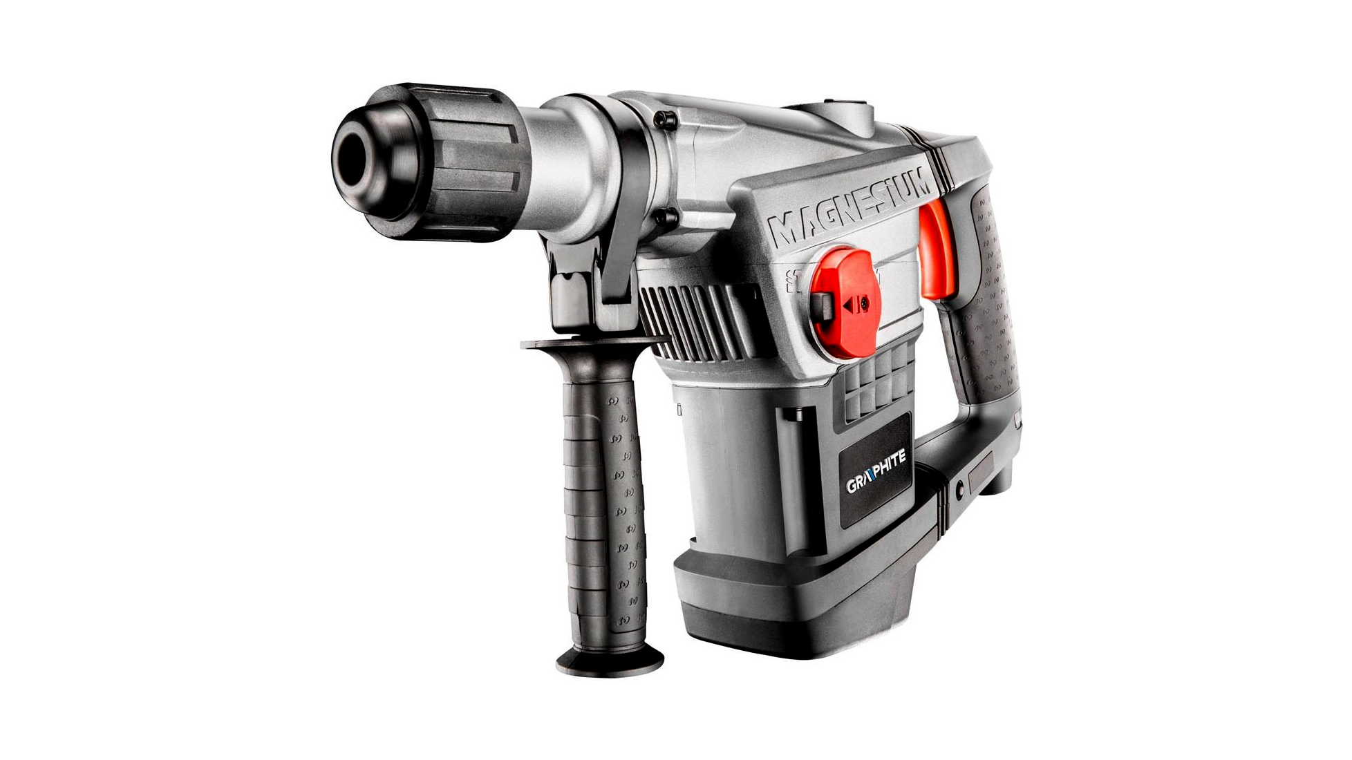 A profi kétfunkciós, 1 250 W teljesítményű GRAPHITE SDS MAX fúró-vésőkalapács (kat. sz. 58G874) nélkülözhetetlen az építési és a bontási munkákban. Képes fúrásra és vésésre pneumatikus ütőművel. A maximális, 10 J ütési energia határozott fölényt nyújt olyan anyagokkal szemben is, mint a beton, a tégla vagy a kő. A névleges fordulatszámon a maximális ütési frekvencia 2 800 perc⁻¹, a maximális fordulatszám fúrásnál 450 perc⁻¹. A vésőkalapács szerkezetét nyomatékhatároló tengelykapcsoló védi a használóját a vésőszár esetleges beszorulásától. A kétpontos rezgéscsillapító rendszerrel ellátott fő markolat csúszásmentes bevonatot is kapott. A főorsóház magnéziumötvözettel megerősített. Ezen felül a szerszám kényelmes, négyujjas kapcsolóval, a hálózatra csatlakoztatást kijelző LED-del, valamint az ütőmechanizmus kenéséhez könnyen hozzáférhető zsírzószemmel van felszerelve. A vésőkalapács tartozéka a fúrószár és a vésőszár, az állítható szögű segédmarkolat, a porvédő borítás, flakon kenőzsírral, és egy praktikus hordtáska. A CE tanúsítvány bizonyítja az európai szabványoknak való megfelelést.