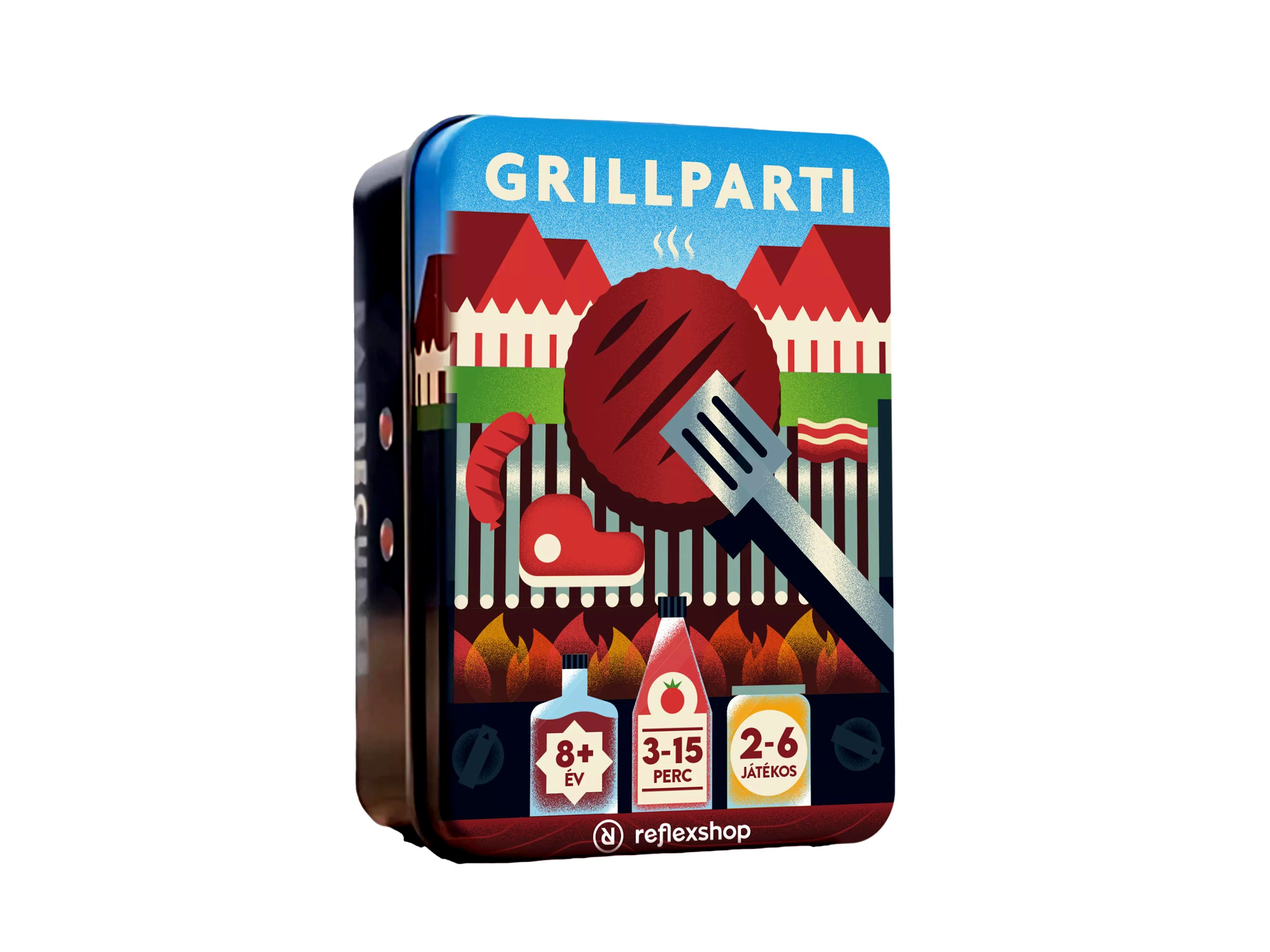 Élvezd a nyári grillpartik hangulatát a Grillparti társasjátékkal, amely az itthon is népszerű Tábortűz folytatása. A játék során a cél, hogy különböző ételeket helyezz el a grillrácson. De vigyázat, ha bármi a parázsra esik vagy a rács ledől, az aktuális játékos kiesik! Kompakt mérete és gyors játékmenete miatt ideális választás bármilyen grillpartira.