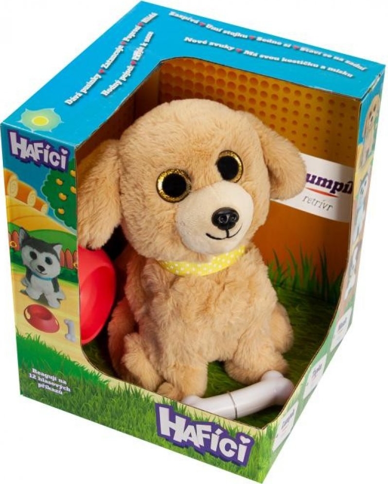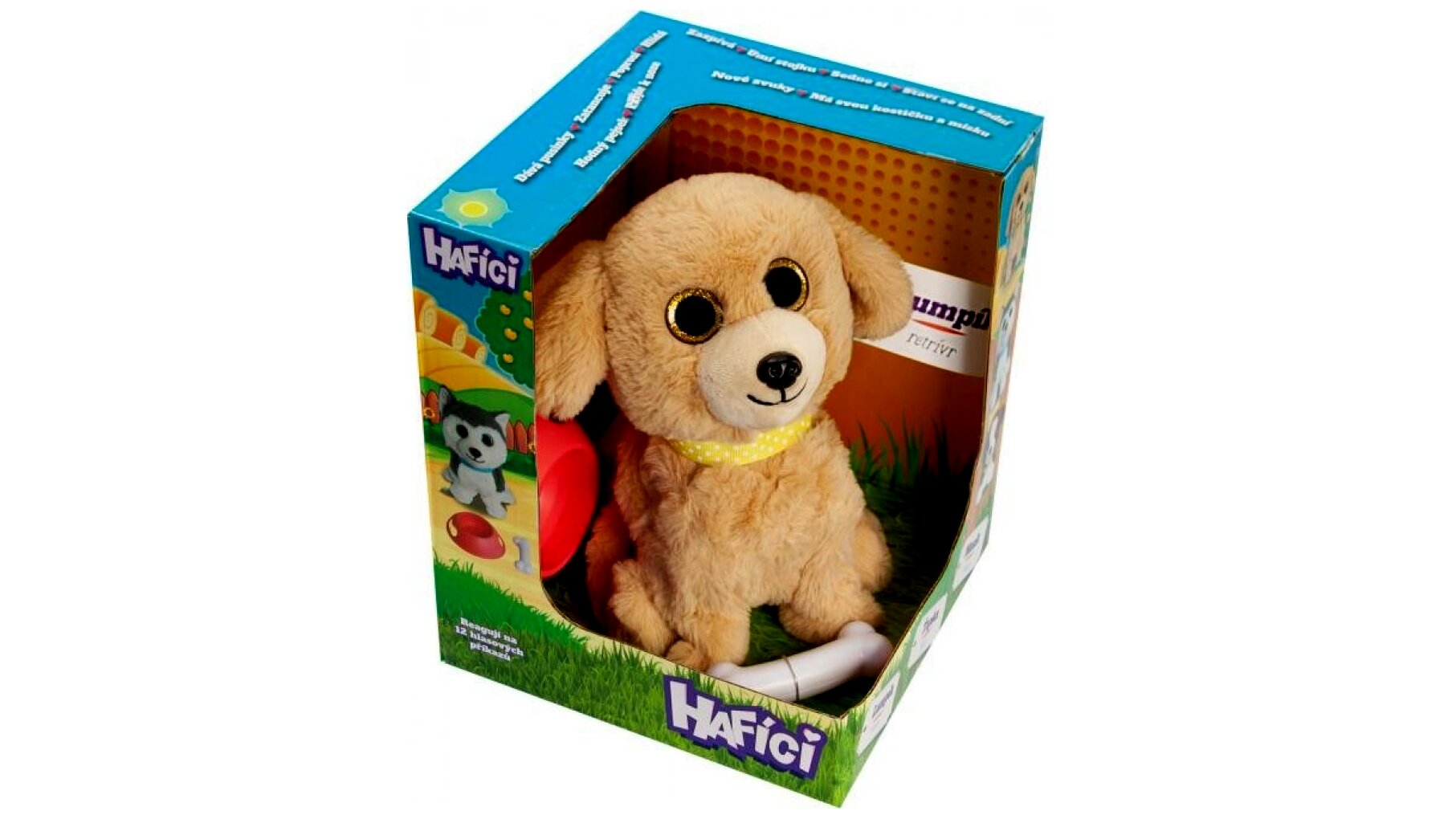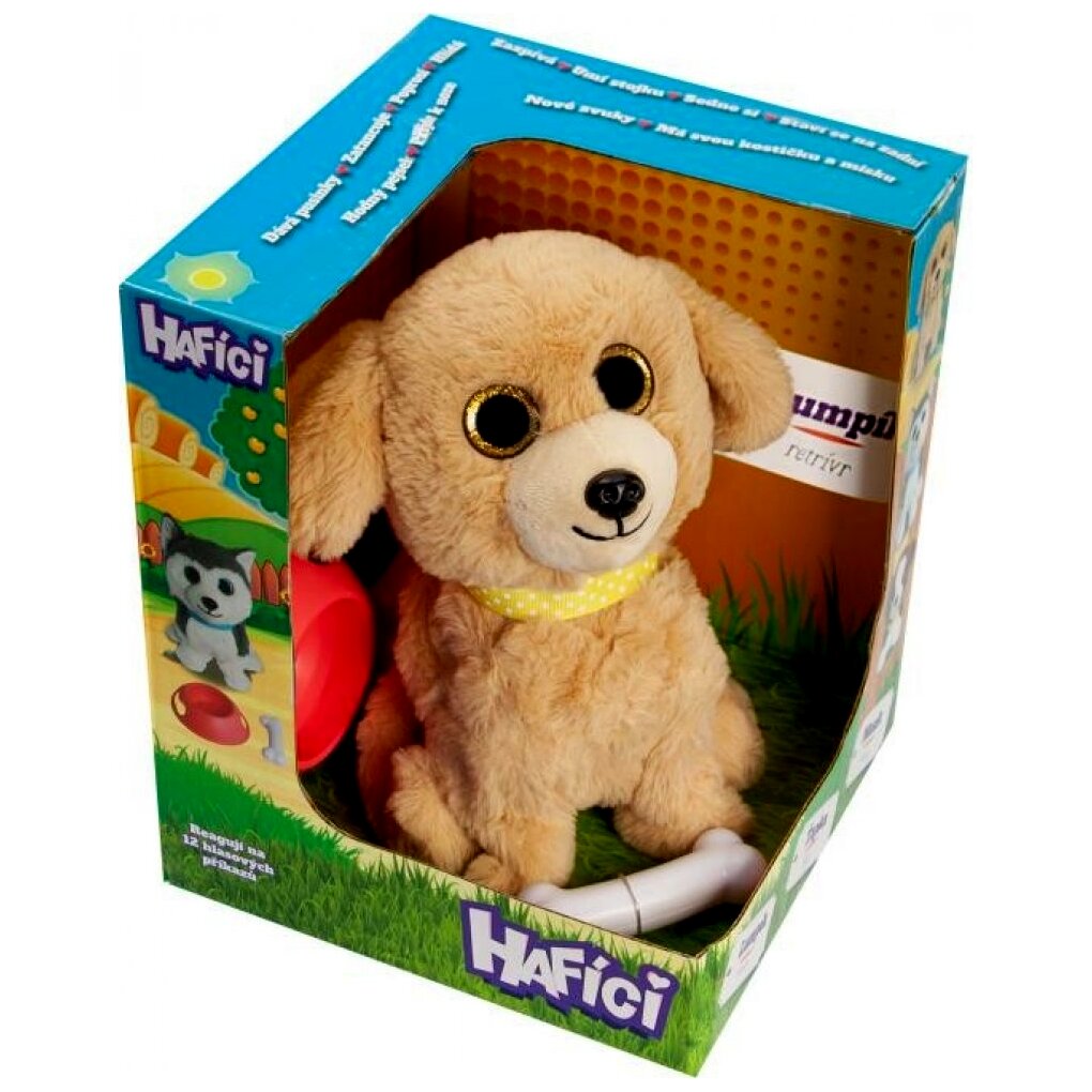 A Hafici Retriever interaktív kölyökkutyus igazán okos játék eb: 12-féle hangutasításra képes reagálni. Ugat, táncol, és még pacsit is tud adni.