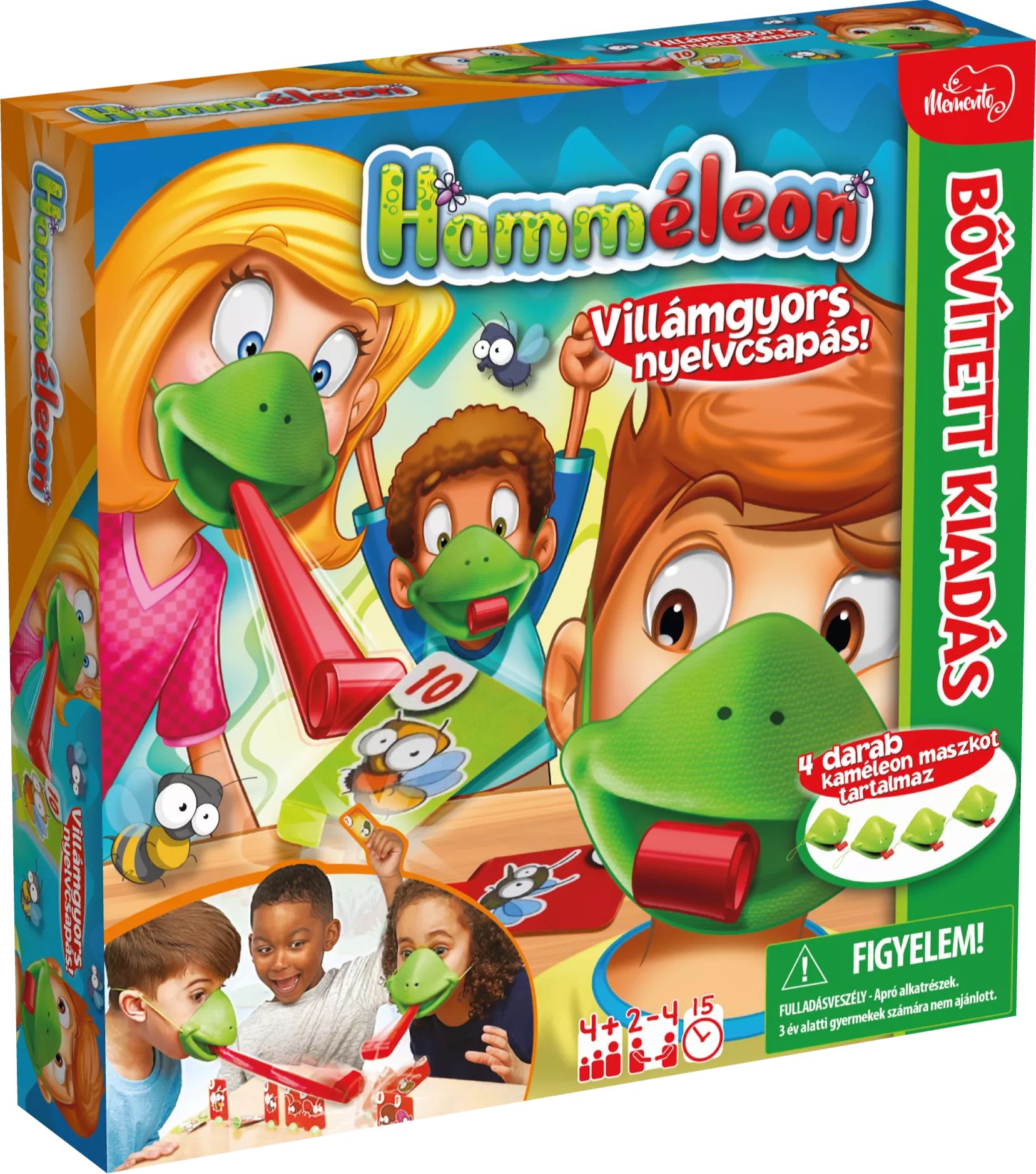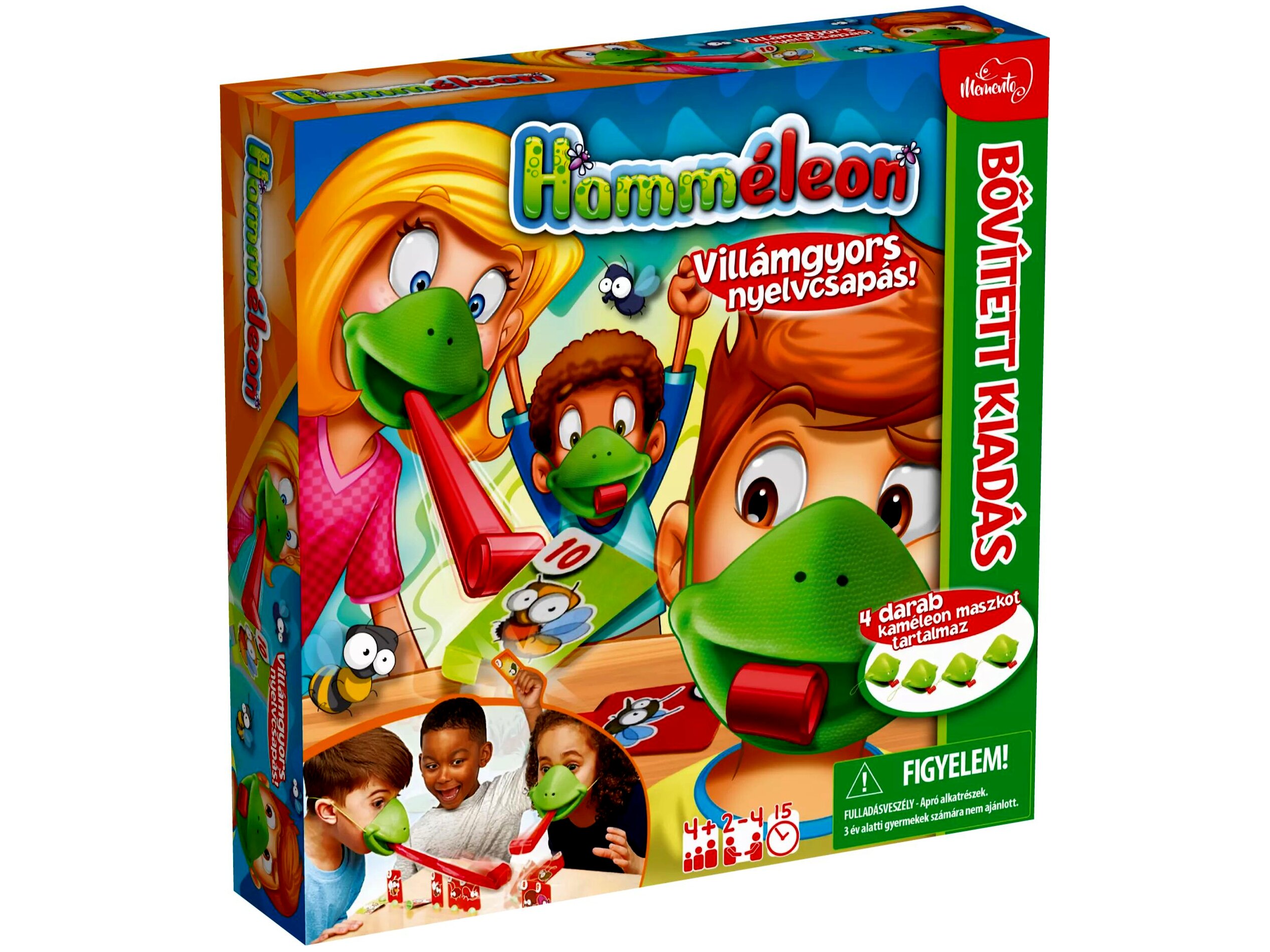 Gondolkodtál már azon, milyen lehet egy kaméleon élete? Most ti is kipróbálhatjátok, mennyire nehéz elkapni a különböző rovarokat.A játékmenet nagyon egyszerű: vegyétek fel a kaméleon maszkokat, állítsátok sorba a rovar kártyákat, és már indulhat is a parti. A nyertes az, aki a legtöbb rovart zsákmányolja be.