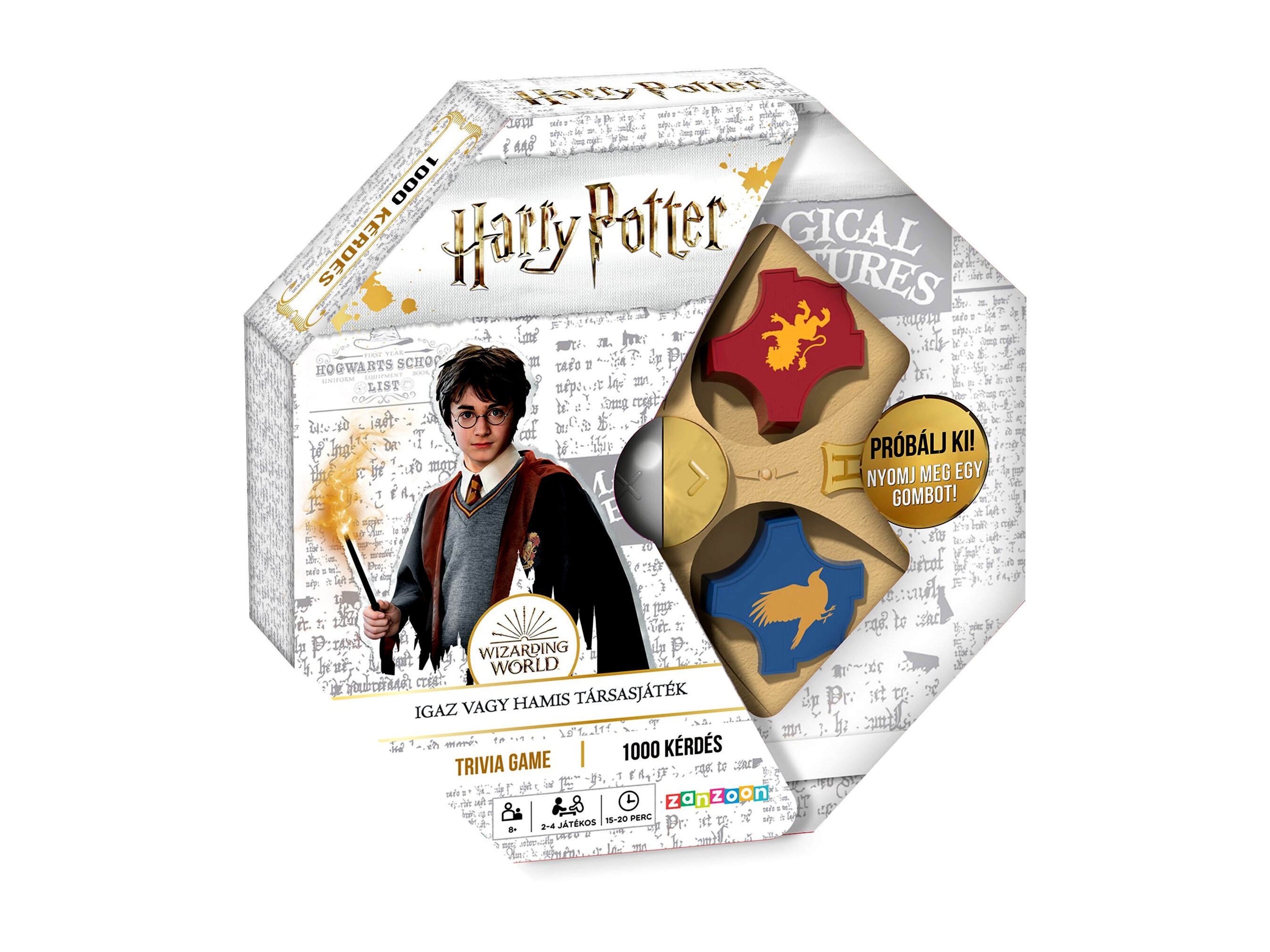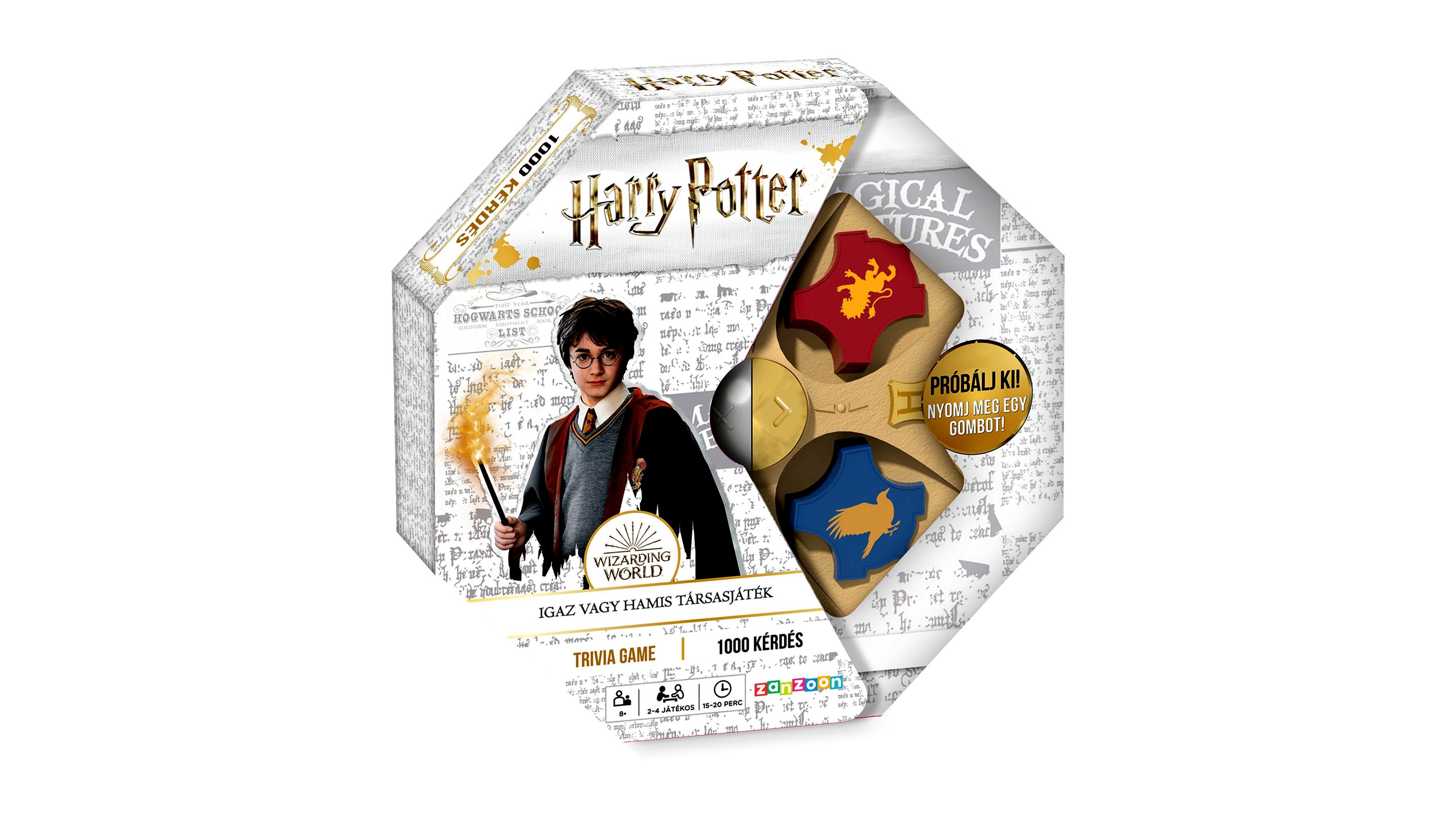 A Harry Potter Igaz vagy Hamis társasjátékkal a varázslóvilág szerelmesei most próbára tehetik ismereteiket egymással szemben. A négy Roxfort Ház közül választhatnak a játékosok, hogy ezek színeiben válaszolhassanak 1000 kérdésre.