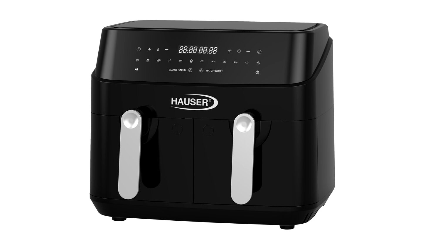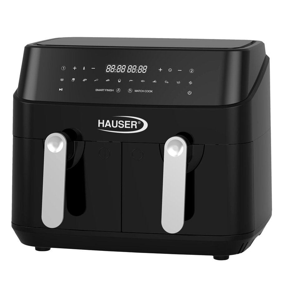 A Hauser AF-2450 forrólevegős sütő ideális választás mindazoknak, akik gyorsan, egészségesebben és kényelmesen szeretnének főzni. Két darab, egyenként 4,5 literes sütőkosarával összesen 9 liter kapacitást biztosít, így egyszerre akár kétféle ételt is elkészíthet – külön beállított idővel és hőmérséklettel.