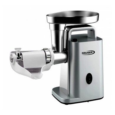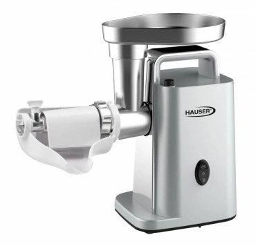 A Hauser MG-800 egy kompakt, mégis erős konyhai húsdaráló, amely nagyobb mennyiségű hús feldolgozására is alkalmas. A különböző rostélyokkal többféle darálási finomság érhető el, a kiegészítő feltétekkel pedig házi kolbász, hurka vagy kebbe is készíthető.