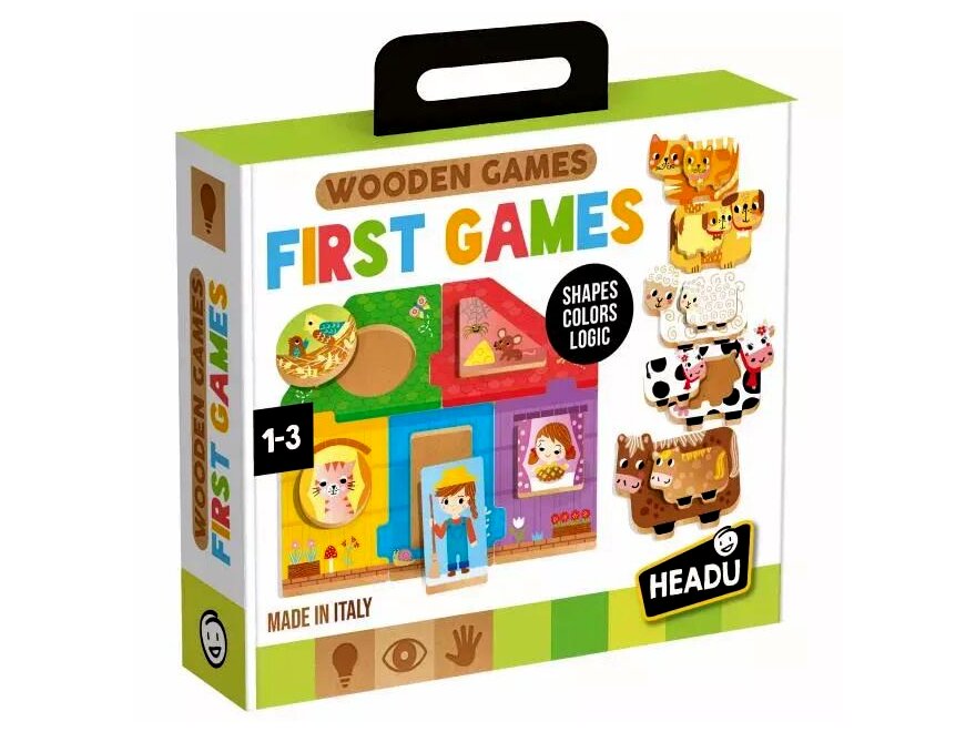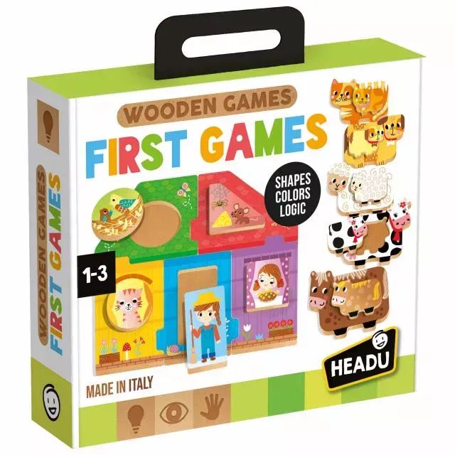 A Headu Első fajátékaim egy több elemből álló oktató fajáték-készlet, amely a legkisebbeknek segít a formák és színek megismerésében, valamint a korai logikai gondolkodás fejlesztésében. A készlet különböző, kézre álló faelemekkel támogatja a játékos tanulást.